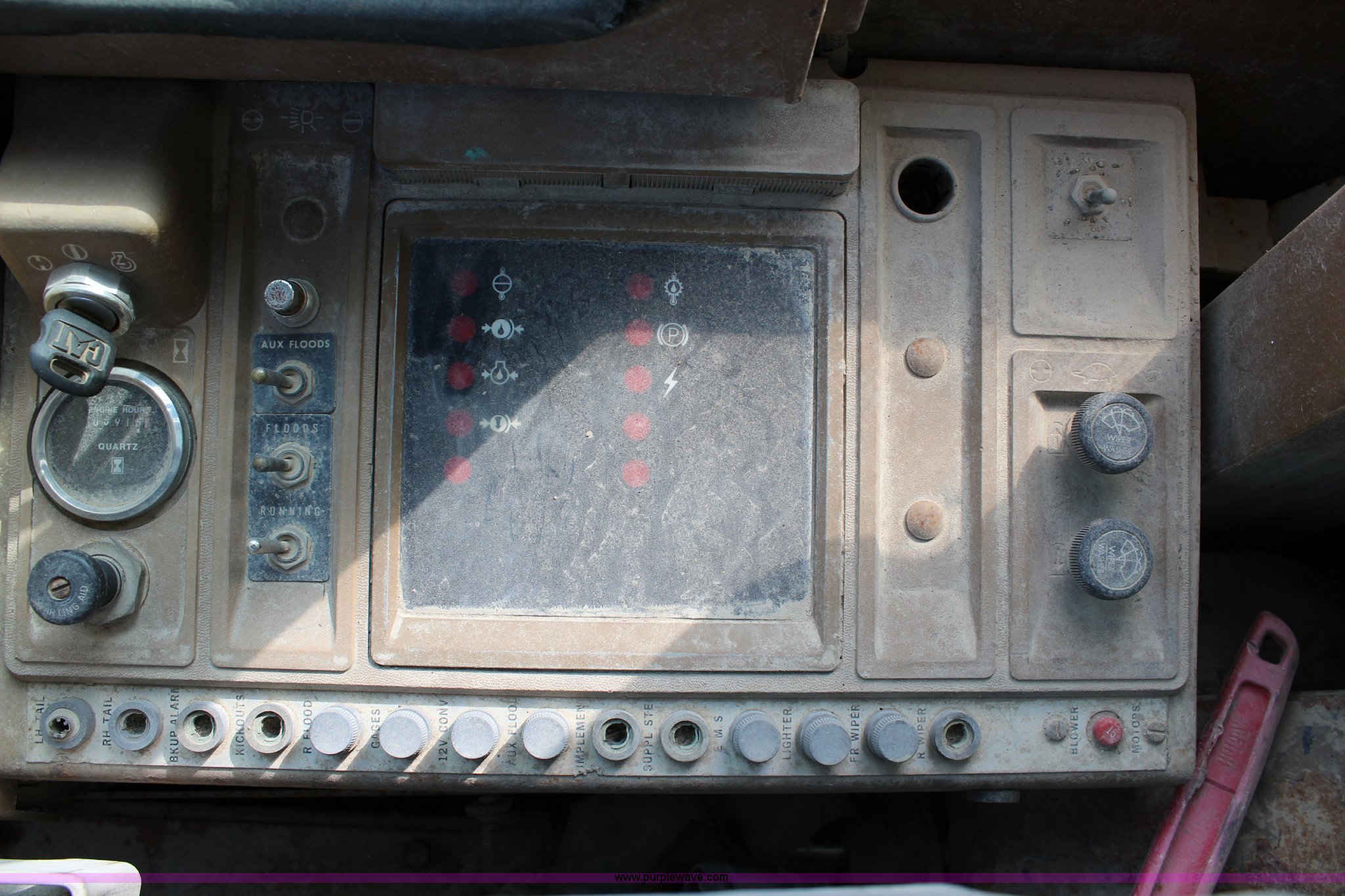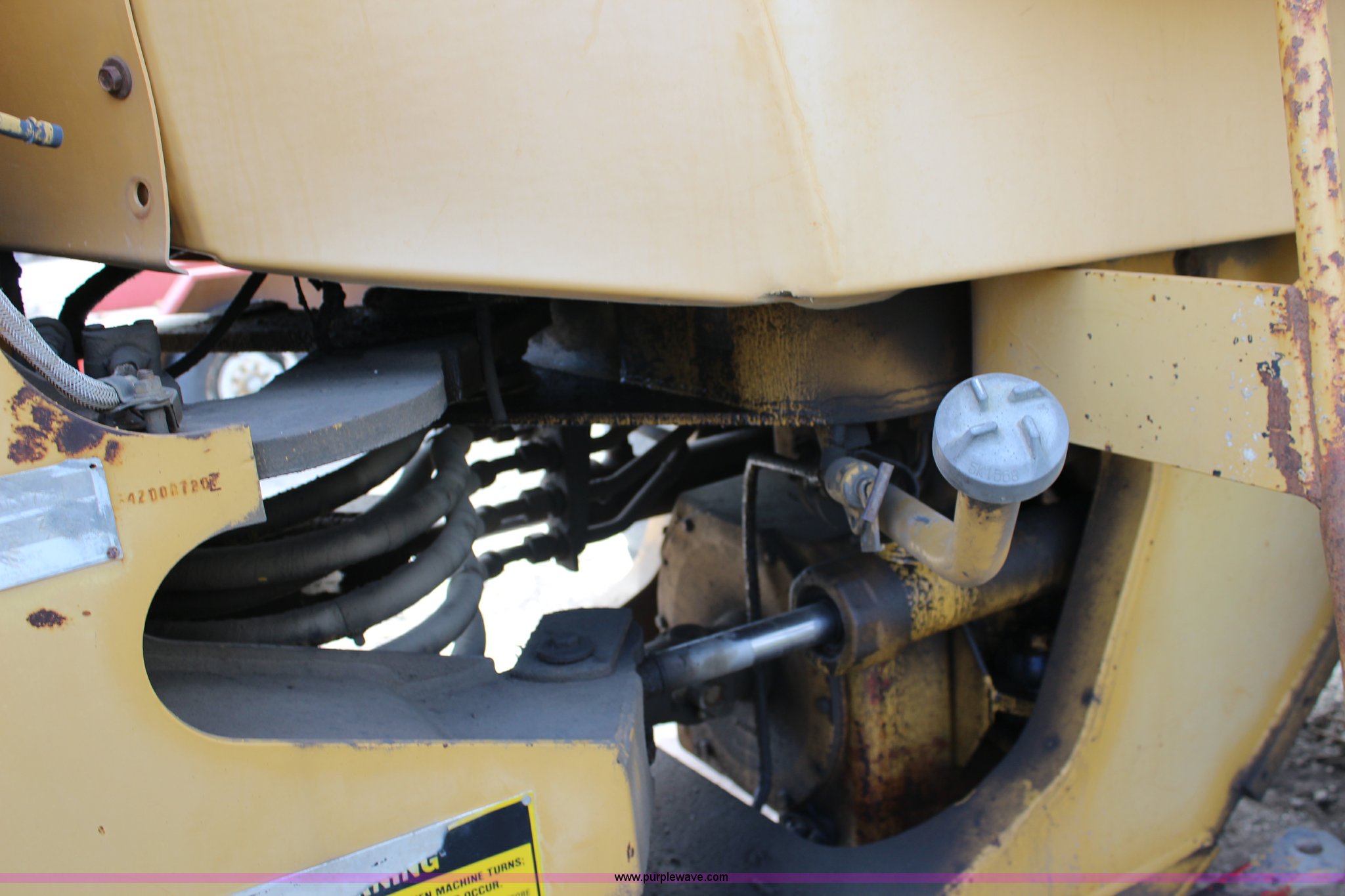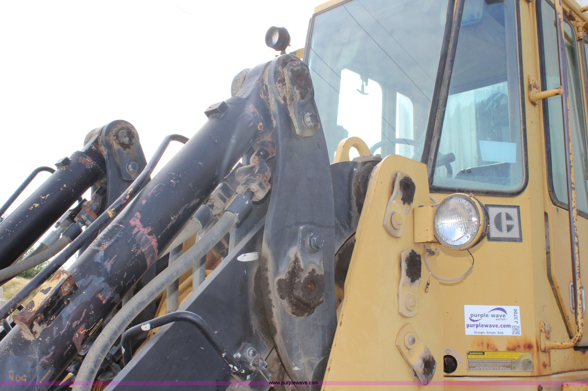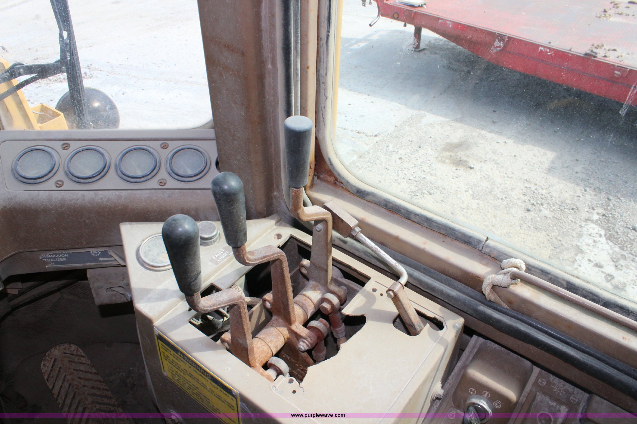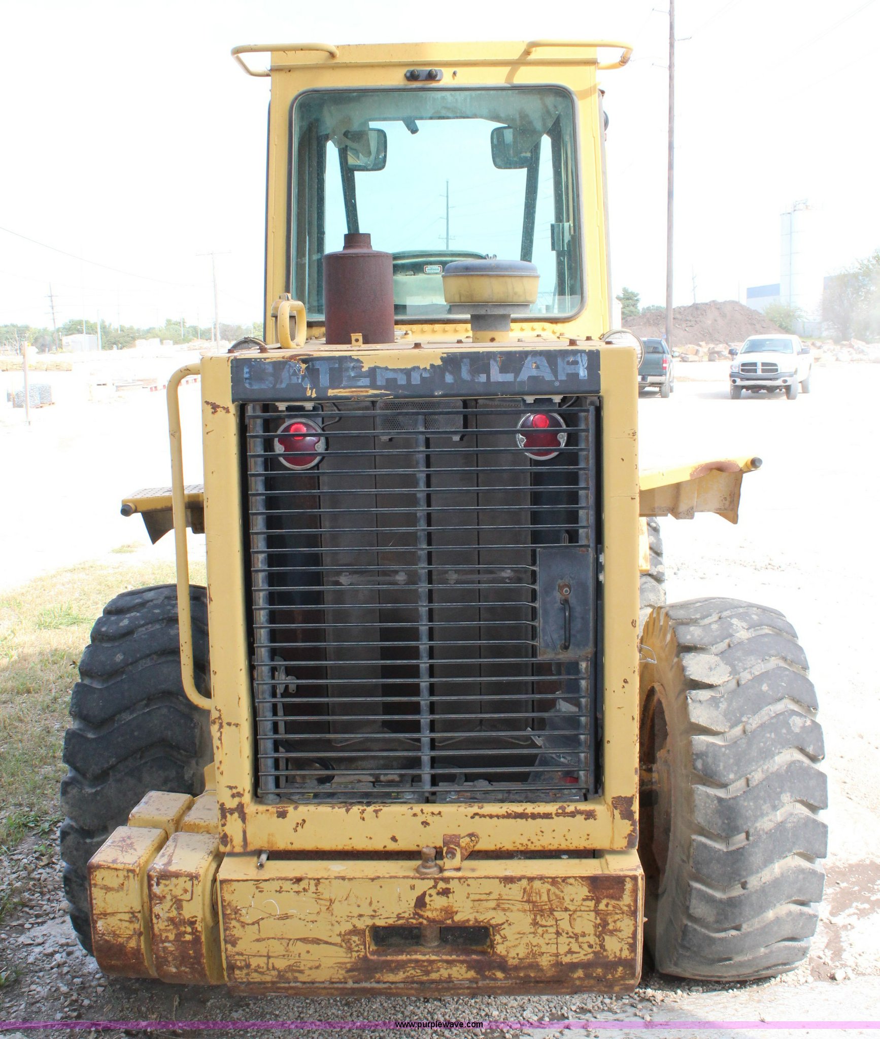 Purple Wave is selling a used Wheel Loader in Kansas. This item is a 1989 Caterpillar IT18B wheel loader with the following: 5,912 hours on meter, Caterpillar 3204 5.2L four cylinder turbo diesel engine, 95 HP, Powershift transmission, 4F-4R gears, Transmission issues in third and fourth gears, Enclosed cab, Hydraulic quick coupler, 94"W bucket, 1.25 cu. yd. capacity, Two-lever bucket controls, Pallet fork attachment, 48" x 7" forks, Counter weights, 17.5-25 tires, 20,066 lbs. base operating weight, Serial 4ZD00728