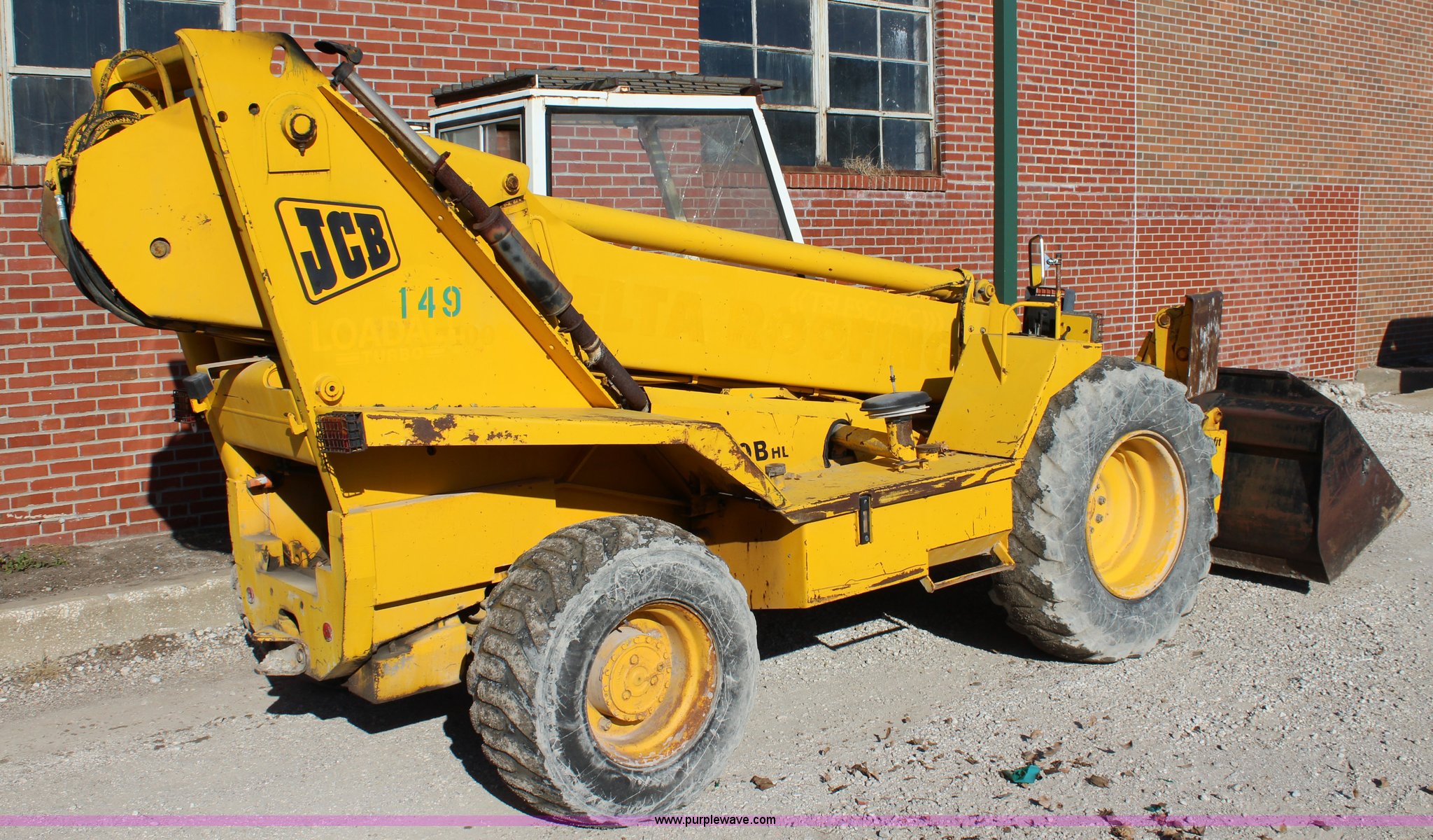 Purple Wave is selling a used Telehandler in Kansas. This item is a JCB 530 BHL telehandler with the following: 463 hours on meter, Perkins T4.236 four cylinder diesel engine, 89 HP, Shuttle shift transmission, 4F-4R gears, Enclosed cab, 5,000 lbs maximum lift capacity, 23' maximum reach, 36' maximum lift height, Hydraulic outriggers, Auxiliary hydraulics, 8'W bucket, Manual quick attach, 15.5-25 front tires, 15-19.5 rear tires, 19,750 lbs. base operating weight, Door glass missing, Pinion bearing needs repaired, Glass cracked, Serial 584294