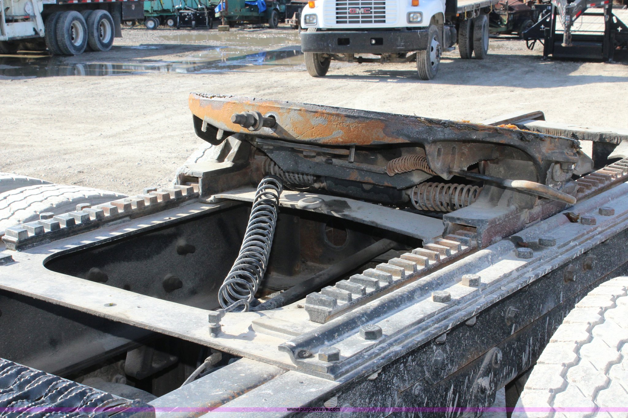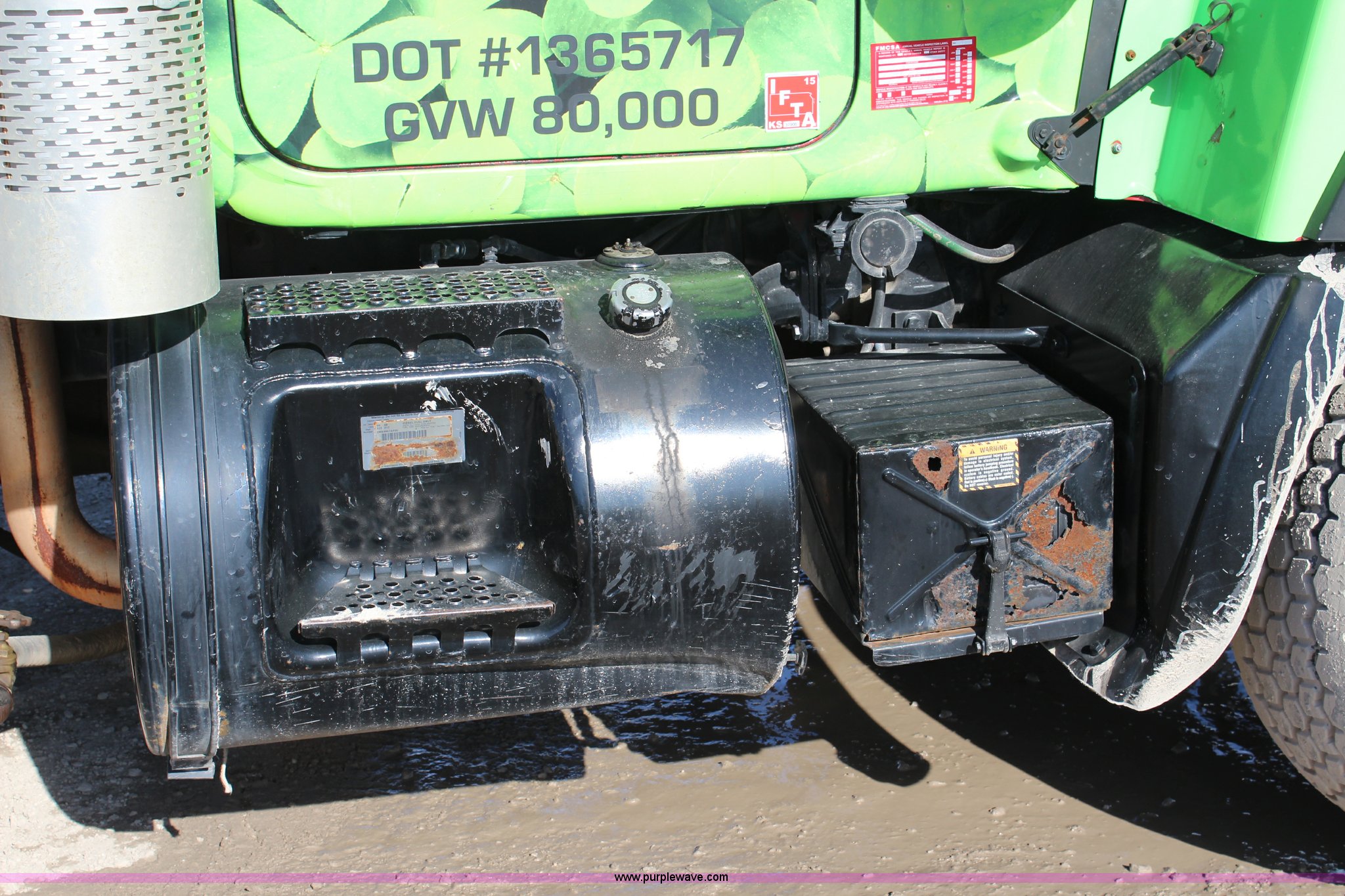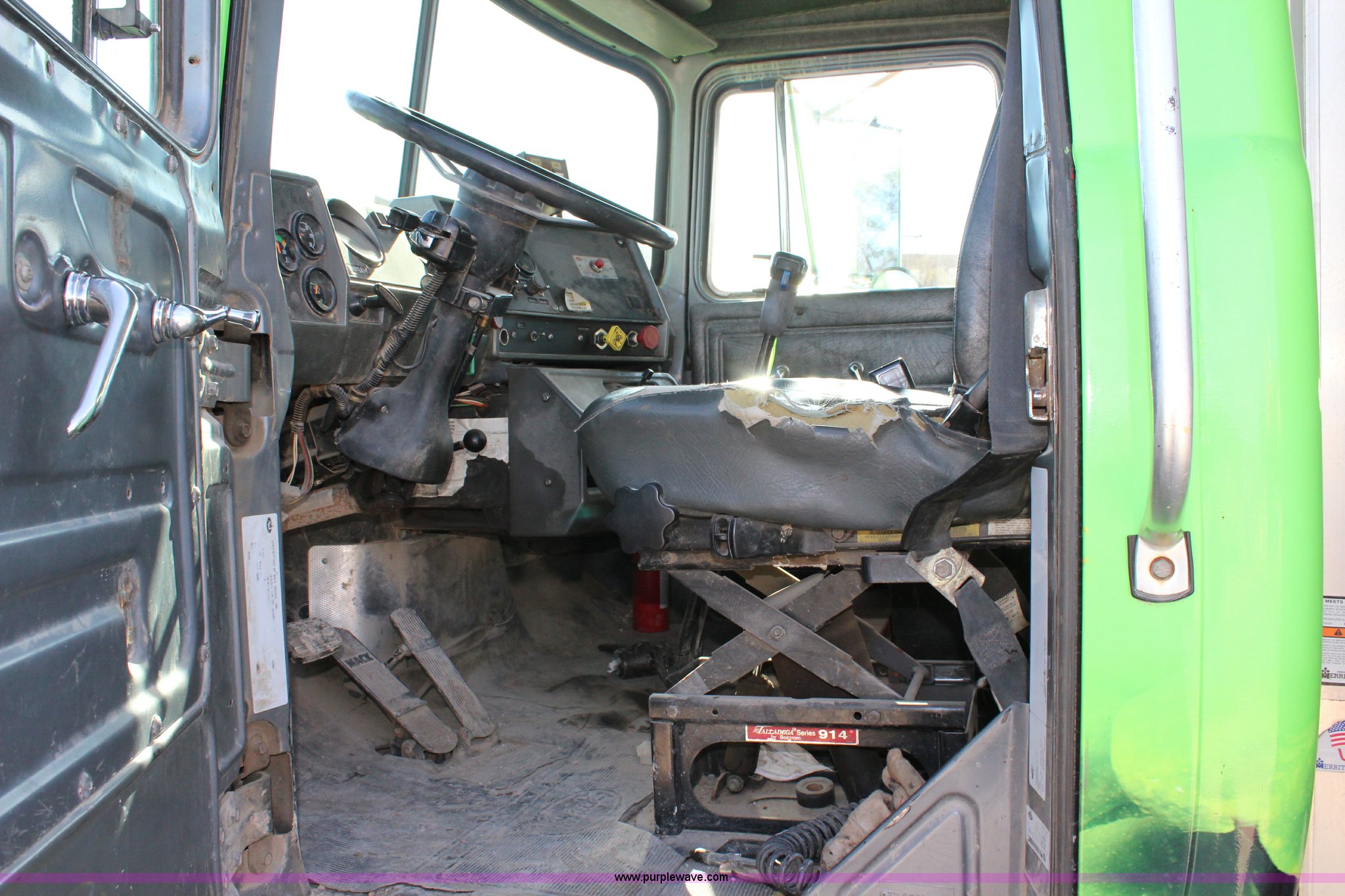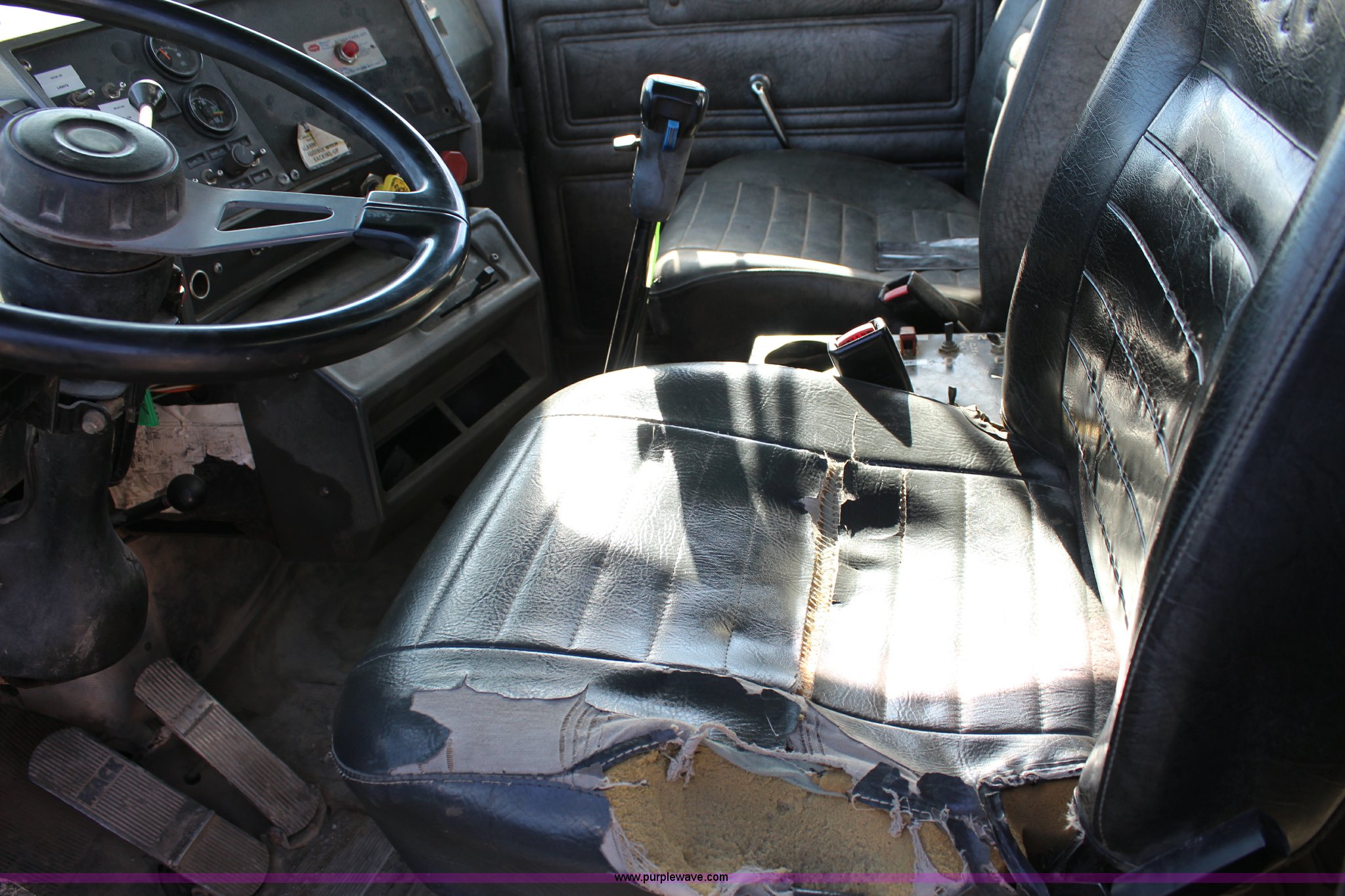 Purple Wave is selling a used Truck Tractor in Kansas. This item is a 2003 Mack RD600K semi truck with the following: 262,217 miles on odometer, 3,214 hours on meter, Mack six cylinder turbo diesel engine, Eaton Fuller 15 speed manual transmission, Triple axle, Inter-axle differential lock, AC and heat, AM/FM/cassette, Air suspension seat, Air ride cab, PTO, Wet kit, Glider kit, Aluminum headache rack, Steel deck plate, Sliding fifth wheel plate, Single exhaust stack, Dual fuel tanks, Camelback suspension, Air brakes, Air up/down pusher axle, 385/65R22.5 front tires, 11R22.5 pusher axle tires, 11R24.5 rear tires, FAWR 18,000 lbs, IAWR 20,000 lbs, RAWR 20,000 lbs, Seat torn