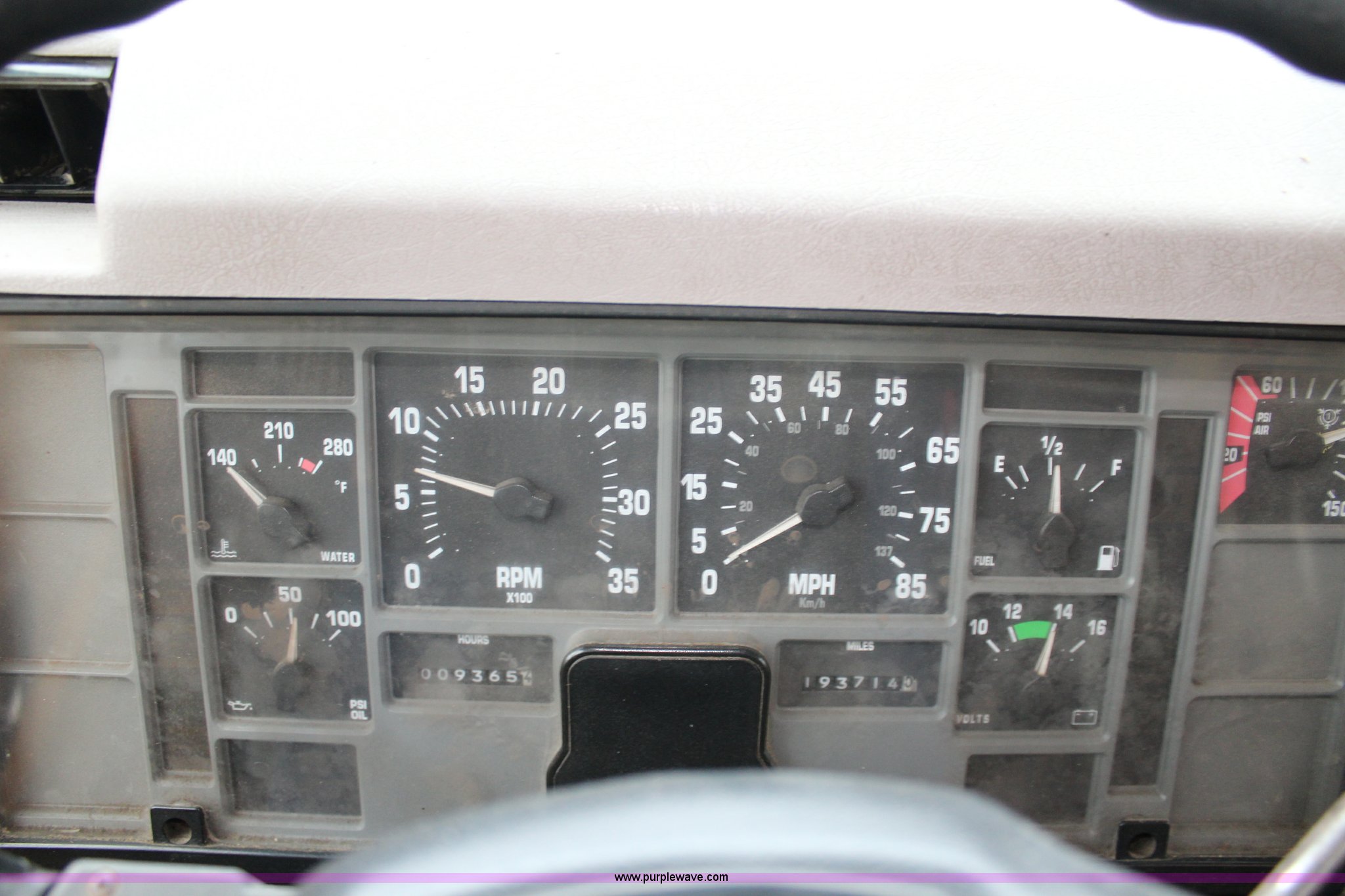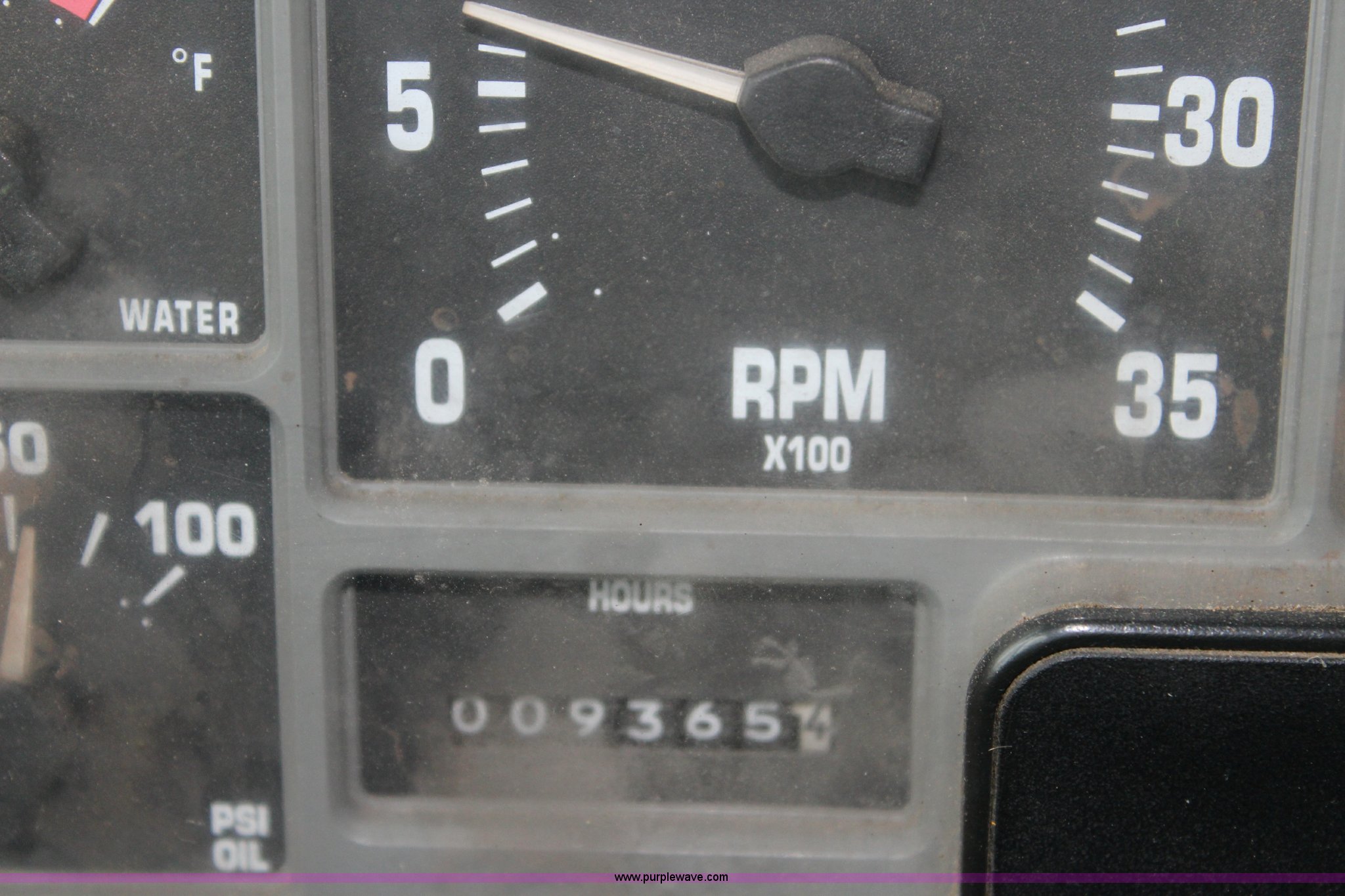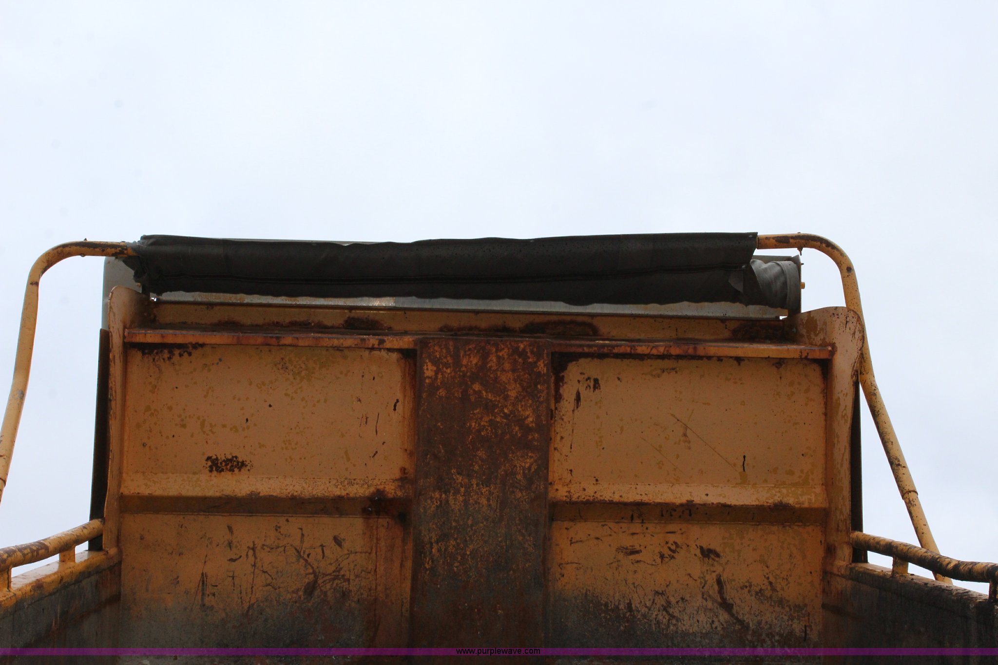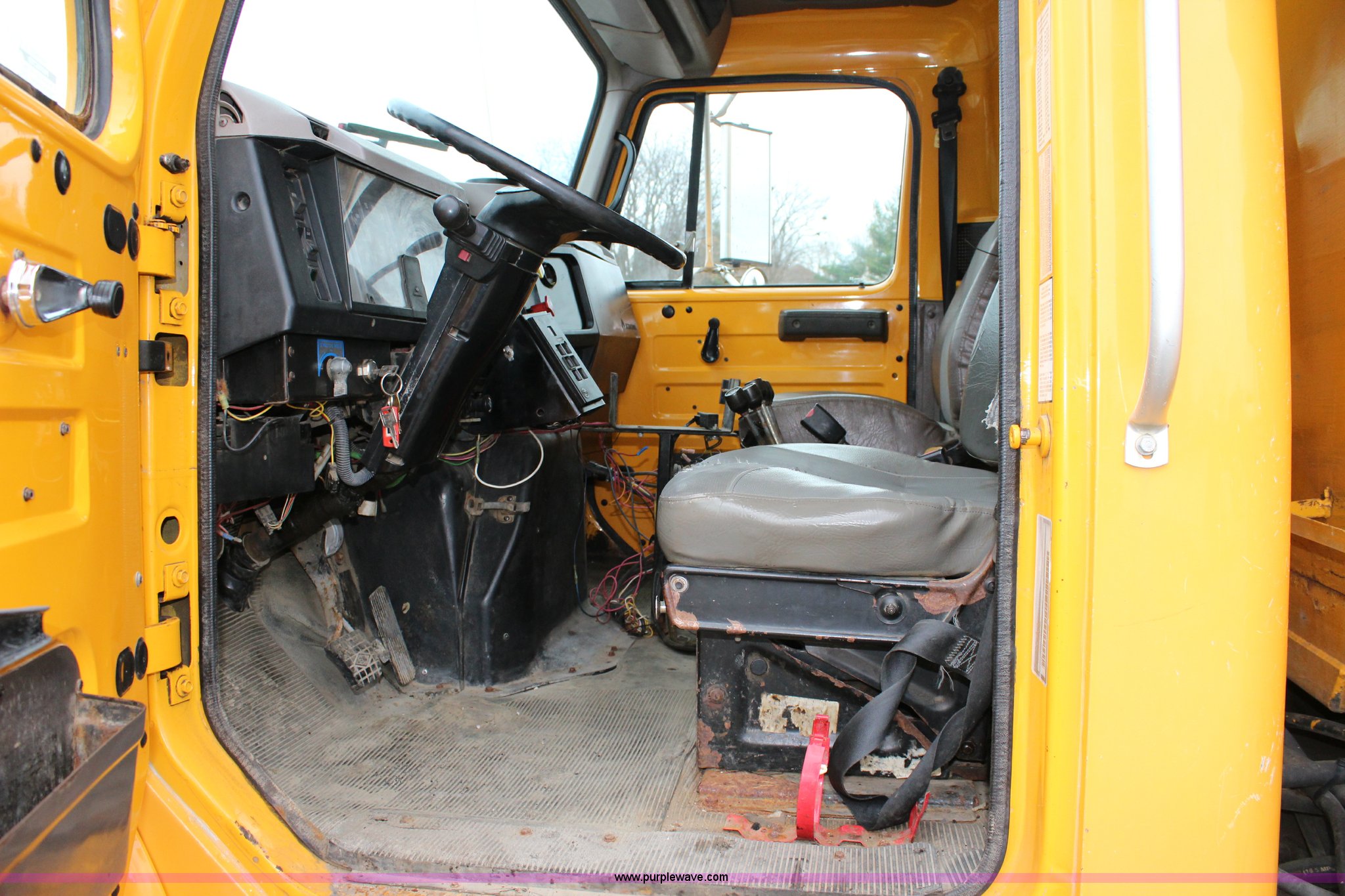 Purple Wave is selling a used Construction Dump Truck in Missouri. This item is a 1999 International 4900 dump truck with the following: 193,714 miles on odometer, 9,365 hours on meter, International DT530 8.7L L6 turbo diesel engine, 250 HP, Automatic transmission, Tandem axle, Inter-axle differential lock, Heat, AM/FM/CD, Heated mirrors, Air suspension seat, Front mounted PTO, 16'L dump bed, 41" side height, Single ram hoist, Air operated end gate, Roll-over tarp, Toolboxes, Plow mount bumper, Single fuel tank, Spring suspension, Air brakes, 315/80R22.5 front tires, 11R22.5 rear tires, Interior/exterior cosmetic damage, Seat torn, Paint faded, Non-operational electrical tarp, Engine oil leak, Fuel rail gasket leaks, Hydraulic leak