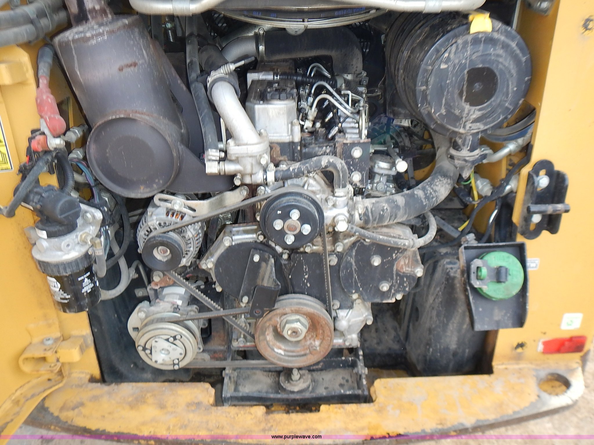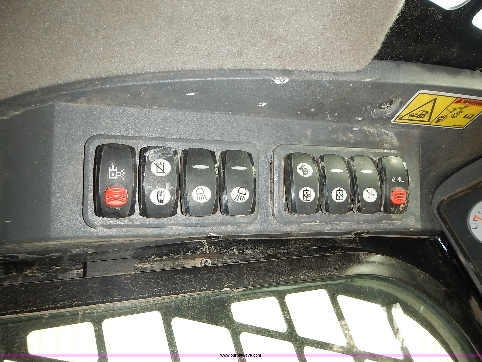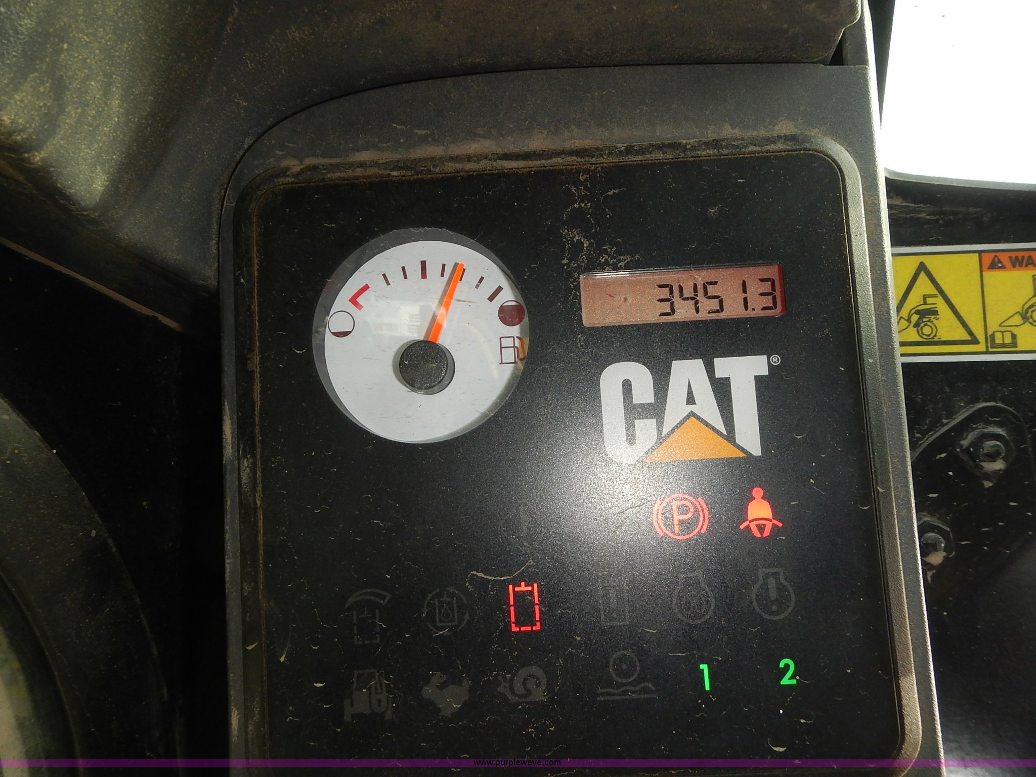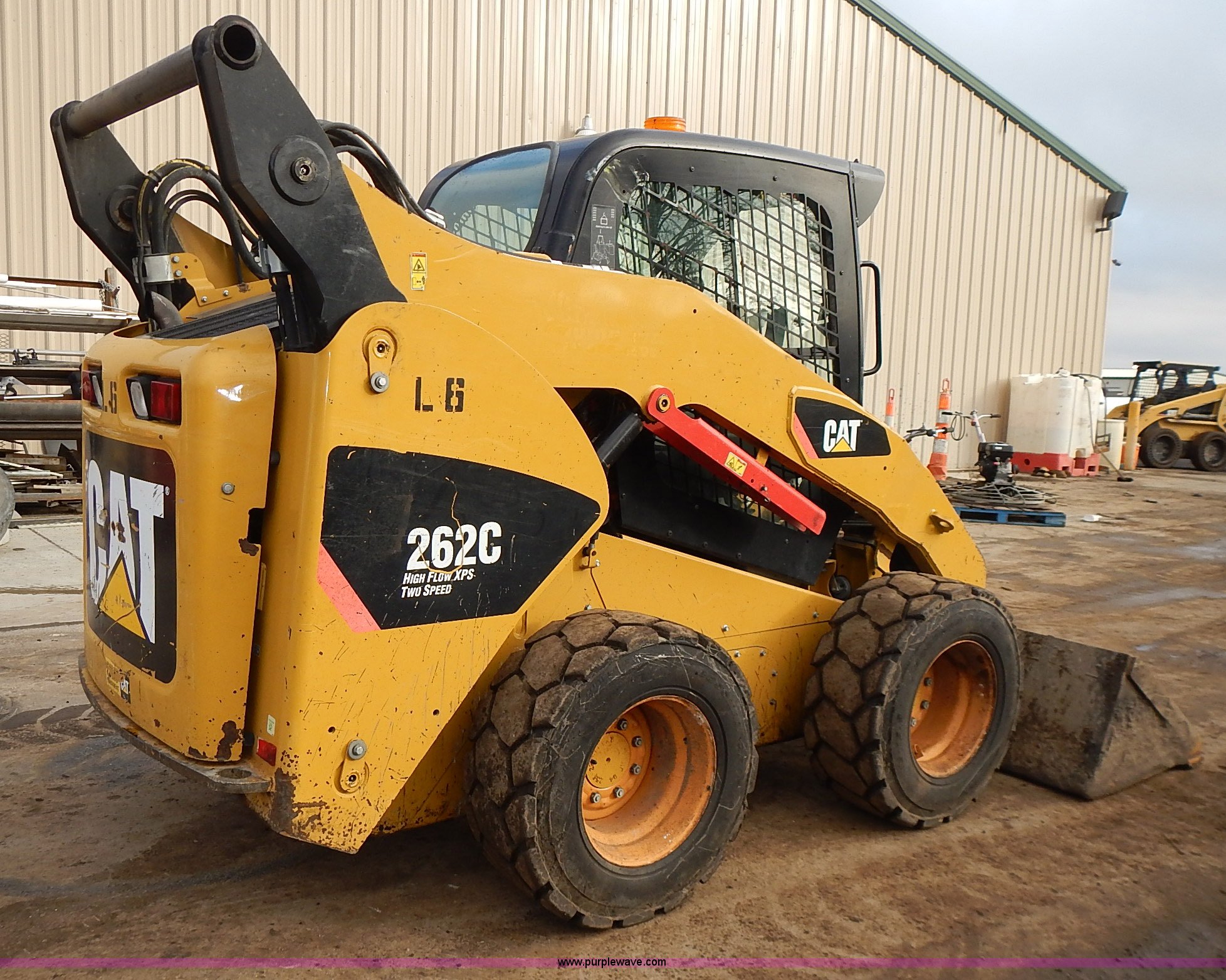 Purple Wave is selling a used Skid Steer Loader in Kansas. This item is a 2011 Caterpillar 262C skid steer with the following: 3,447 hours on meter, Caterpillar four cylinder diesel engine, Two speed hydrostatic transmission, Enclosed cab, AC and heat, Joystick controls, Spring suspension seat, Front and rear work lights, High Flow auxiliary hydraulics, Pallet forks, 4'L x 4"W x 1.5" thick, Bossman Grips 12-16.5 tires, 7,968 lbs. base operating weight, Door has been replaced, Serial CAT0262CKMST04217