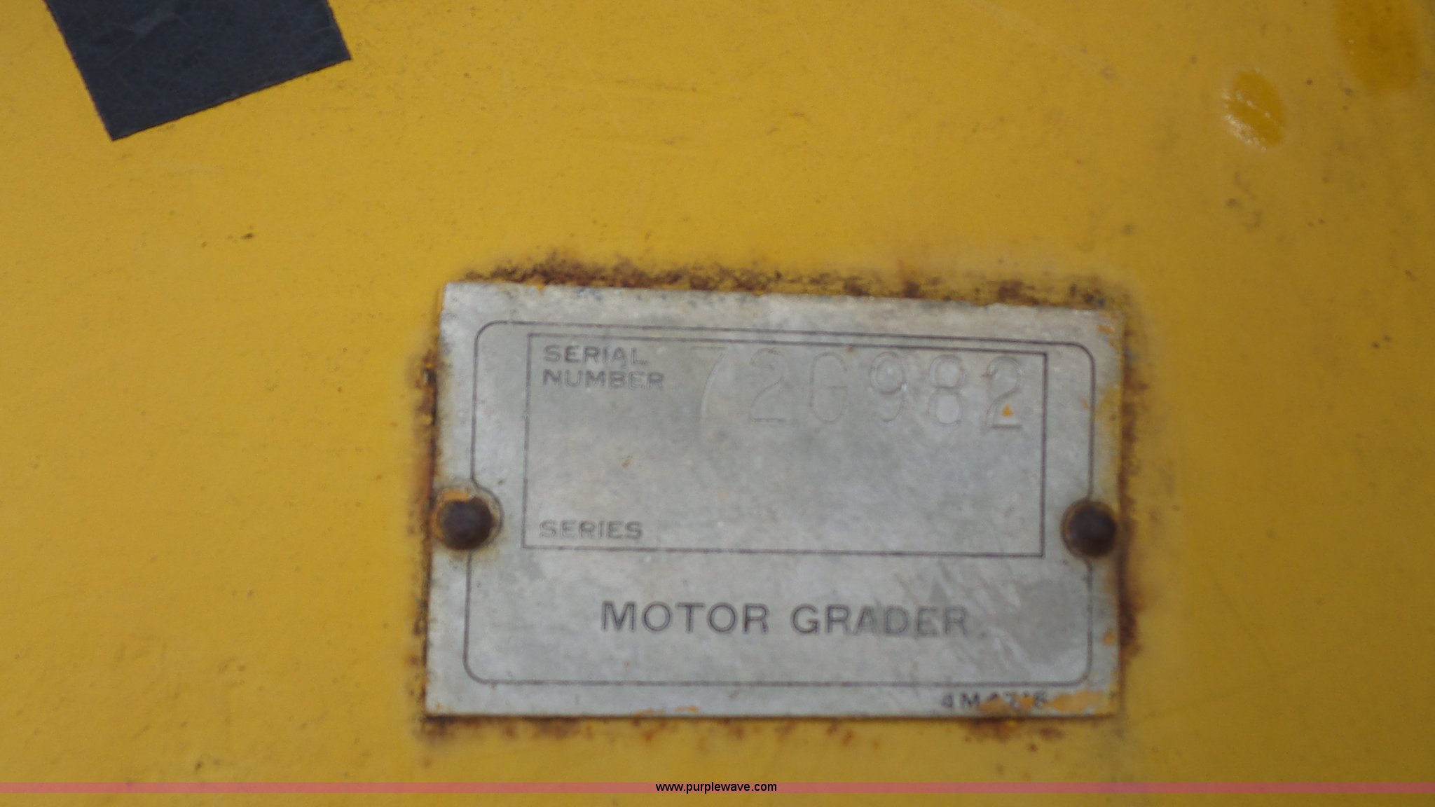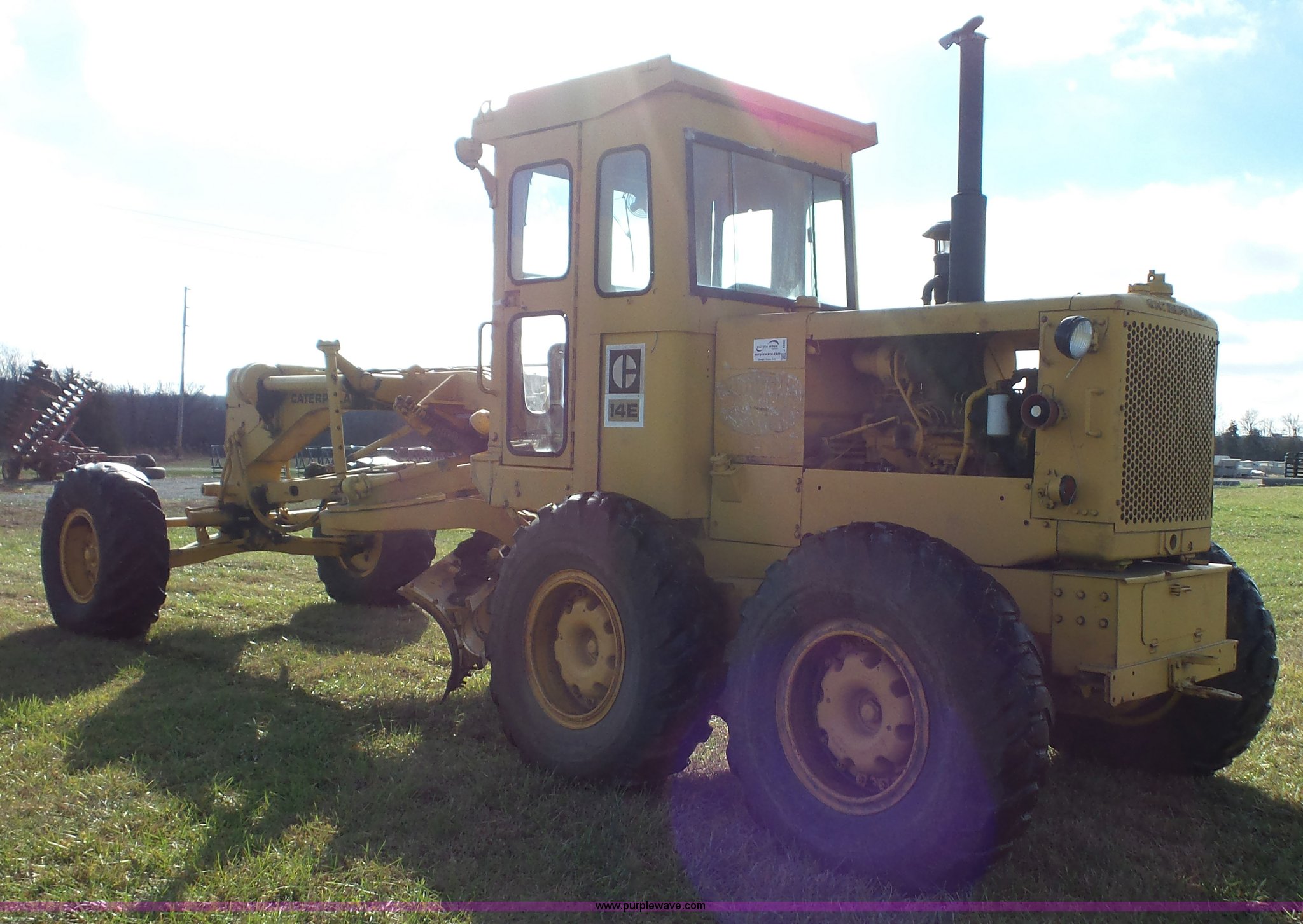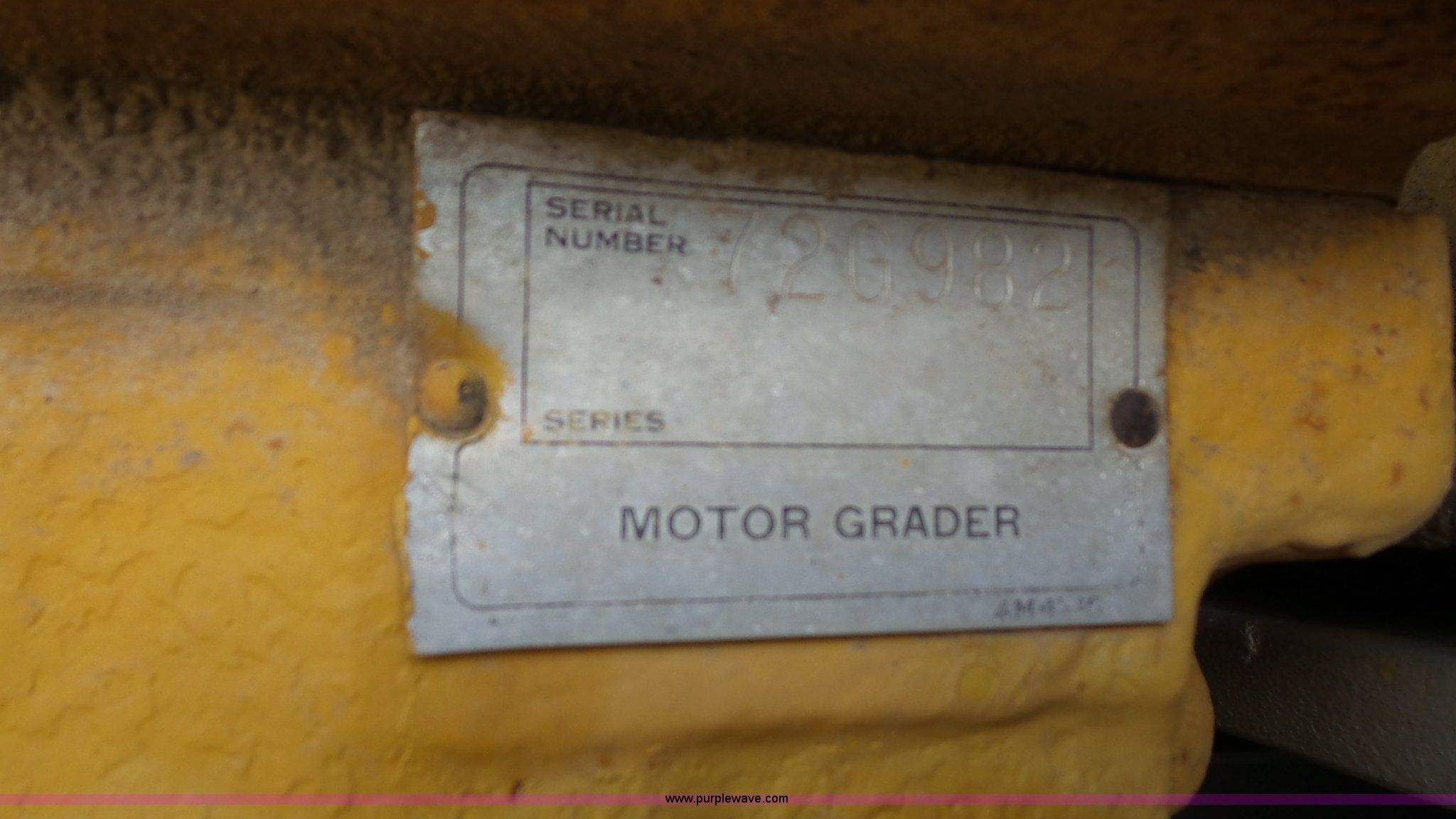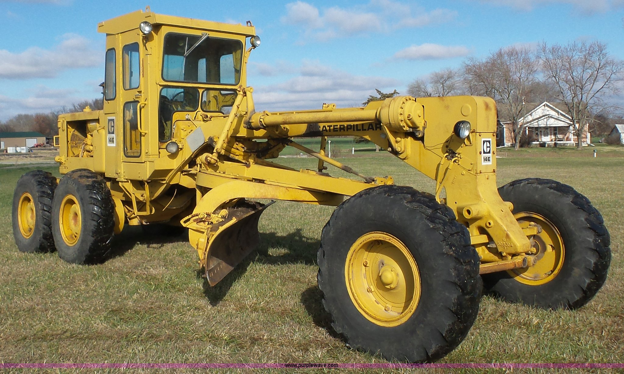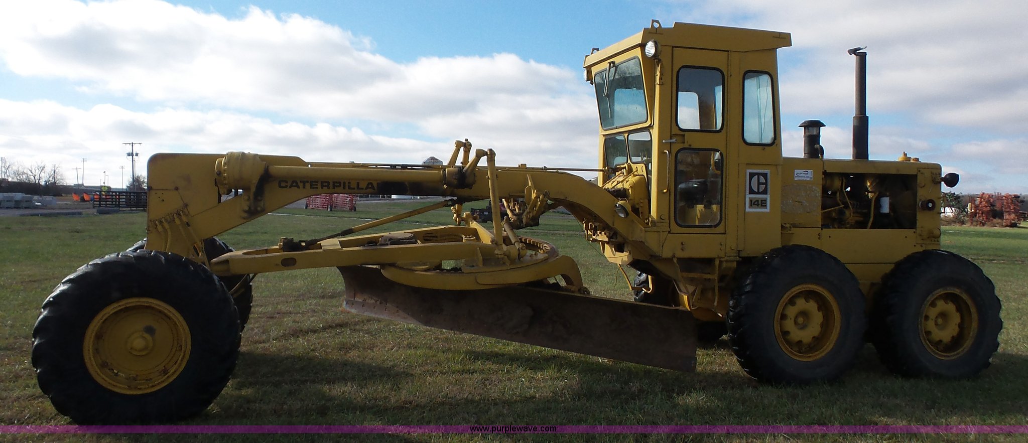 Purple Wave is selling a used Motor Grader in Kansas. This item is a 1972 Caterpillar 14E motor grader with the following: 3,979 hours on meter, Caterpillar D333T six cylinder diesel engine, 150 HP, Powershift transmission, 6F gears, EROPS, Heat, Front work lights, 13'W moldboard, Side shift, 14.00-24 tires, 32,725 lbs. base operating weight, Serial 72G982