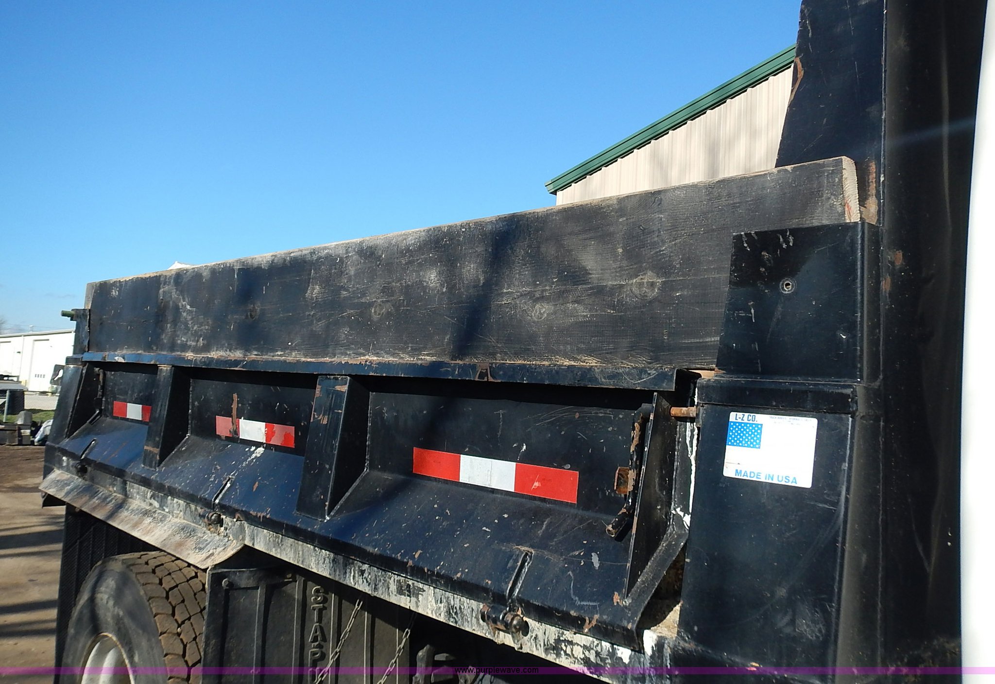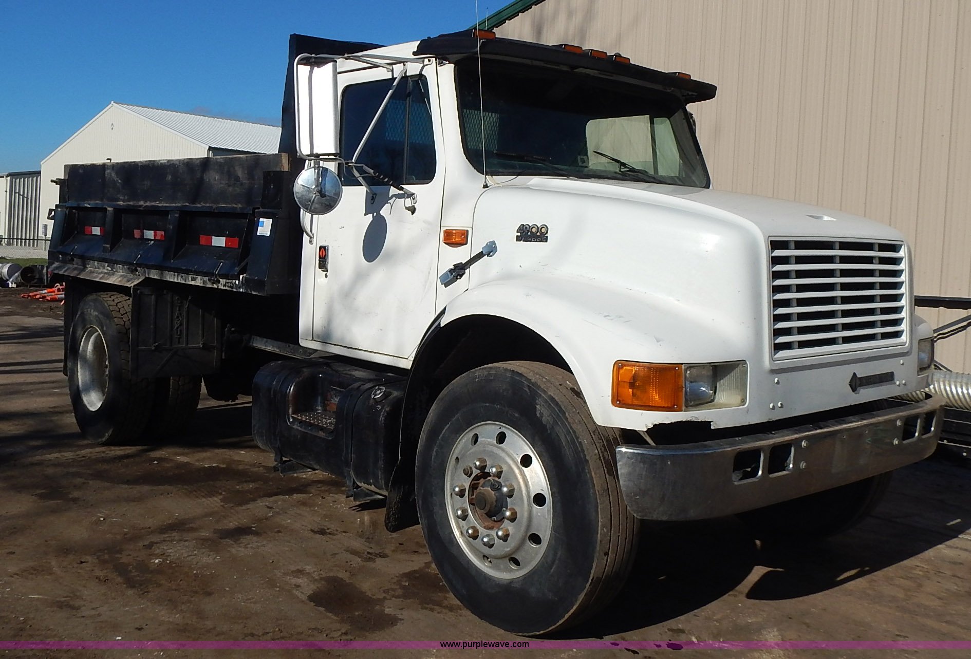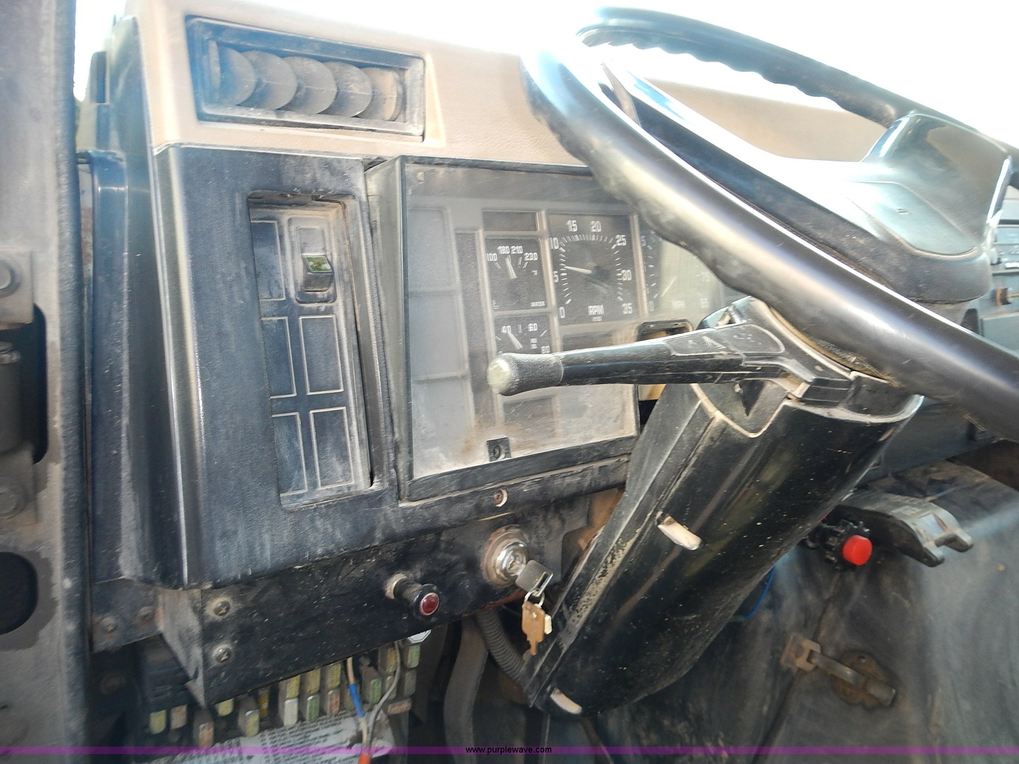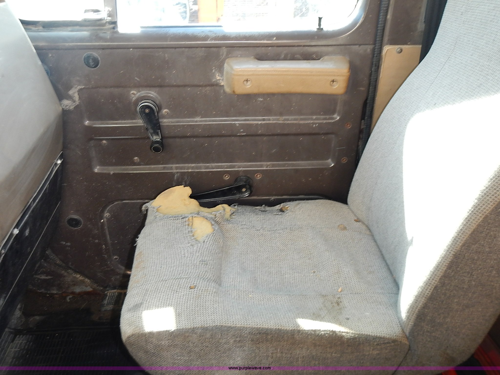 Purple Wave is selling a used Construction Dump Truck in Kansas. This item is a 1991 International 4900 dump truck with the following: 57,029 miles on odometer, Odometer has been changed, International DT466 736L L6 diesel engine, 230 HP, Seven speed manual transmission, Heat, AM/FM, Air suspension seat, Block heater, Exterior visor, 11'L x 91"W steel dump bed, 16" folding side boards, Manual operated end gate, Tool boxes, 68 gallon fuel tank, Backup alarm, Pintle hitch, Trailer wiring, Spring suspension, Air brakes, 158" wheelbase, 11R22.5 tires, Dents and scratches