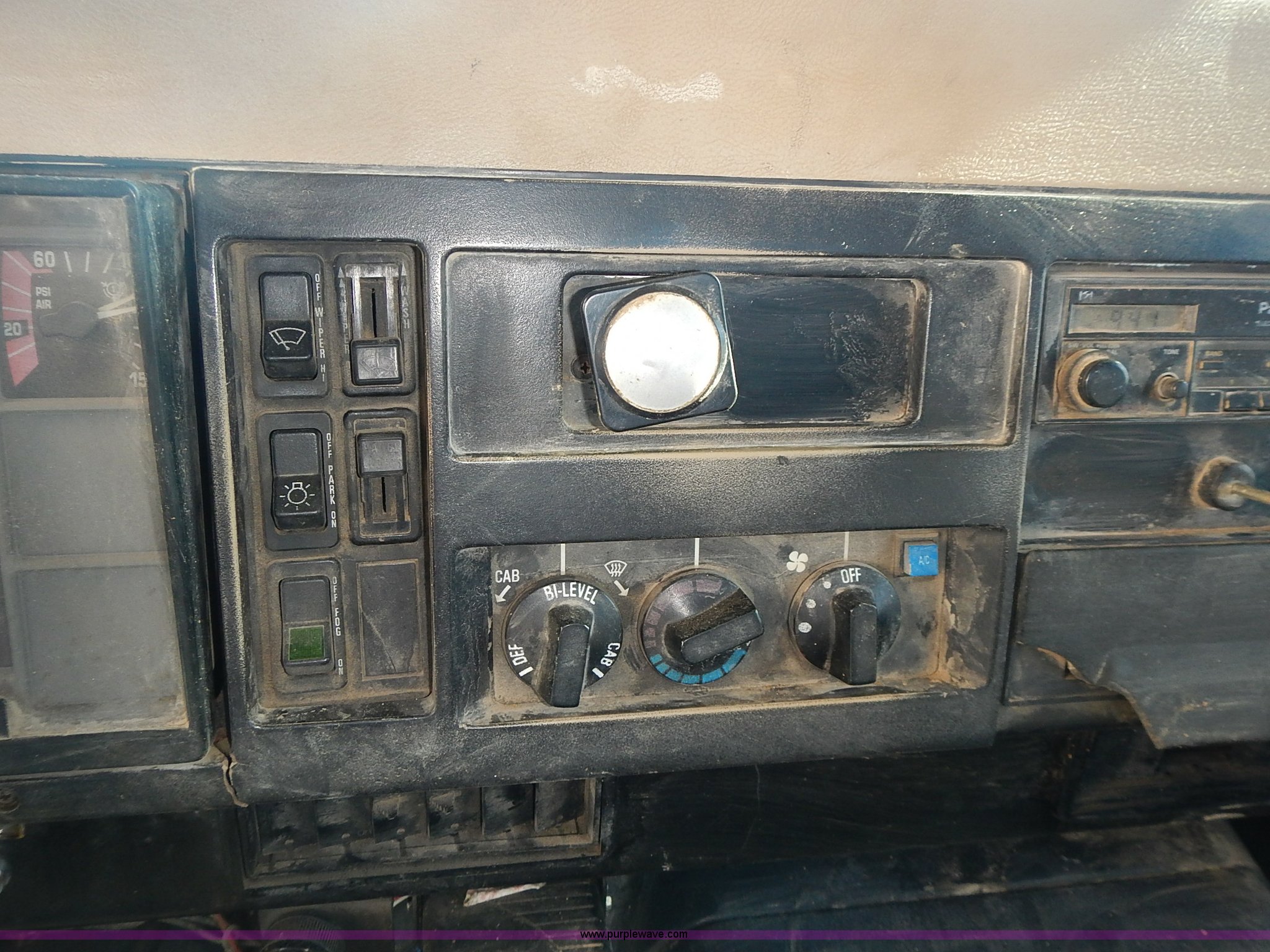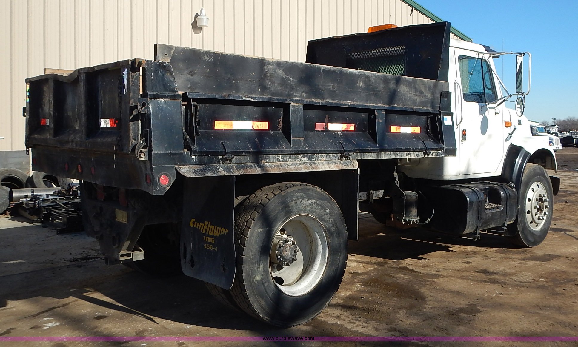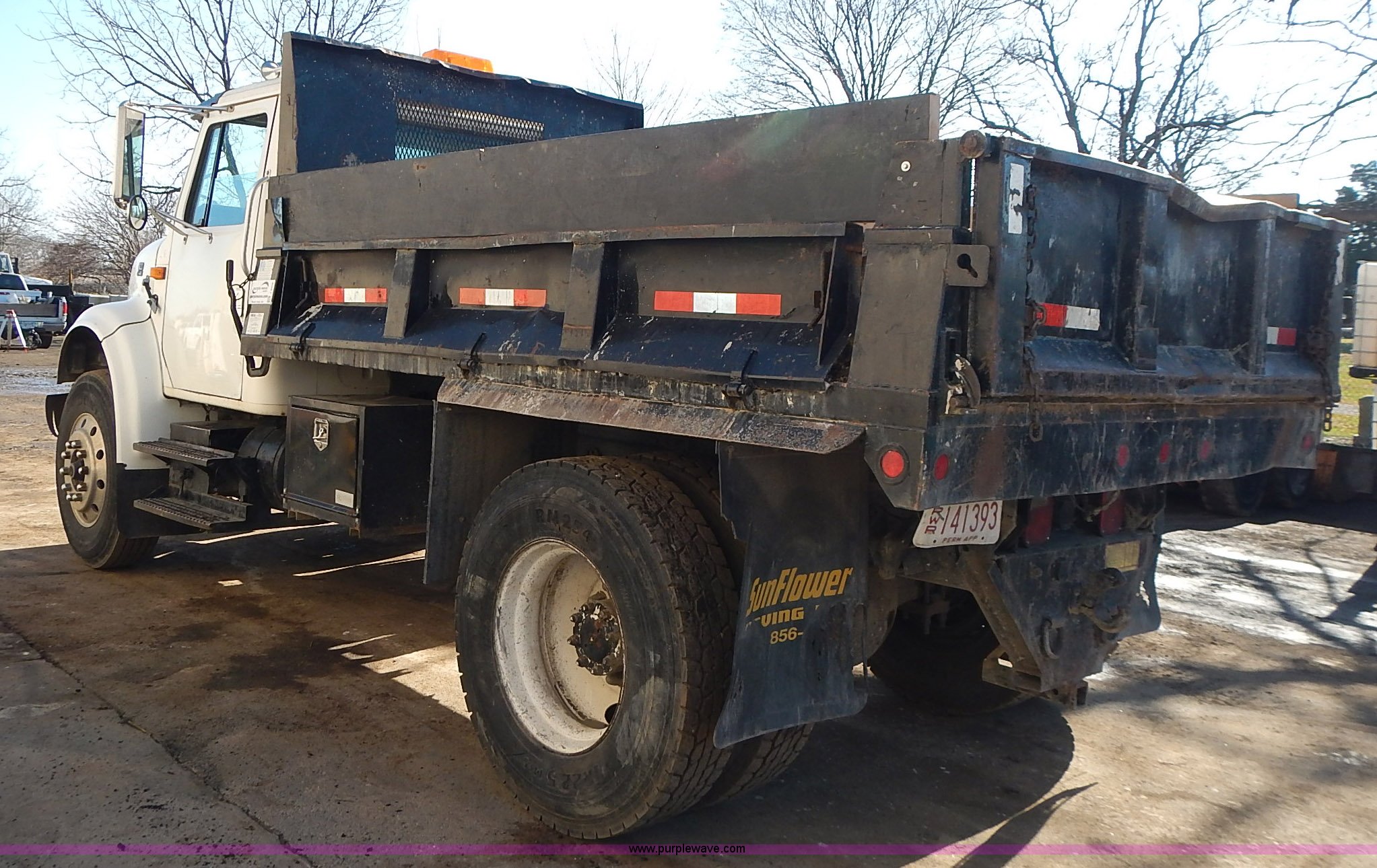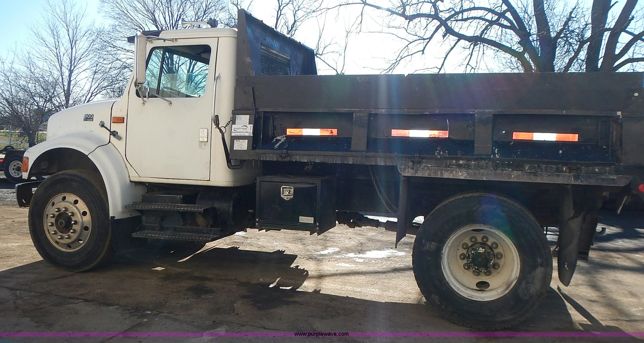 Purple Wave is selling a used Construction Dump Truck in Kansas. This item is a 1991 International 4900 dump truck with the following: 57,029 miles on odometer, Odometer has been changed, International DT466 736L L6 diesel engine, 230 HP, Seven speed manual transmission, Heat, AM/FM, Air suspension seat, Block heater, Exterior visor, 11'L x 91"W steel dump bed, 16" folding side boards, Manual operated end gate, Tool boxes, 68 gallon fuel tank, Backup alarm, Pintle hitch, Trailer wiring, Spring suspension, Air brakes, 158" wheelbase, 11R22.5 tires, Dents and scratches