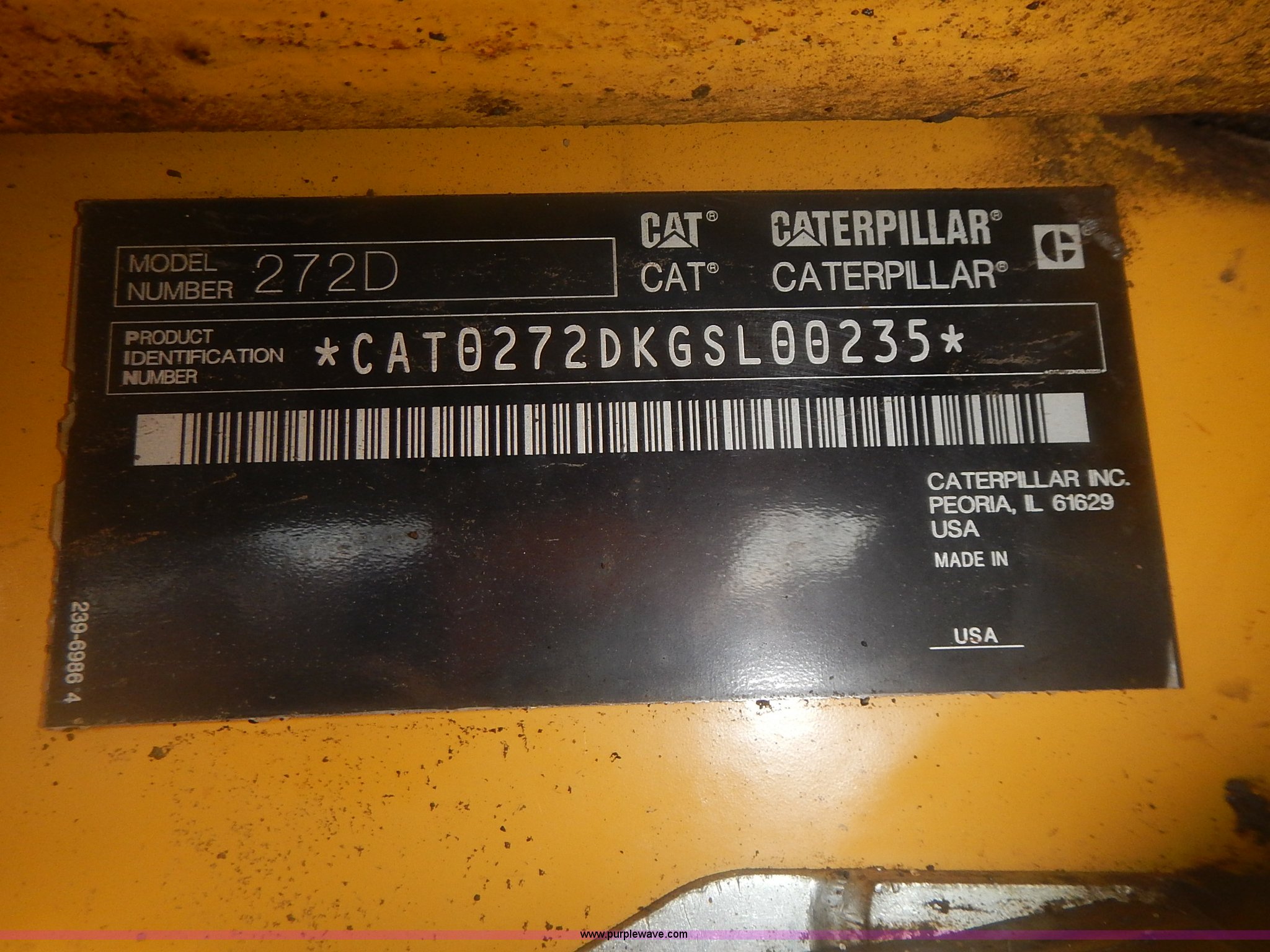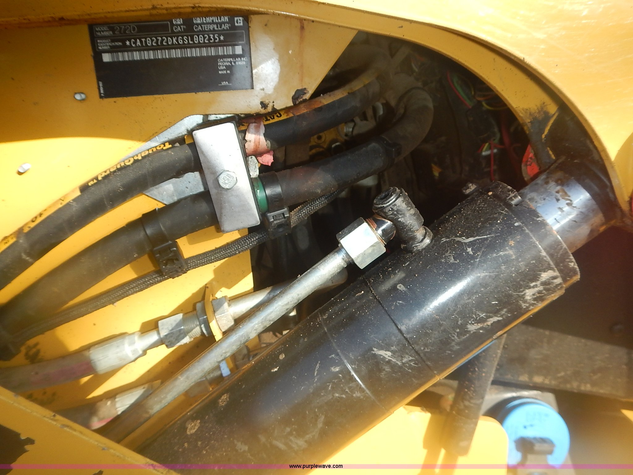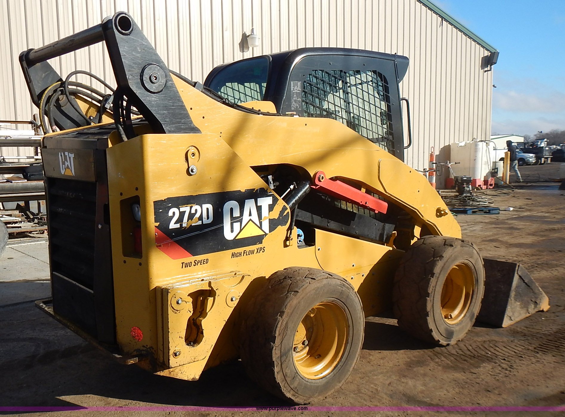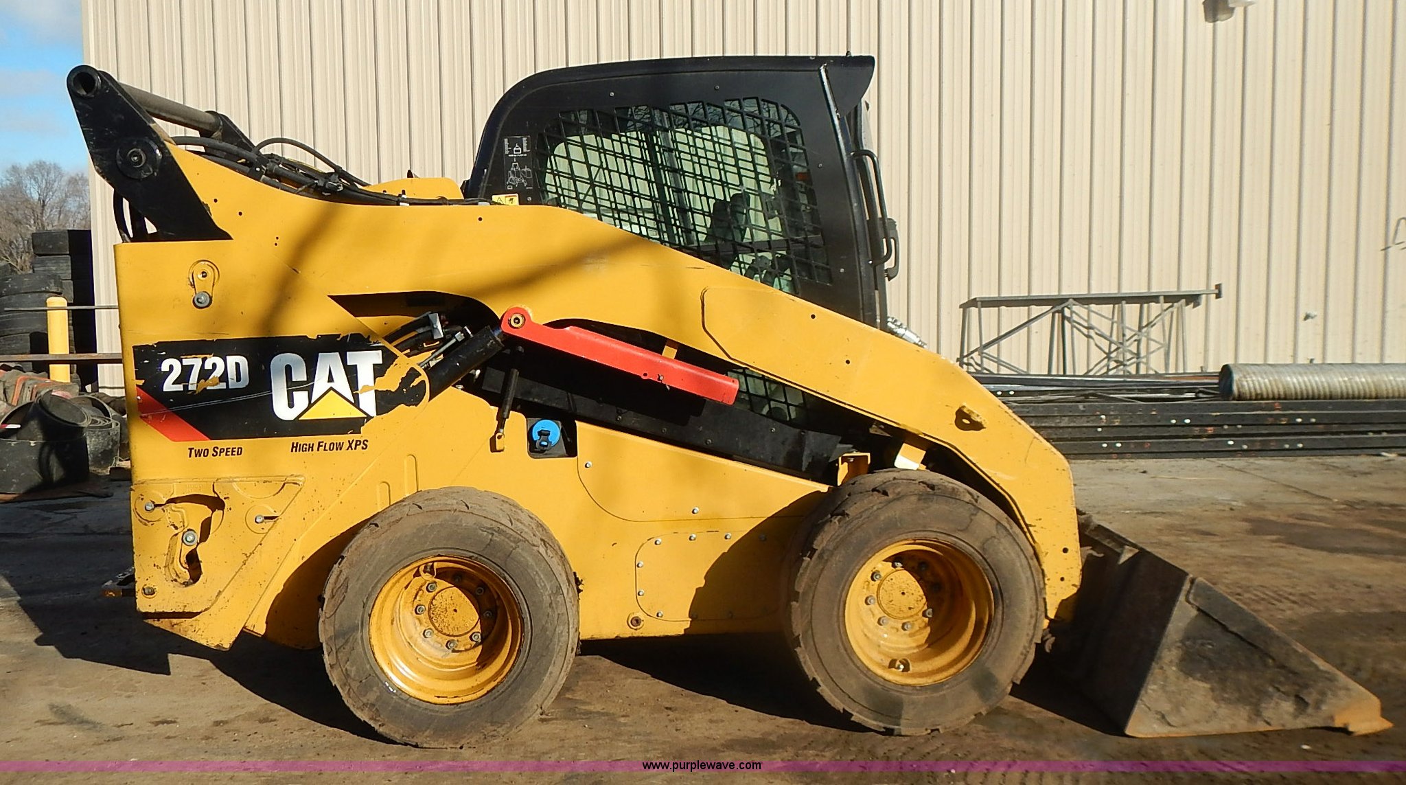 Purple Wave is selling a used Skid Steer Loader in Kansas. This item is a 2012 Caterpillar 272D skid steer with the following: 3,066 hours on meter, Caterpillar four cylinder turbo diesel engine, Two speed hydrostatic transmission, Enclosed cab, AC and heat, AM/FM, Joystick controls, Spring suspension seat, Front and rear work lights, Caterpillar 79"W bucket, Weld-on cutting edge, High Flow auxiliary hydraulics, Counter weights, Prime X tires, Serial CAT027DKGSL00235, Unit# 7504