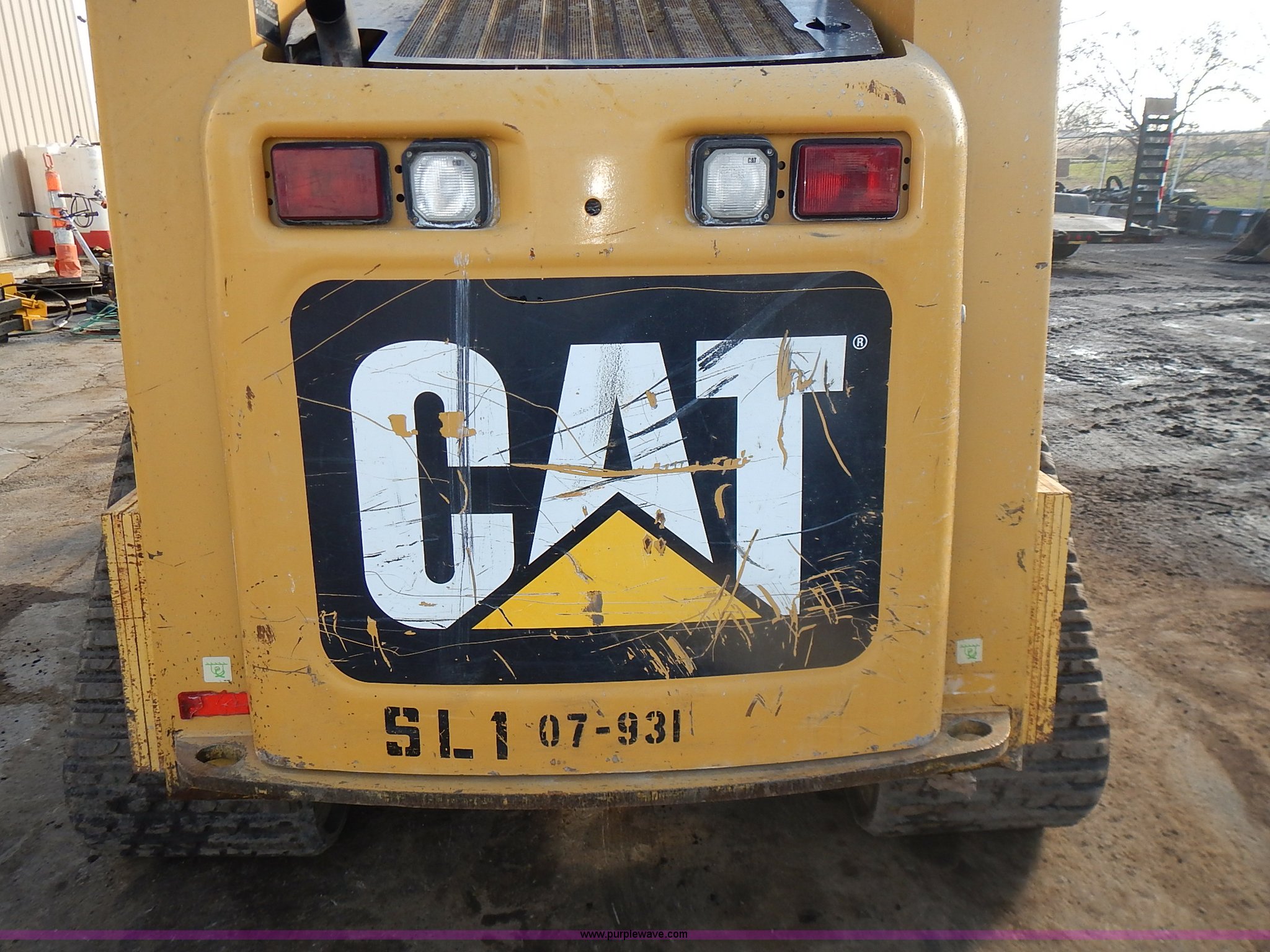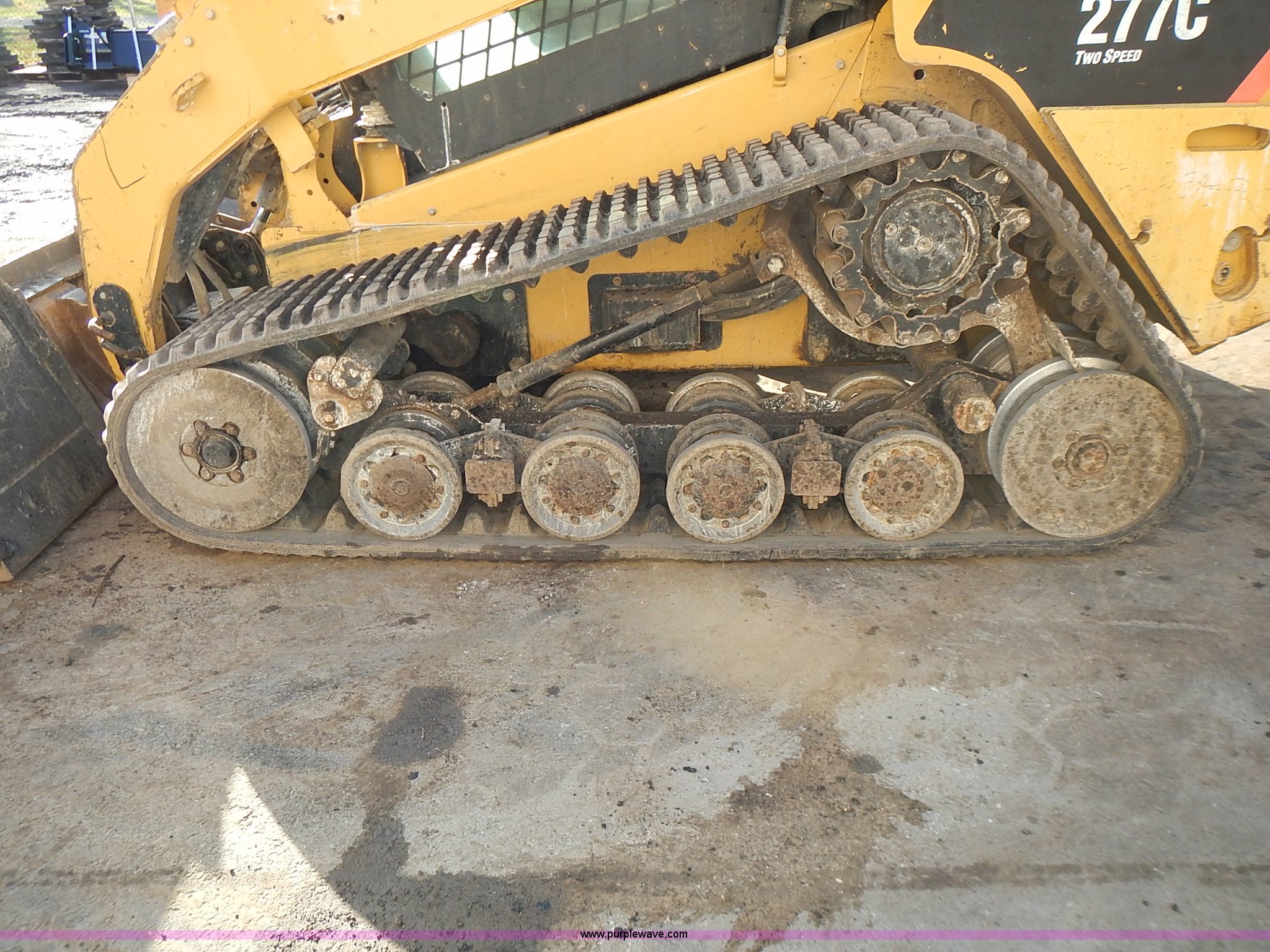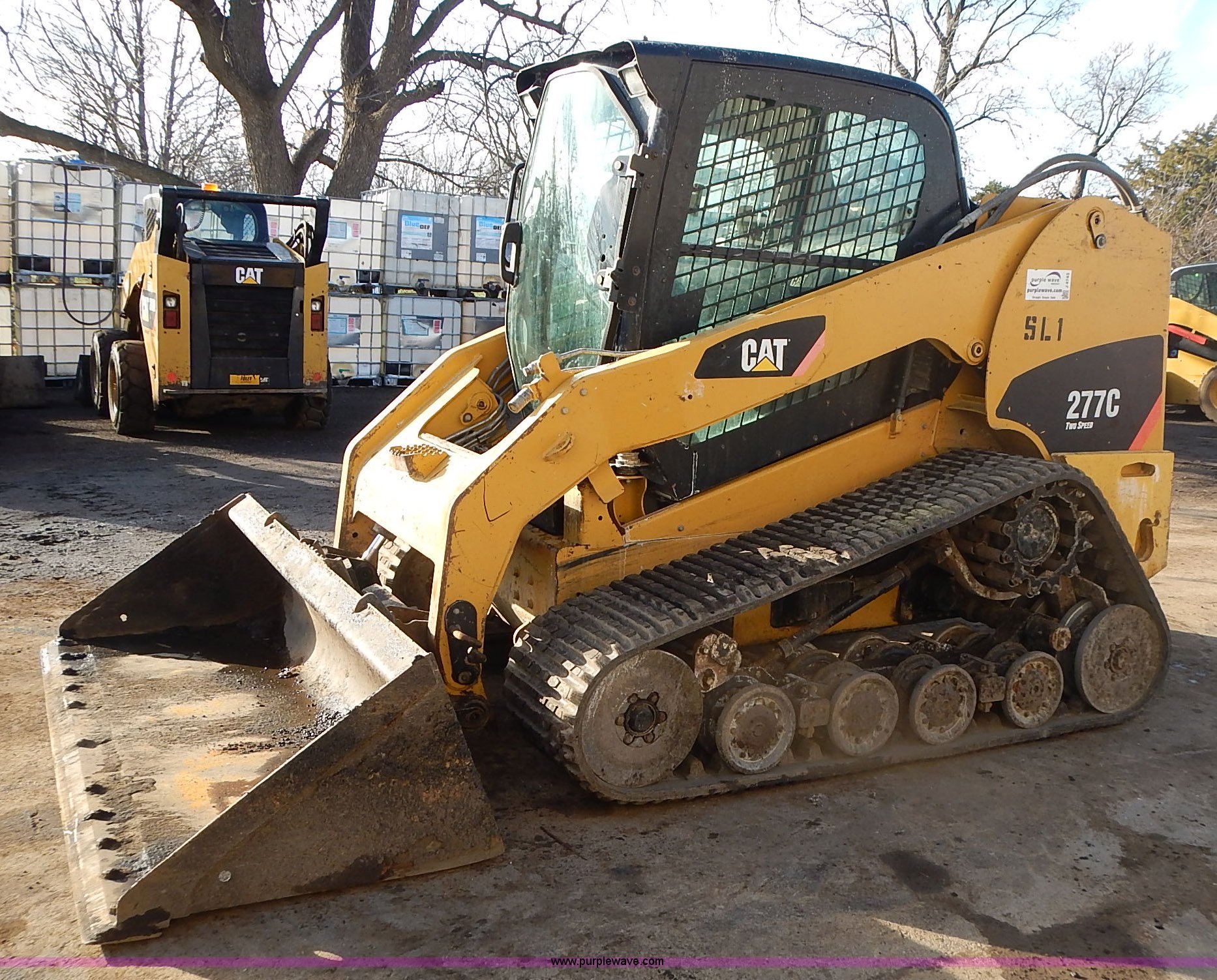 Purple Wave is selling a used Tracked Skid Steer Loader in Kansas. This item is a 2007 Caterpillar 277C skid steer with the following: 3,455 hours on meter, Caterpillar four cylinder diesel engine, Two speed hydrostatic transmission, Enclosed cab, AC and heat, Joystick controls, Spring suspension seat, Front work lights, Backup alarm, Caterpillar 292-9270 skid steer bucket, .82 cubic yard capacity, 85"W, Weld-on cutting edge, 723 lbs capacity, Auxiliary hydraulics, Counter weights, Four bottom rollers, 18"W tracks, 9,389 lbs. base operating weight, Serial CAT0277CVJWF00247, Unit# SC1
