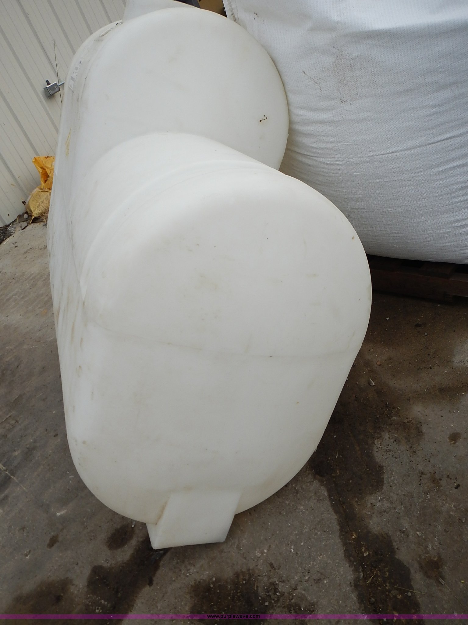 Purple Wave is selling a used Tanks in Kansas. This item is a 200 gallon poly tank with the following: Top cap, Two bottom outlets, Unused