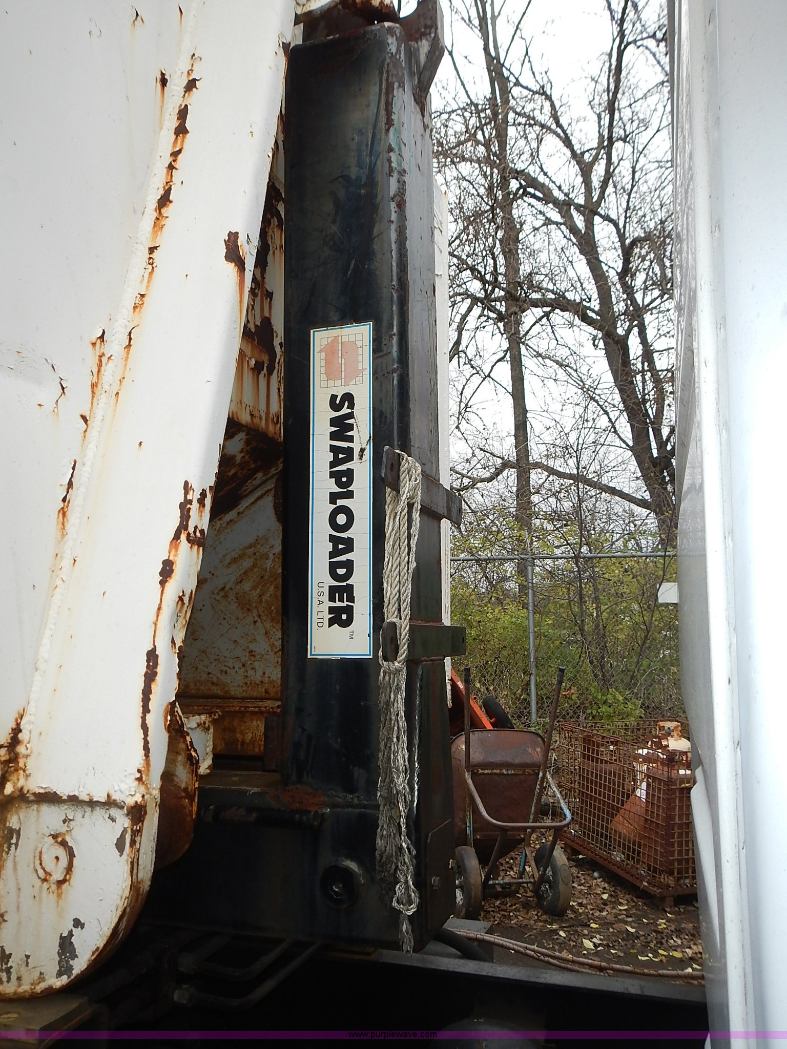 1997 Freightliner FL70 rollback truck. 114,488 miles on odometer, Caterpillar 3126 7.2L L6 turbo diesel engine 230 HP, Spicer seven speed manual transmission, Heat, Cruise, AM/FM/cassette, Air suspension seat, Backup alarm, Block heater, Muncie PTO, Swap Loader SL-205 rollback bed 18'L x 8'W, 24"L dovetail, Side rings for load straps, Storage boxes, In-cab controls, Hydraulic reservoir tank, Single fuel tank, Spring suspension, Air brakes, 238" wheelbase, 11R22.5 tires, GVWR 33,000 lbs, FAWR 12,000 lbs, RAWR 21,000 lbs, Decals will be removed prior to auction, Dents and scratches, Windshield chipped, Unit# 10. 1FV6HJBA3VH805714. Kansas City, KS 66103