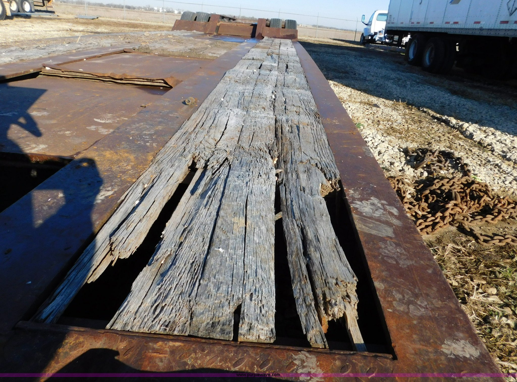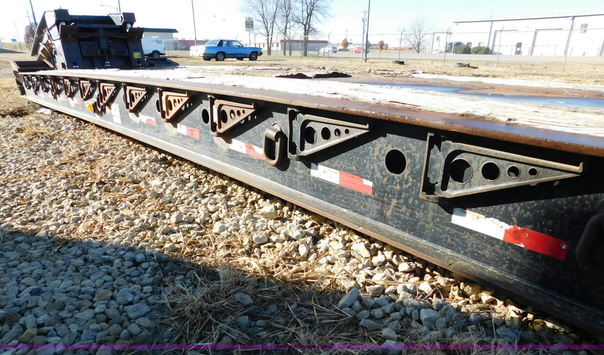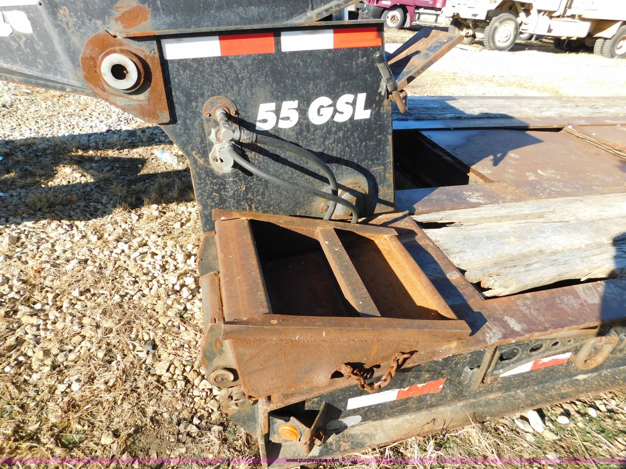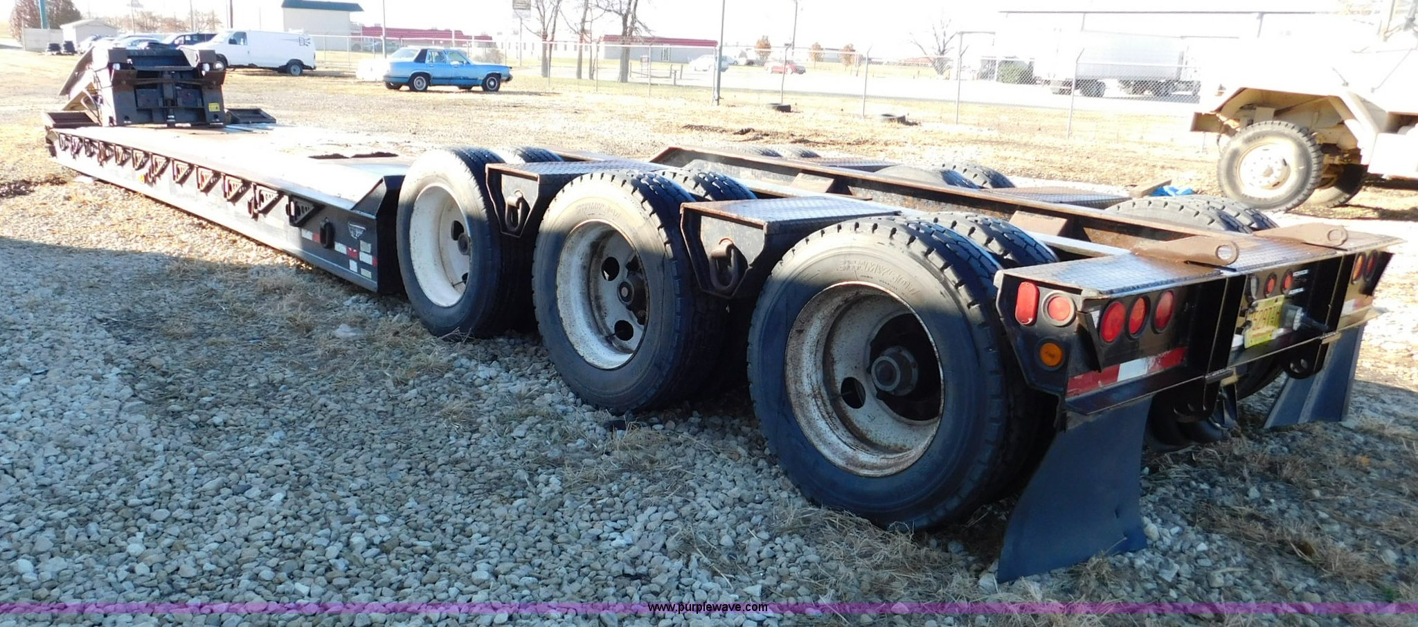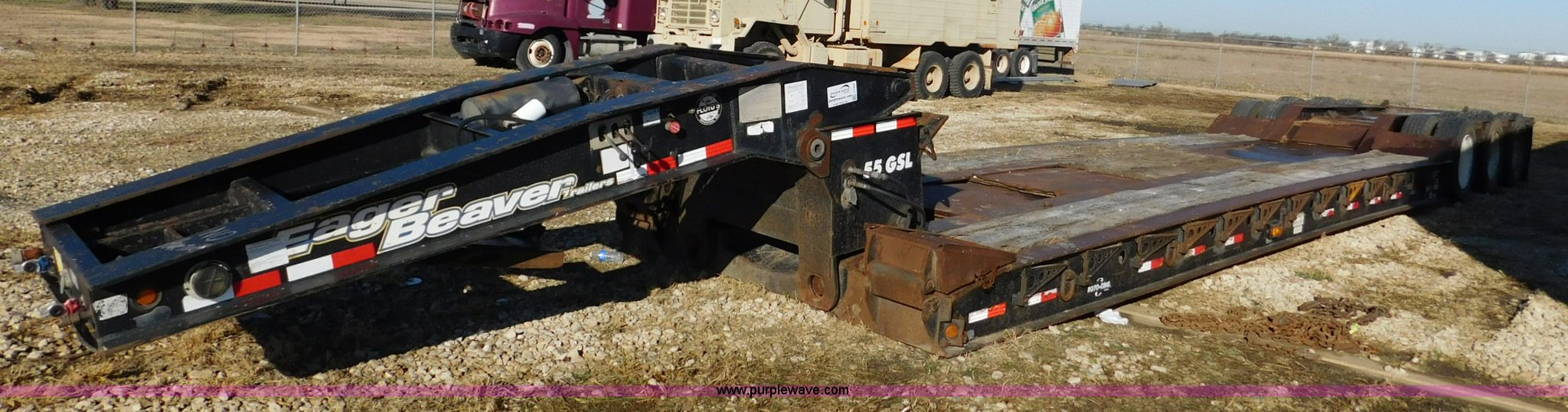Purple Wave is selling a used Equip. Trailer in Kansas. This item is a 2006 Eager Beaver 55 GLS lowboy equipment trailer with the following: 52'2" overall length, 25'L x 8.5'W wood deck, 14'8"L rear deck length, 12.5'L detachable neck, Hydraulic controls, Swing out outriggers, Honda gas engine, Fifth wheel plate, Air suspension, Air brakes, Triple axle, Lift axle, 275/70R22.5 tires