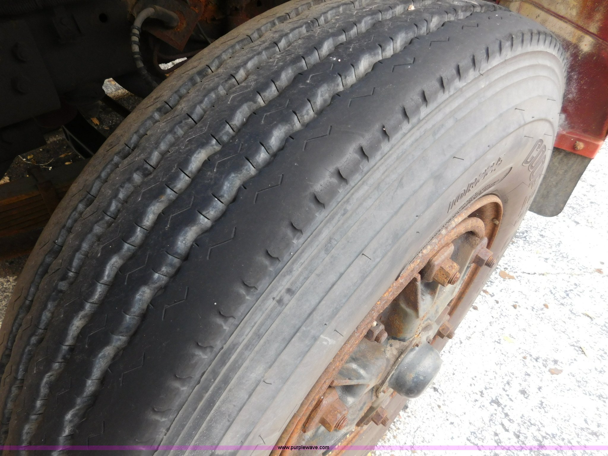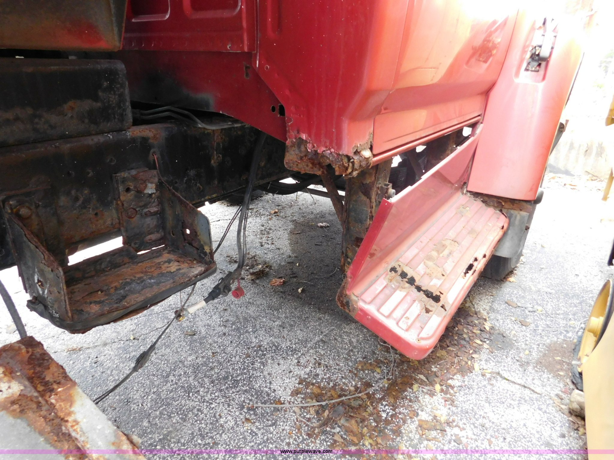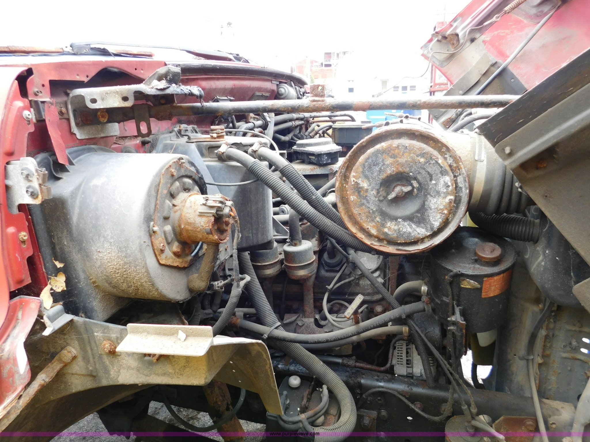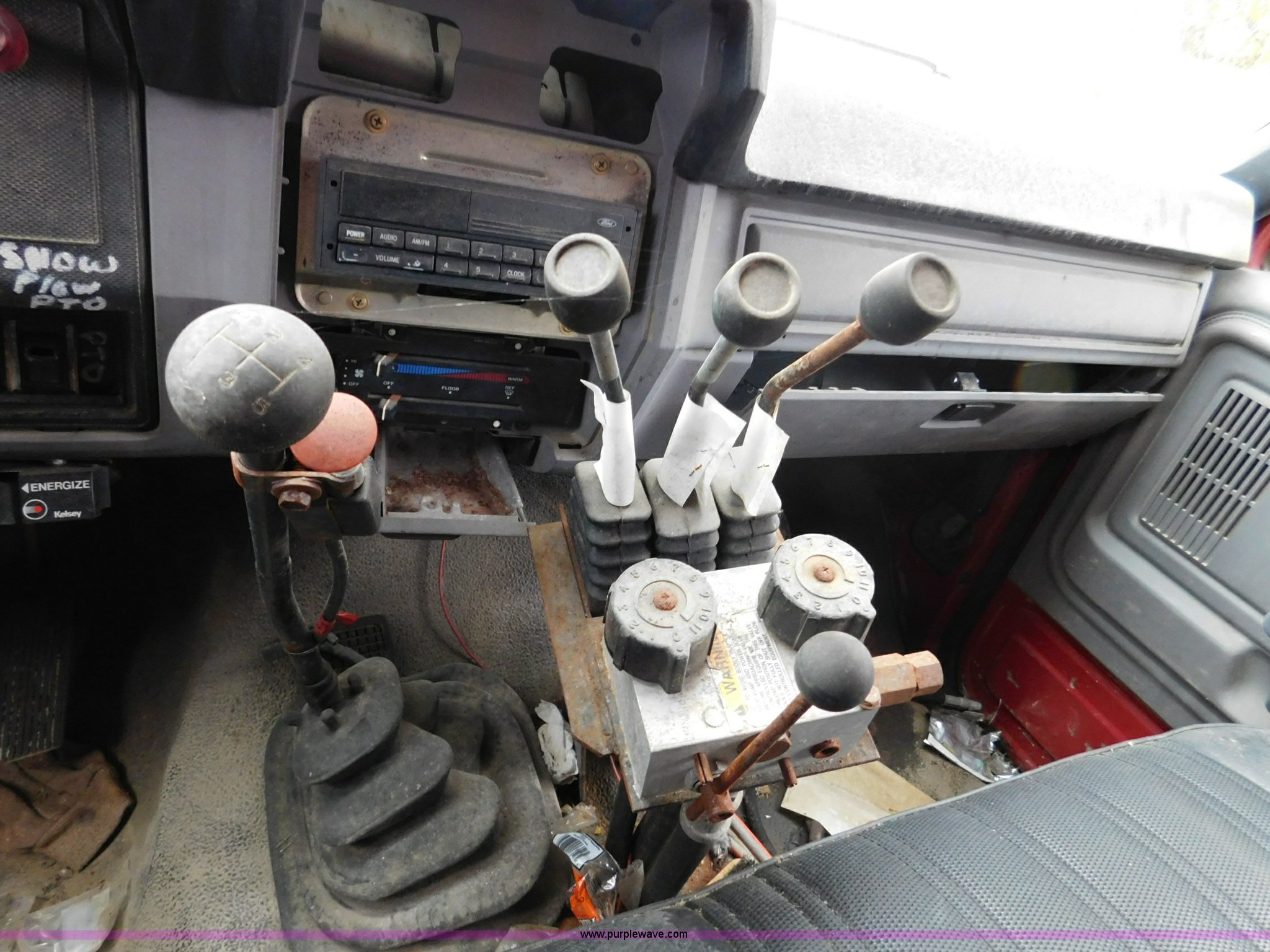 Purple Wave is selling a used Construction Dump Truck in Illinois. This item is a 1995 Ford F700 dump truck with the following: 81,197 miles on odometer, Ford 7.0L V8 gas engine, Five speed manual transmission, Steel dump bed, Spring suspension, Pintle hitch, 10R22.5 front tires, 295/75R22.5 rear tires, GVWR 26,000 lbs, Interior/exterior cosmetic damage