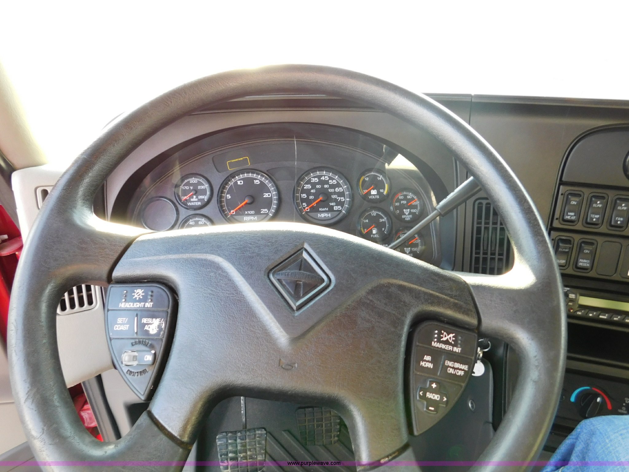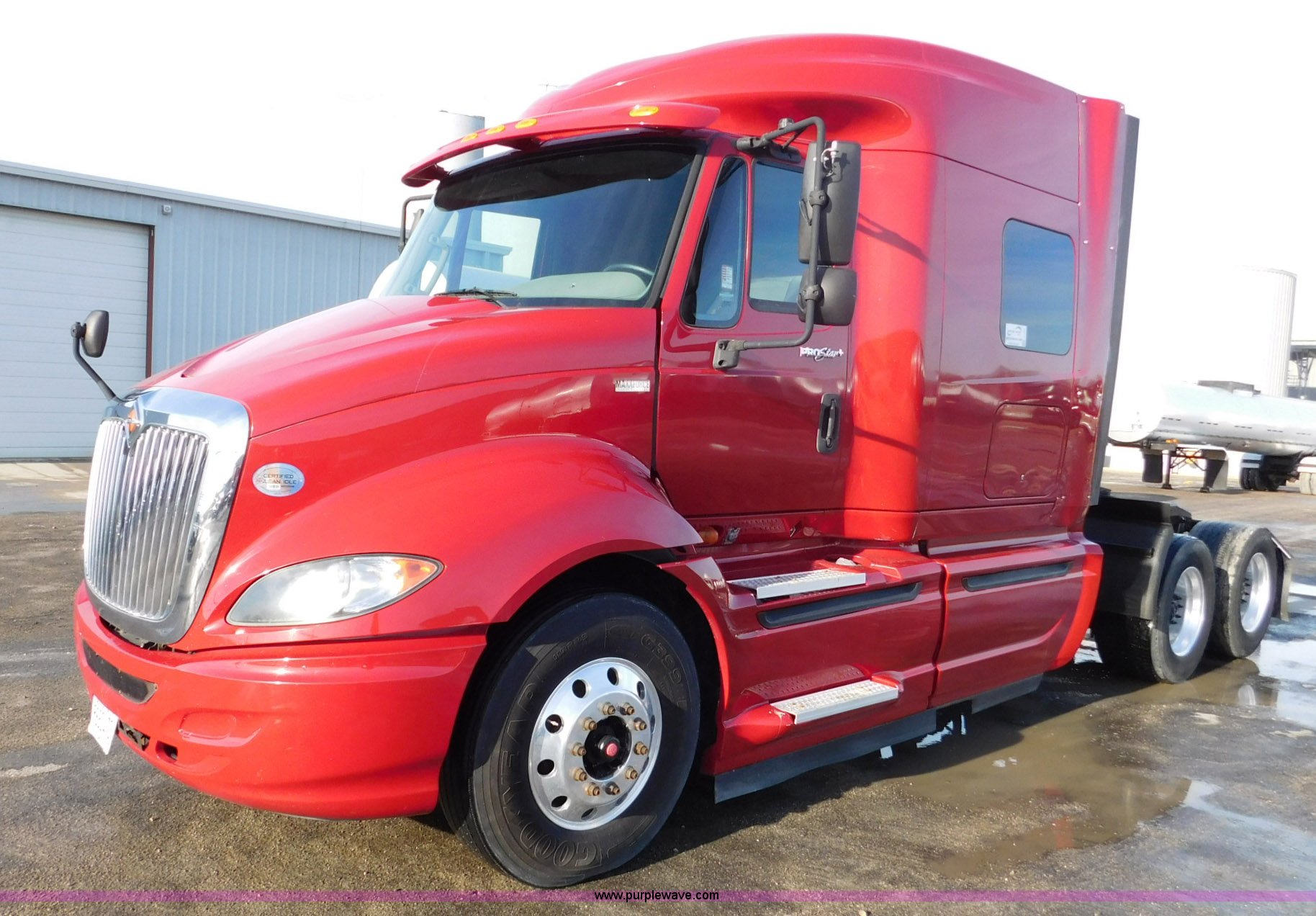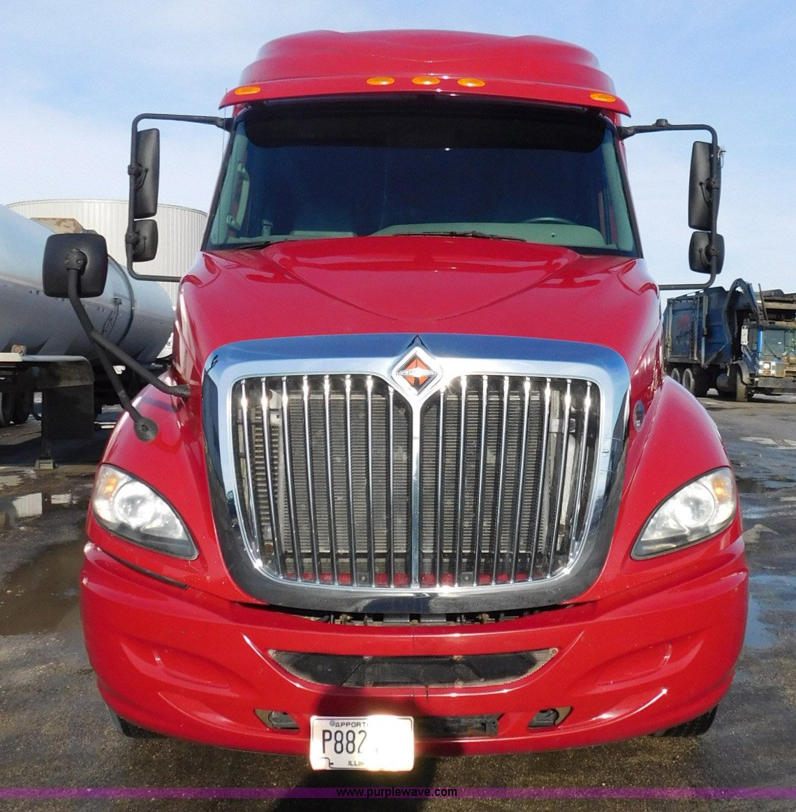 Purple Wave is selling a used Truck Tractor in Illinois. This item is a 2012 International ProStar semi truck with the following: 363,309 miles on odometer, MaxxForce 13 13.0L L6 turbo diesel engine, Serial 15125HM2Y4108883, Eaton Fuller 10 speed manual transmission, Tandem axle, AC and heat, Tilt, AM/FM, Power windows and locks, Power and heated mirrors, Air ride cab, Block heater, Dump valves, Exterior visor, Aluminum deck plate, Sliding fifth wheel plate, Single exhaust stack, Dual fuel tanks, Quarter fenders, Air suspension, Air brakes, Engine brake, 11R22.5 front tires, 445/50R22.5 rear tires, GVWR 52,350 lbs, Driver's side sleeper dented, Dash cracked