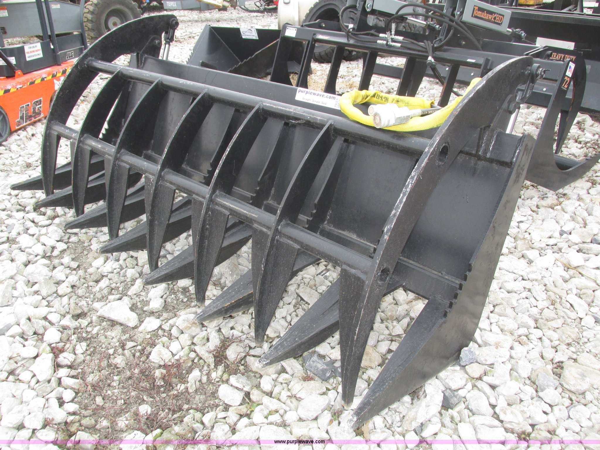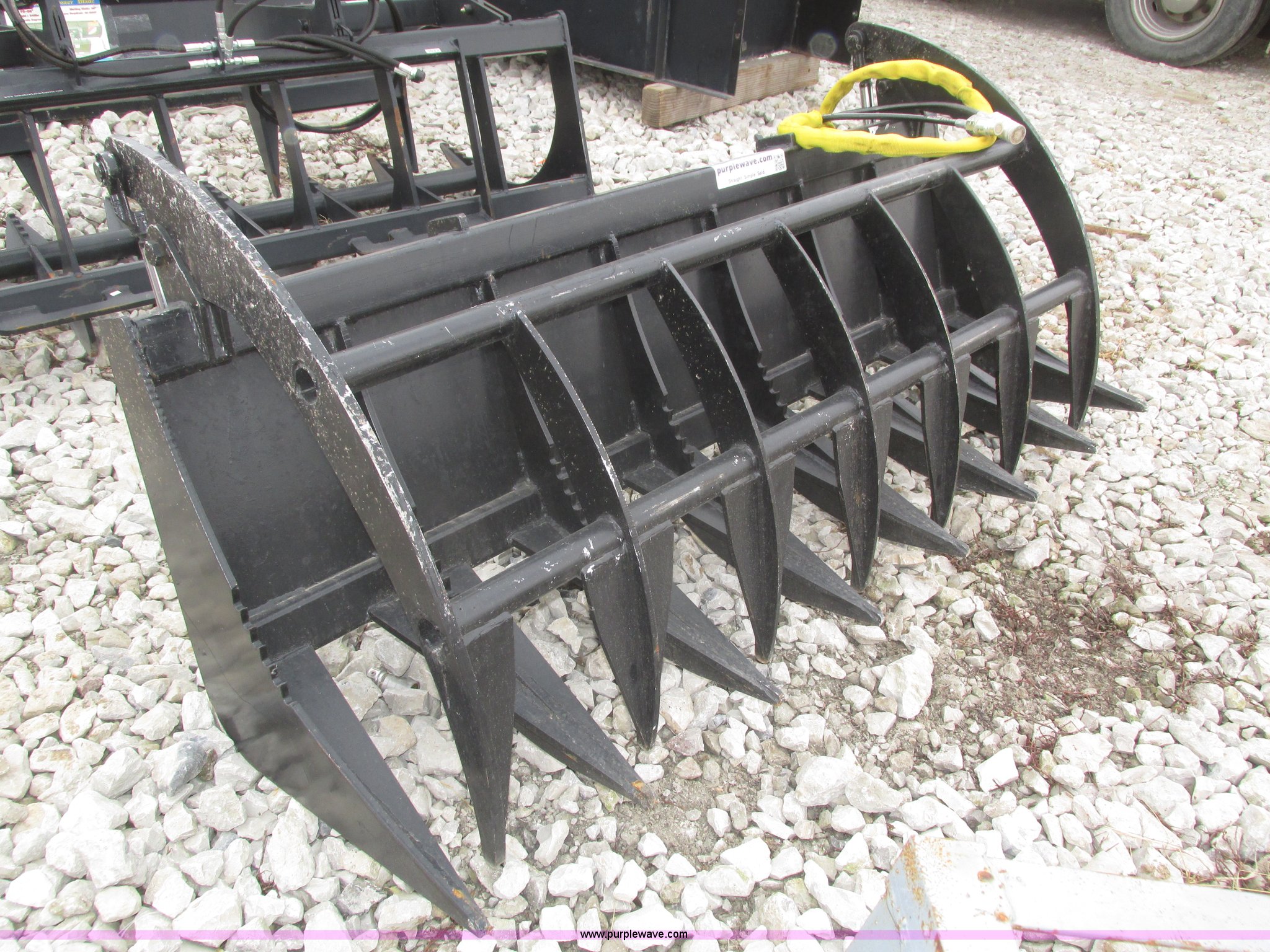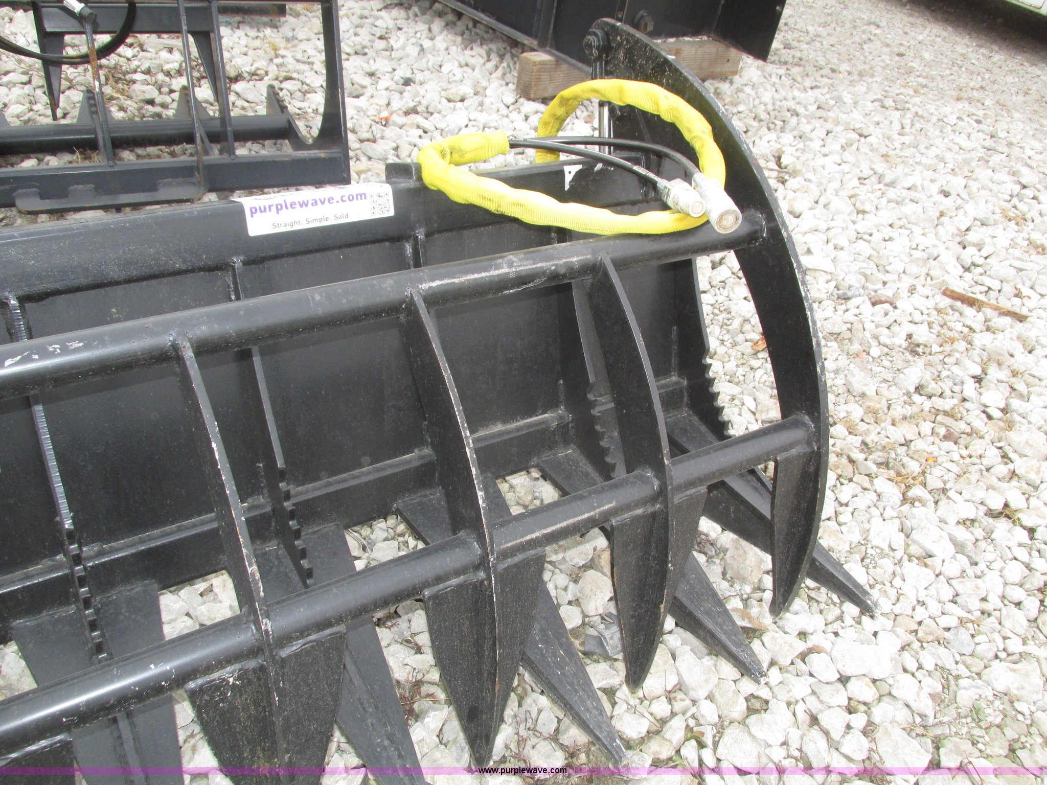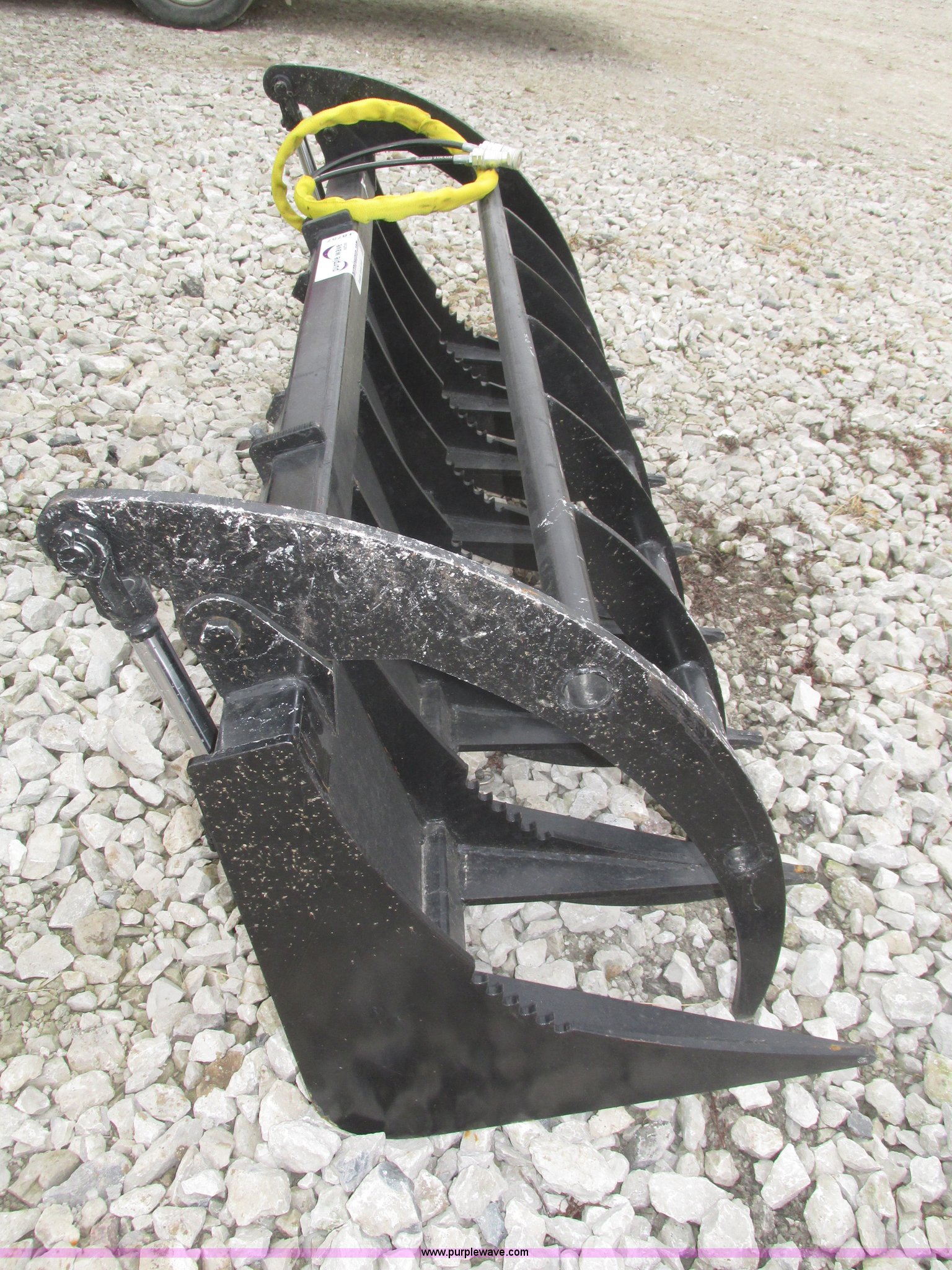 Purple Wave is selling a used Skid Steer Attach. in Nebraska. This item is a Skid steer grapple bucket with the following: 72"W, (8) teeth, 19"D serrated interior base, 63"W Grapple, 24" deep, (2) 10" cylinders, Unused