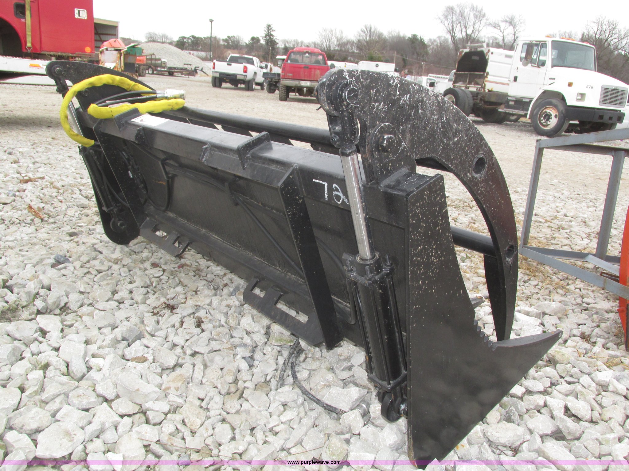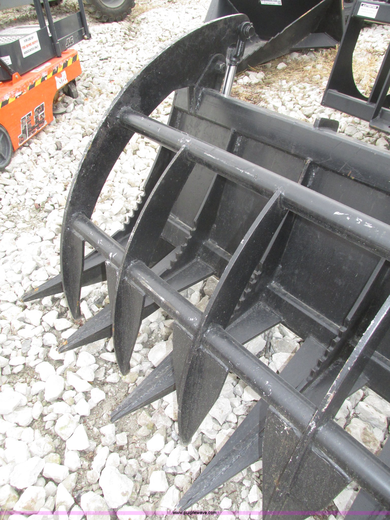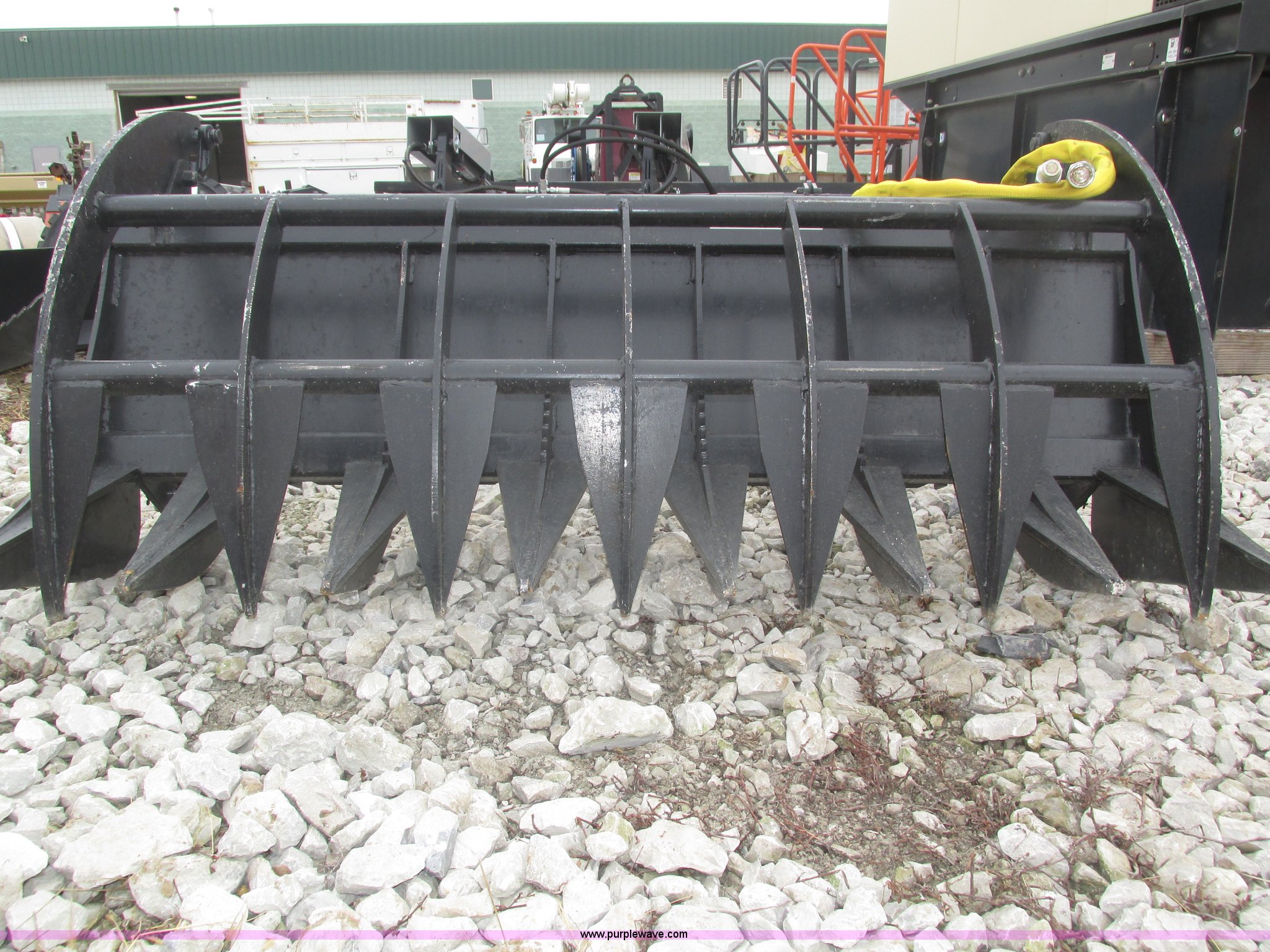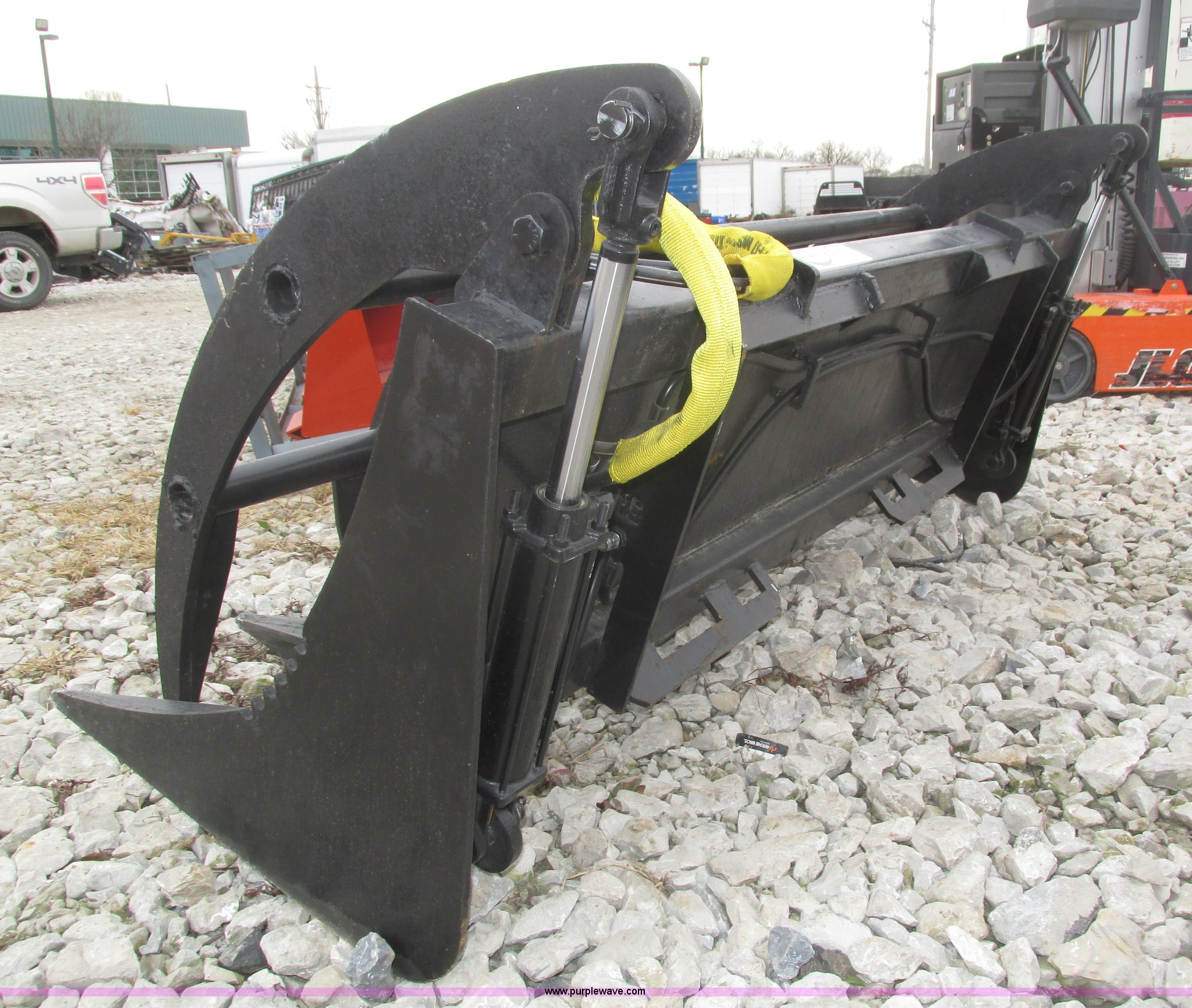 Purple Wave is selling a used Skid Steer Attach. in Nebraska. This item is a Skid steer grapple bucket with the following: 72"W, (8) teeth, 19"D serrated interior base, 63"W Grapple, 24" deep, (2) 10" cylinders, Unused