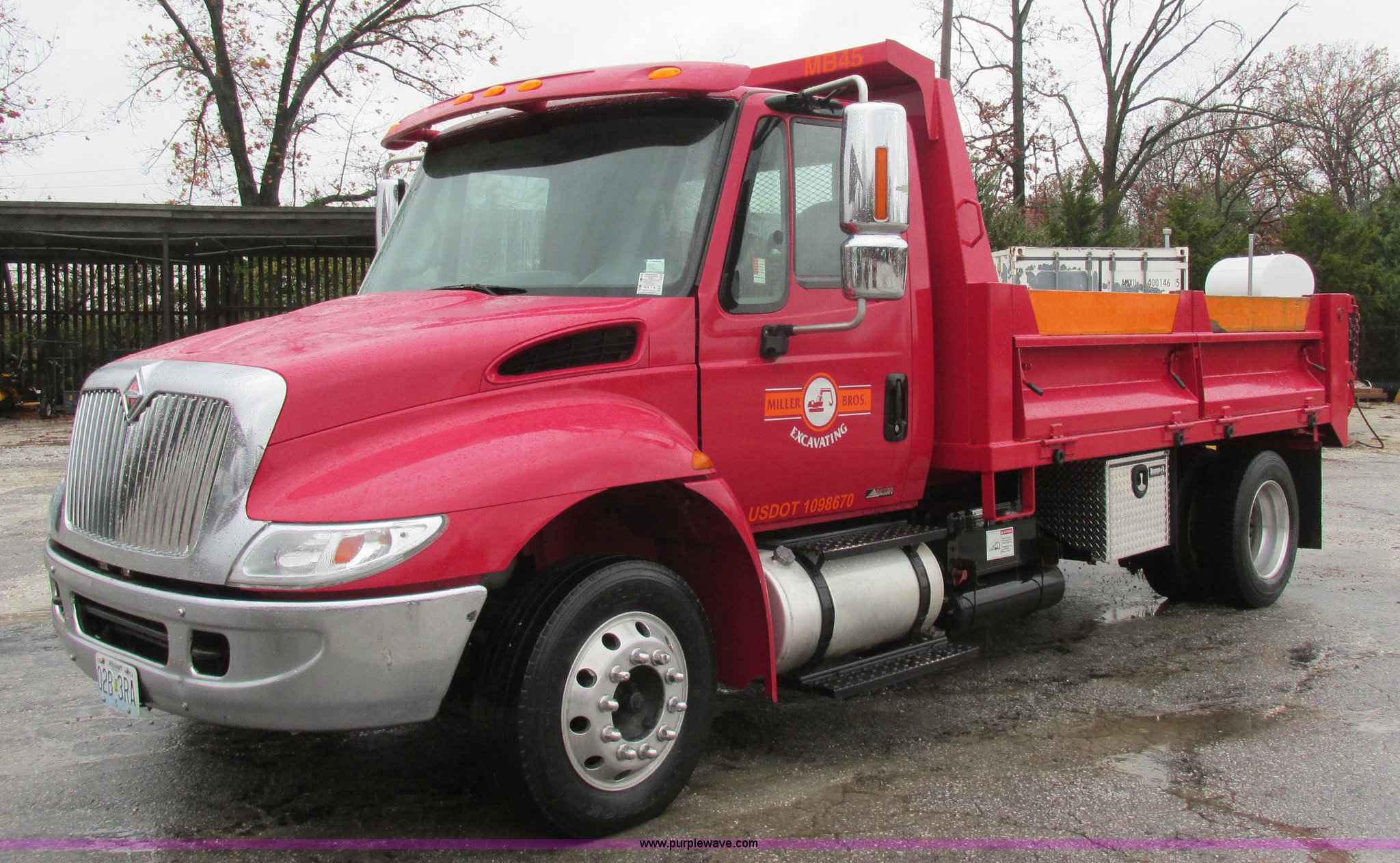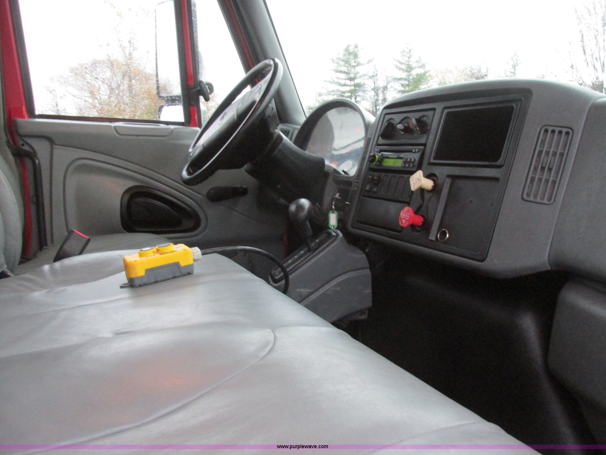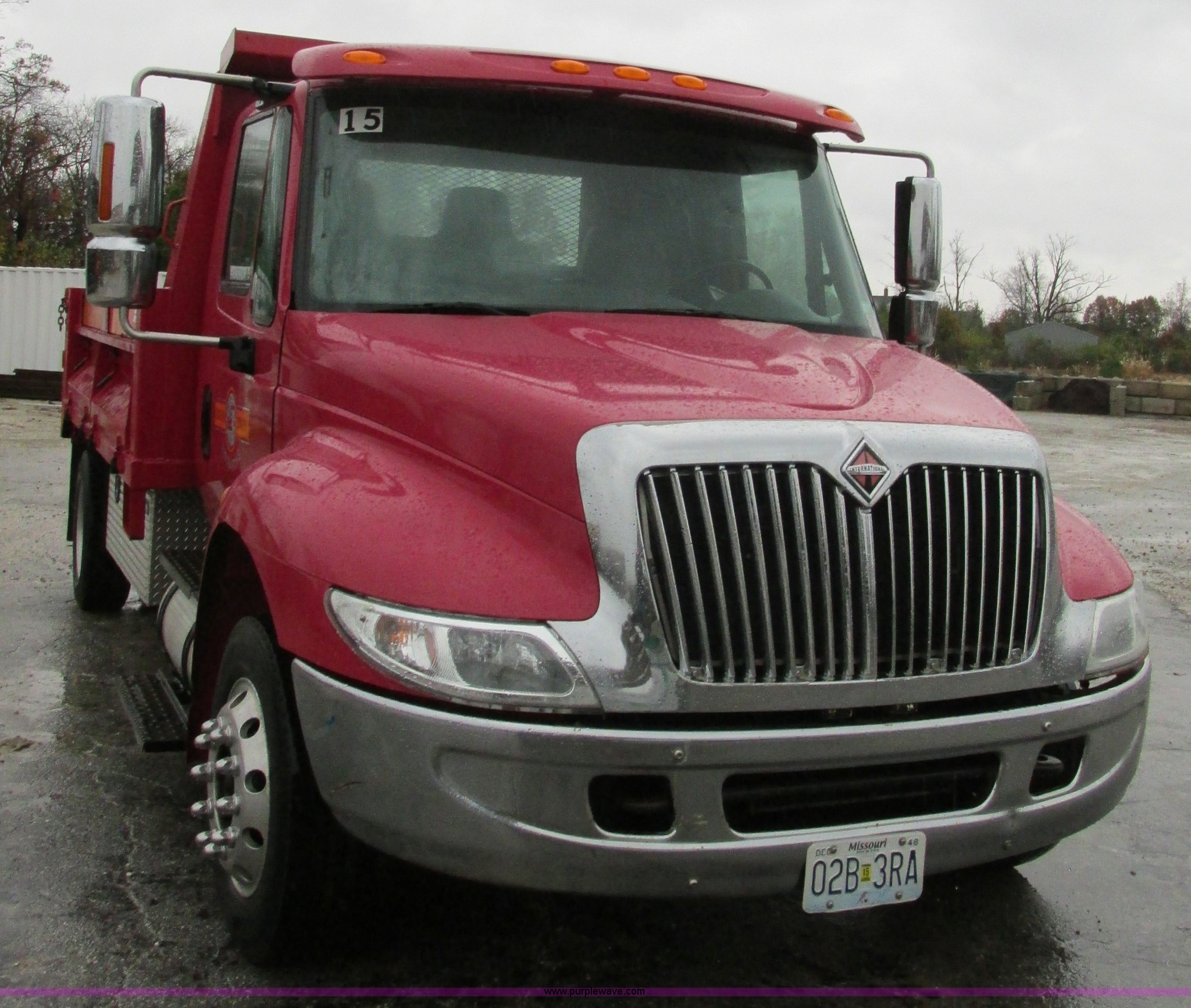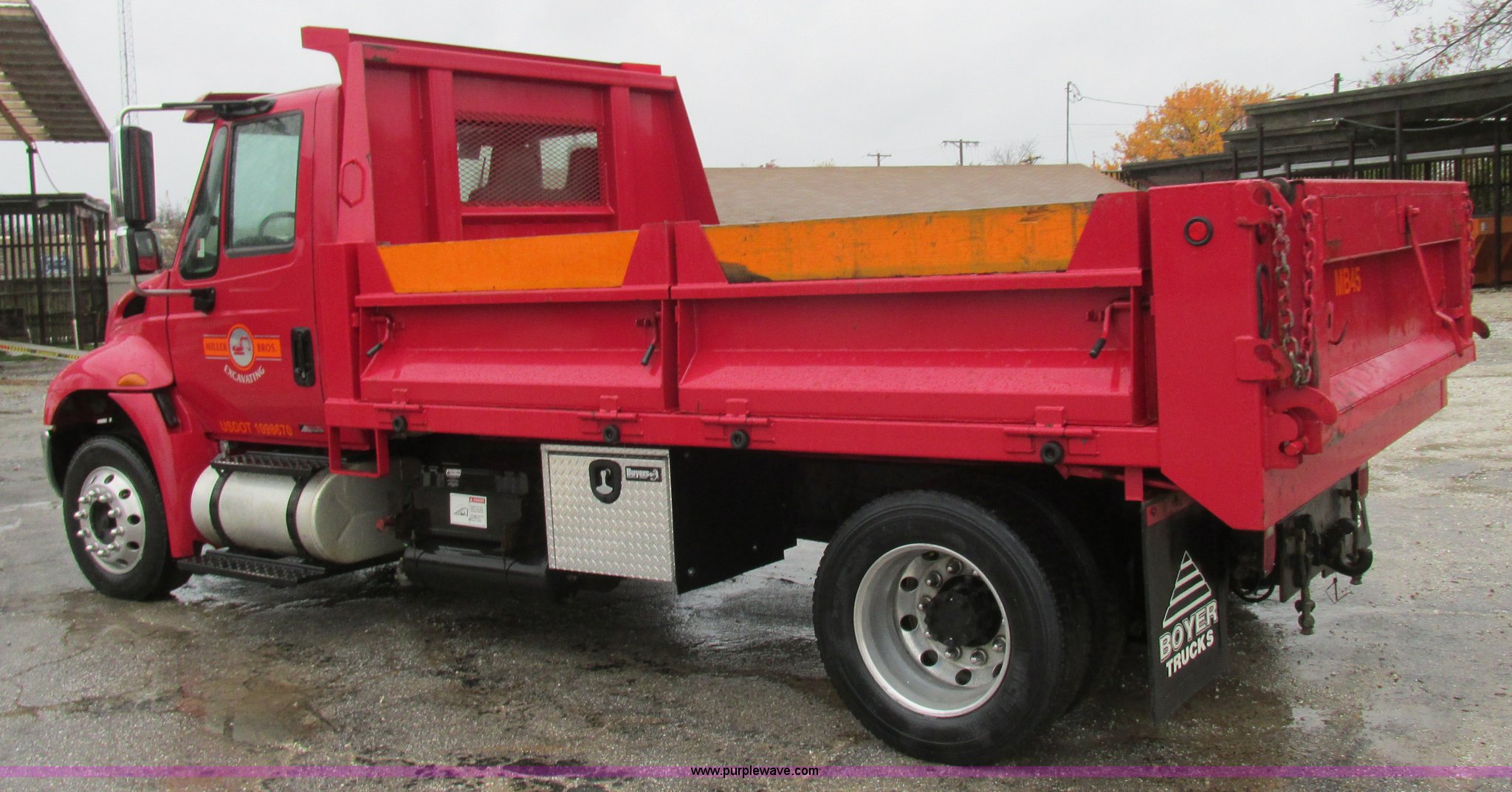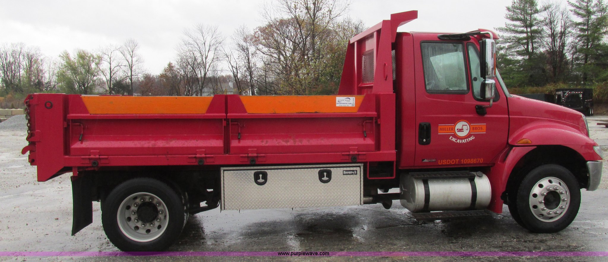 Purple Wave is selling a used Construction Dump Truck in Missouri. This item is a 2006 International DuraStar 4300 dump truck with the following: 196,003 miles on odometer, International DT466 7.6L L6 turbo diesel engine, Automatic transmission, Single axle, AC and heat, Tilt, Cruise, Air suspension seat, 12'4"L x 98"W dump bed, Fold down sides, Air end gate, Two way tailgate, Electric over hydraulic hoist, (2) Buyers aluminum toolboxes, Dual fuel tanks, Rear pintle hitch, Air hookups, Air suspension, Air brakes, 245/70R19.5 tires, GVWR 25,500 lbs, FAWR 8,000 lbs, RAWR 17,500 lbs