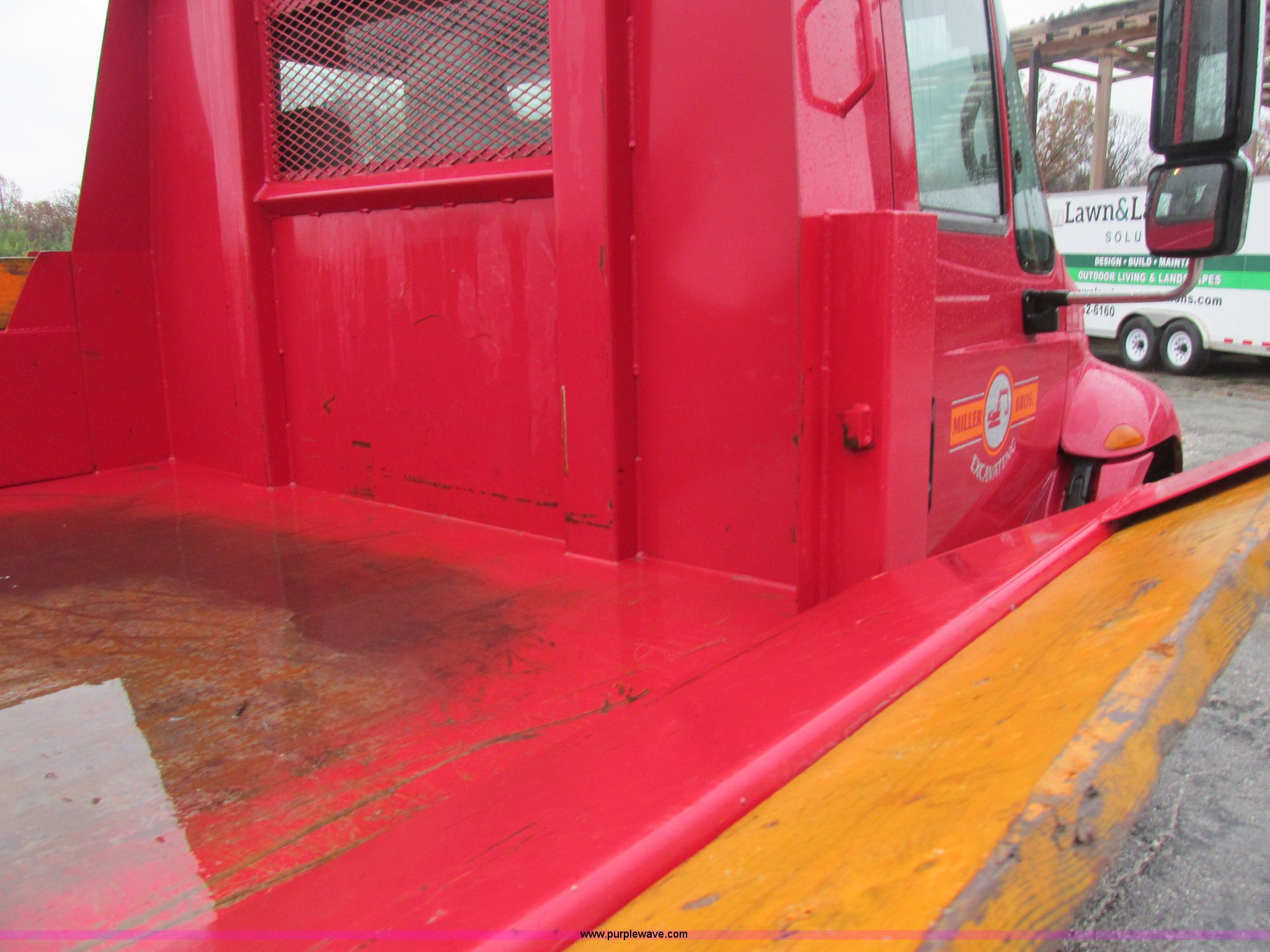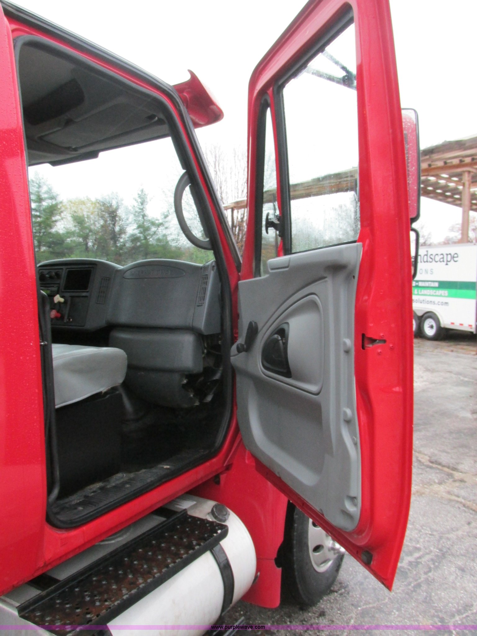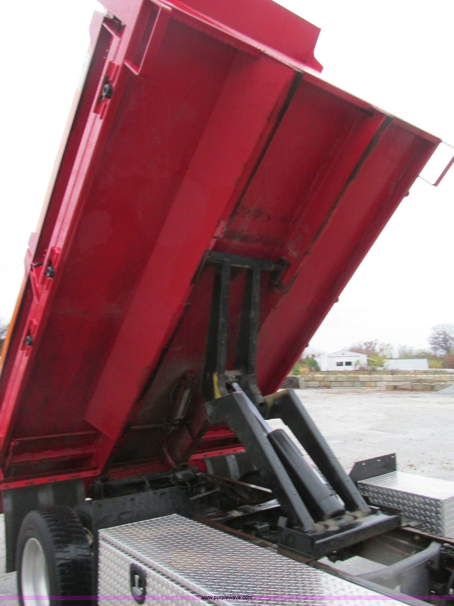 2006 International DuraStar 4300 dump truck. 196,003 miles on odometer, International DT466 7.6L L6 turbo diesel engine, Automatic transmission, Single axle, AC and heat, Tilt, Cruise, Air suspension seat, 12'4"L x 98"W dump bed Fold down sides, Air end gate, Two way tailgate, Electric over hydraulic hoist, (2) Buyers aluminum toolboxes, Dual fuel tanks, Rear pintle hitch, Air hookups, Air suspension, Air brakes, 245/70R19.5 tires, GVWR 25,500 lbs, FAWR 8,000 lbs, RAWR 17,500 lbs. Title has a lien that will be released following the close of the auction. Title distribution may be delayed up to 30 days from verification of funds. 1HTMNAAL36H315616. View equipment video. Lawn and Landscape Solutions, Inc.. 250 Elaine Dr. O'Fallon, MO 63366
