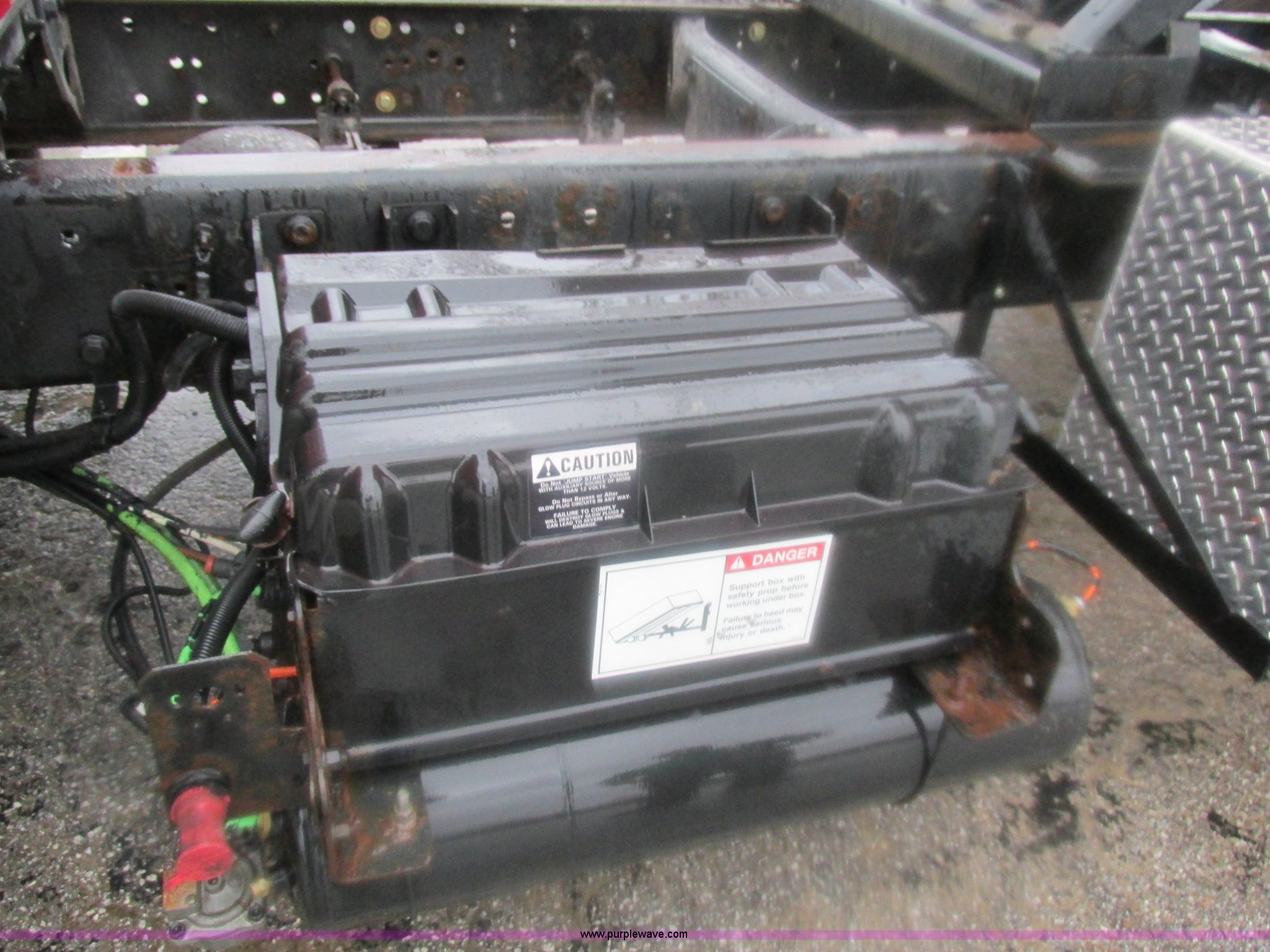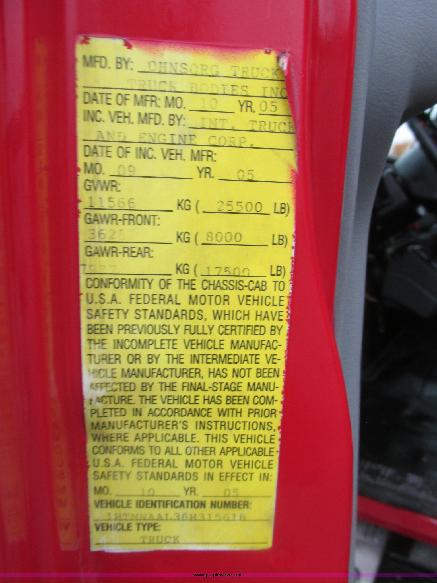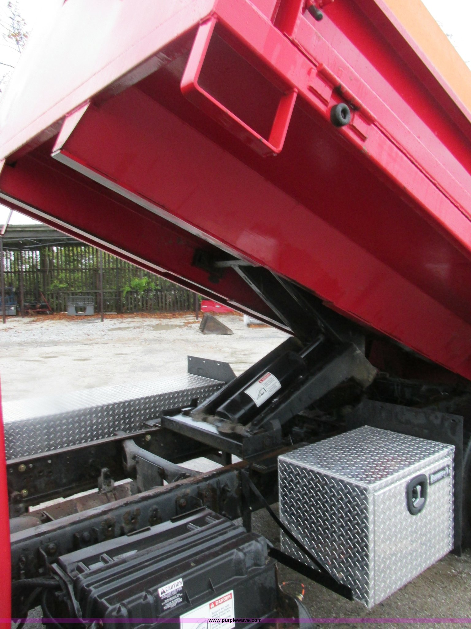 2006 International DuraStar 4300 dump truck. 196,003 miles on odometer, International DT466 7.6L L6 turbo diesel engine, Automatic transmission, Single axle, AC and heat, Tilt, Cruise, Air suspension seat, 12'4"L x 98"W dump bed Fold down sides, Air end gate, Two way tailgate, Electric over hydraulic hoist, (2) Buyers aluminum toolboxes, Dual fuel tanks, Rear pintle hitch, Air hookups, Air suspension, Air brakes, 245/70R19.5 tires, GVWR 25,500 lbs, FAWR 8,000 lbs, RAWR 17,500 lbs. Title has a lien that will be released following the close of the auction. Title distribution may be delayed up to 30 days from verification of funds. 1HTMNAAL36H315616. View equipment video. Lawn and Landscape Solutions, Inc.. 250 Elaine Dr. O'Fallon, MO 63366