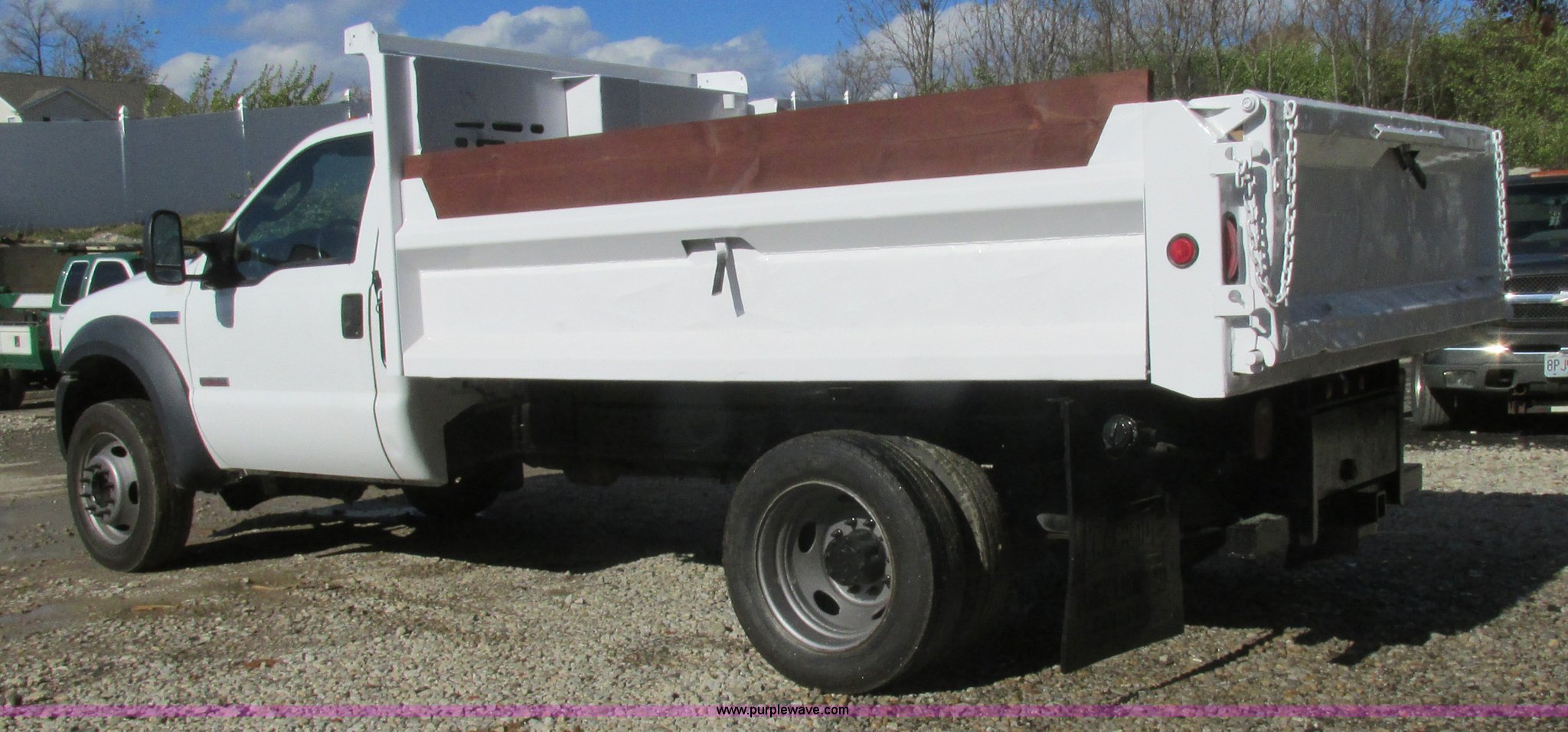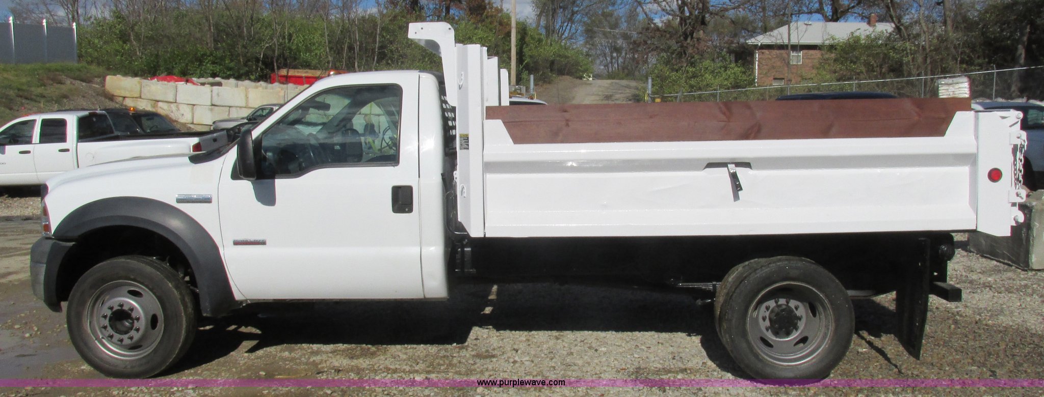 Purple Wave is selling a used Construction Dump Truck in Missouri. This item is a 2006 Ford F450 Super Duty dump truck with the following: 130,454 miles on odometer, 6.0L V8 OHV 32V turbo diesel engine, Automatic transmission, Single axle, AC and heat, AM/FM, Brake controller, Henderson 11X18/QRS steel dump bed, 11'L x 95"W, 22"H sides, 9" sideboard height, Single ram three stage hoist, Manual end gate, Two-way tailgate, Serial MK3-1842, Spring suspension, Hydraulic brakes, Goodyear 255/70R19.5 front tires, Hercules 255/70R19.5 rear tires, GVWR 16,000 lbs