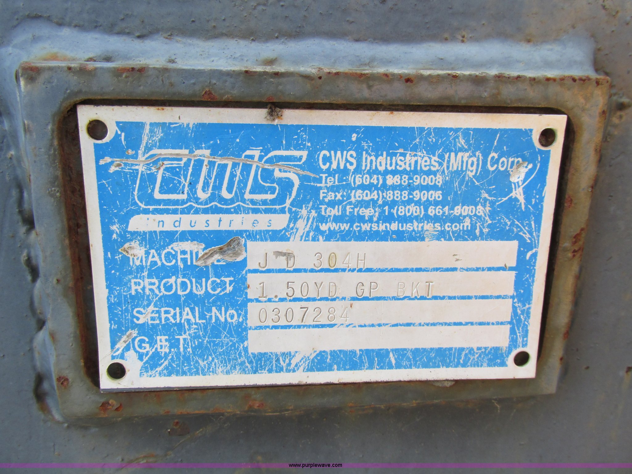 2004 John Deere 304H wheel loader. 70 hours on meter, John Deere 4TNE98-JL four cylinder diesel engine Serial CH4083D0009767, Powershift transmission 2F gears, EROPS, Heat, Suspension seat, Front and rear work lights, CWS JD304H 75""W grapple bucket 1.50 cu. yd. capacity, Serial 0307284, Front auxiliary hydraulics, 12,044 lbs. base operating weight, Serial LU304HX689597. View equipment video. Lawn Systems Inc.. 2260 Cassens Drive. Fenton, MO 63026