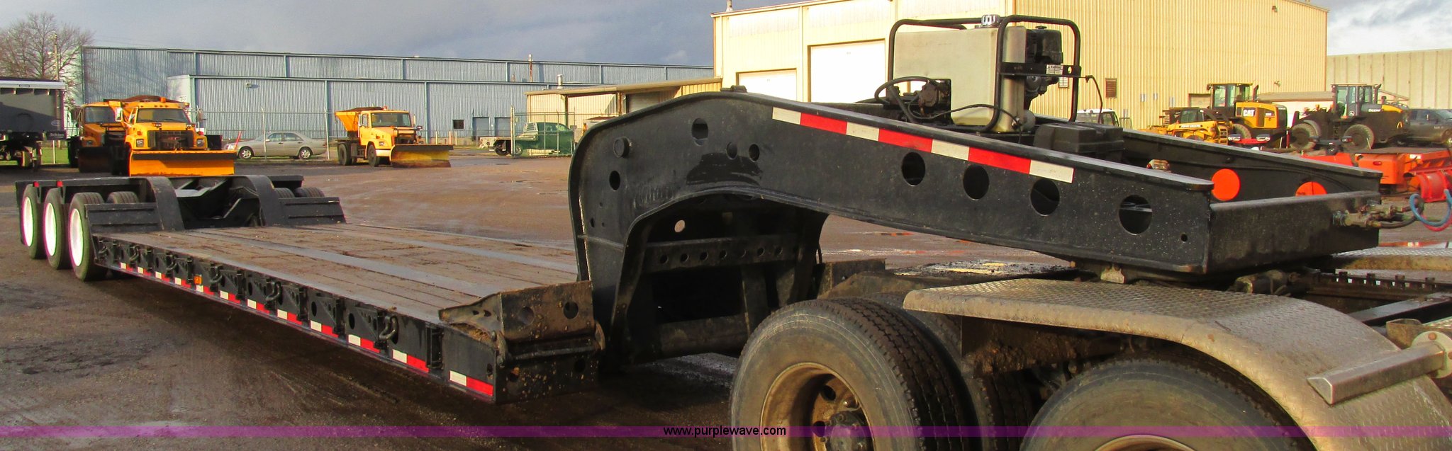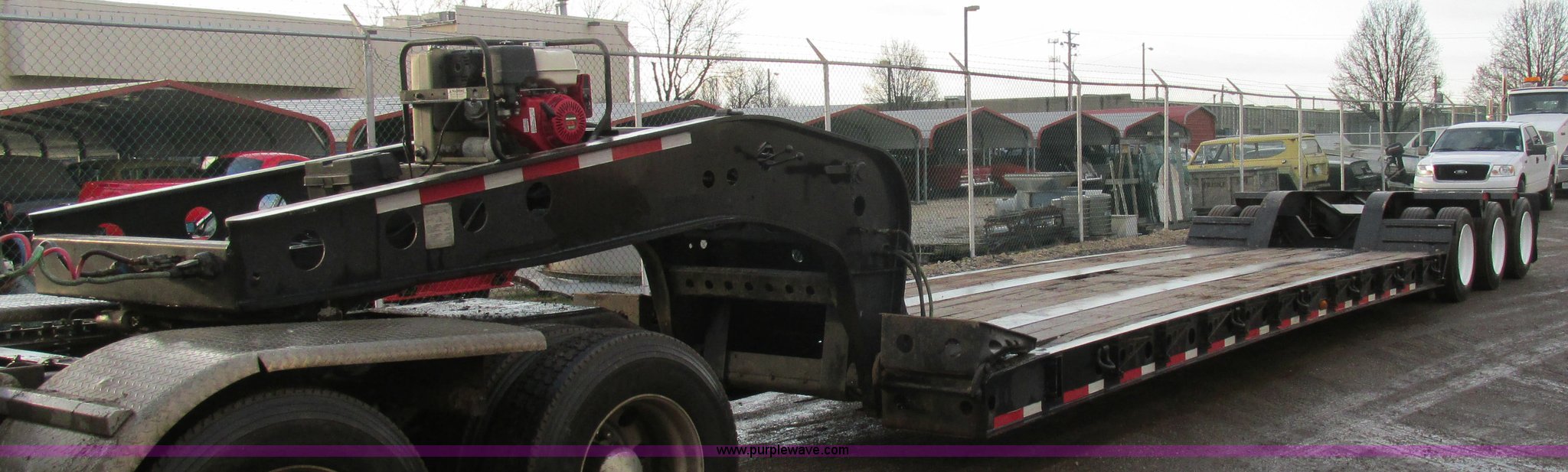 Purple Wave is selling a used Equip. Trailer in Missouri. This item is a 2000 Fontaine LP50NCP lowboy equipment trailer with the following: 25'2"L x 102"W well deck, 14'1"L x 102"W rear deck, Bucket tray and bolsters, 12" swing-out boards, Wood deck, Detachable neck, Self-contained hydraulics, D-ring tie downs, Recently replaced Honda GX340 gas engine, Electric start, Manual hydraulic controls, Fifth wheel plate, Air suspension, Air brakes, Triple axle, Steel wheels, 255/70R22.5 tires, GVWR 100,000 lbs