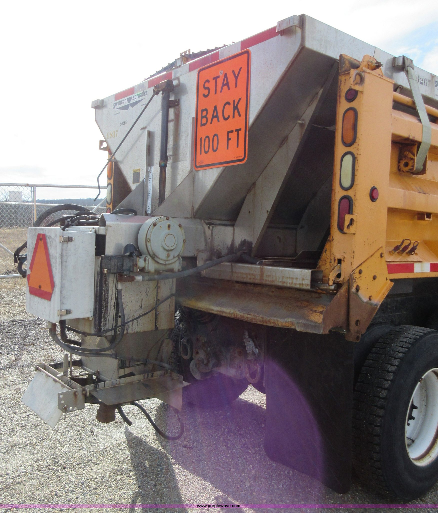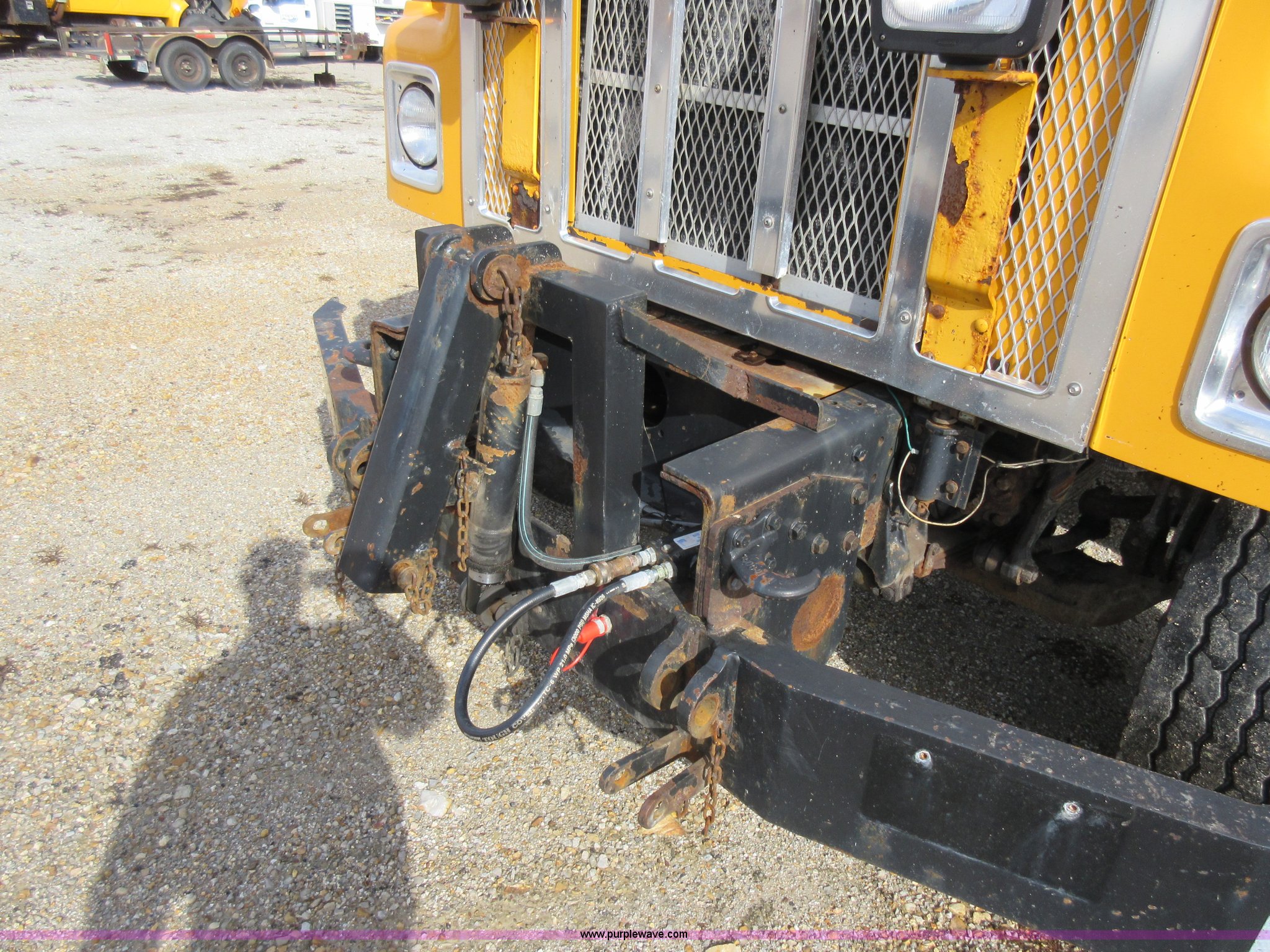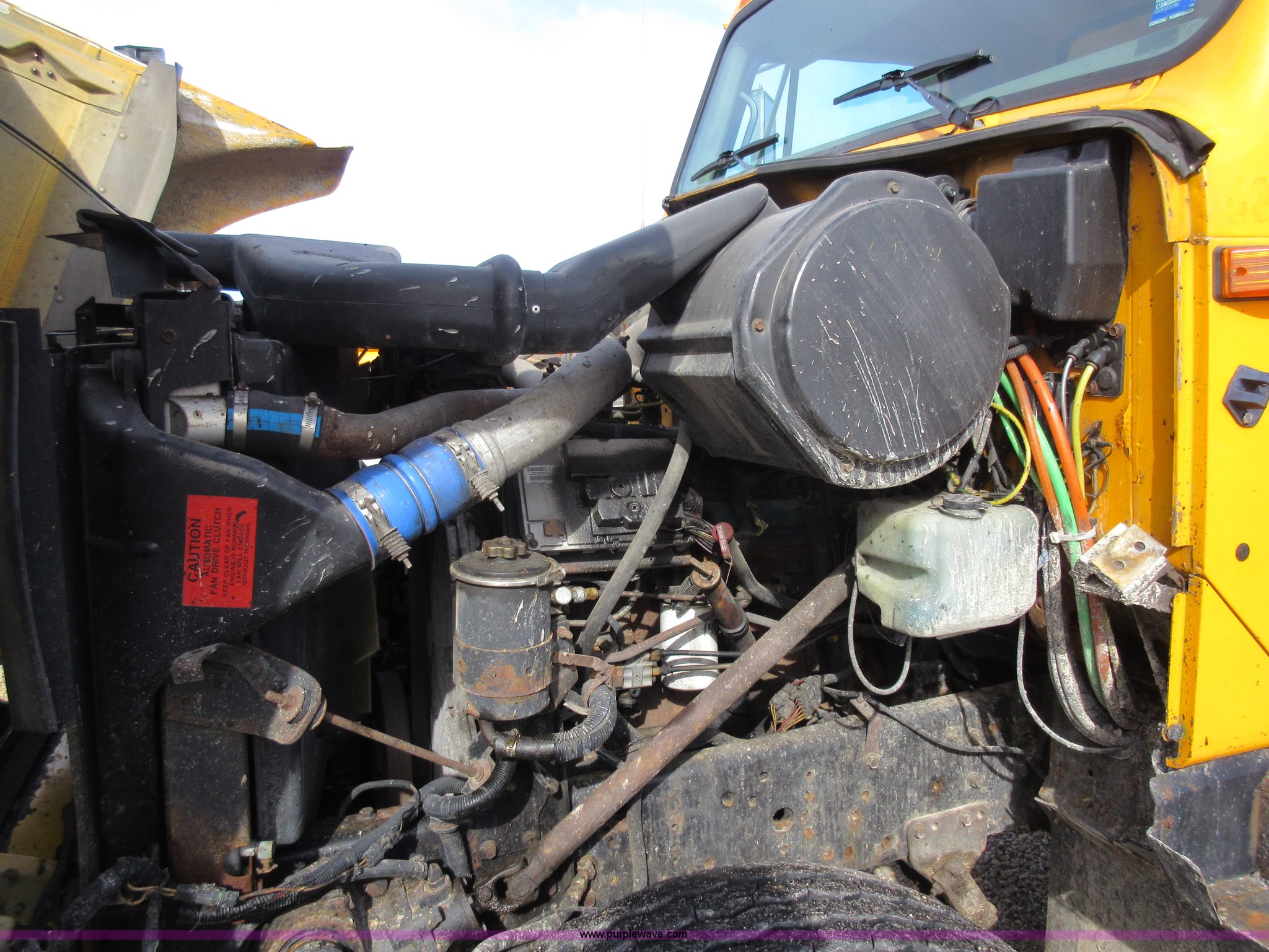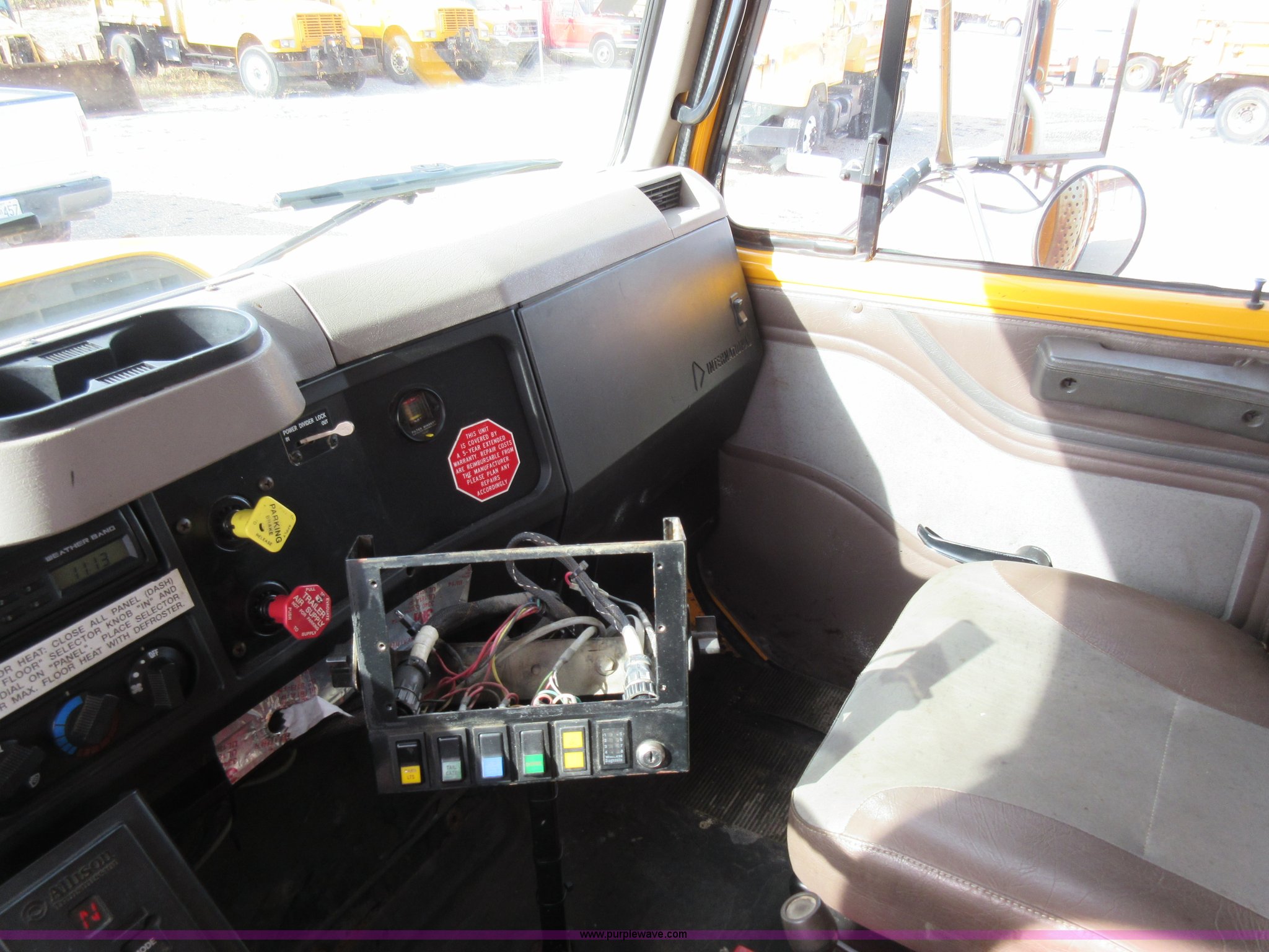 Purple Wave is selling a used Construction Dump Truck in Missouri. This item is a 2002 International F2554 dump truck with the following: 138,847 miles on odometer, 7,597 hours on meter, International DT530 8.7L L6 diesel engine, Automatic transmission, Heat, Cruise, AM/FM, Power windows, Heated mirrors, Air suspension seat, PTO, 16'L x 8'W dump bed, 36"H side boards, Western snow plow, Swensen stainless steel spreader, Hydraulic driven, Pintle hitch, Spring suspension, Air brakes, 216" wheelbase, 11R22.5 front tires, 315/80R22.5 rear tires, Hole in cab floor, CB is not included, Unit# 6827