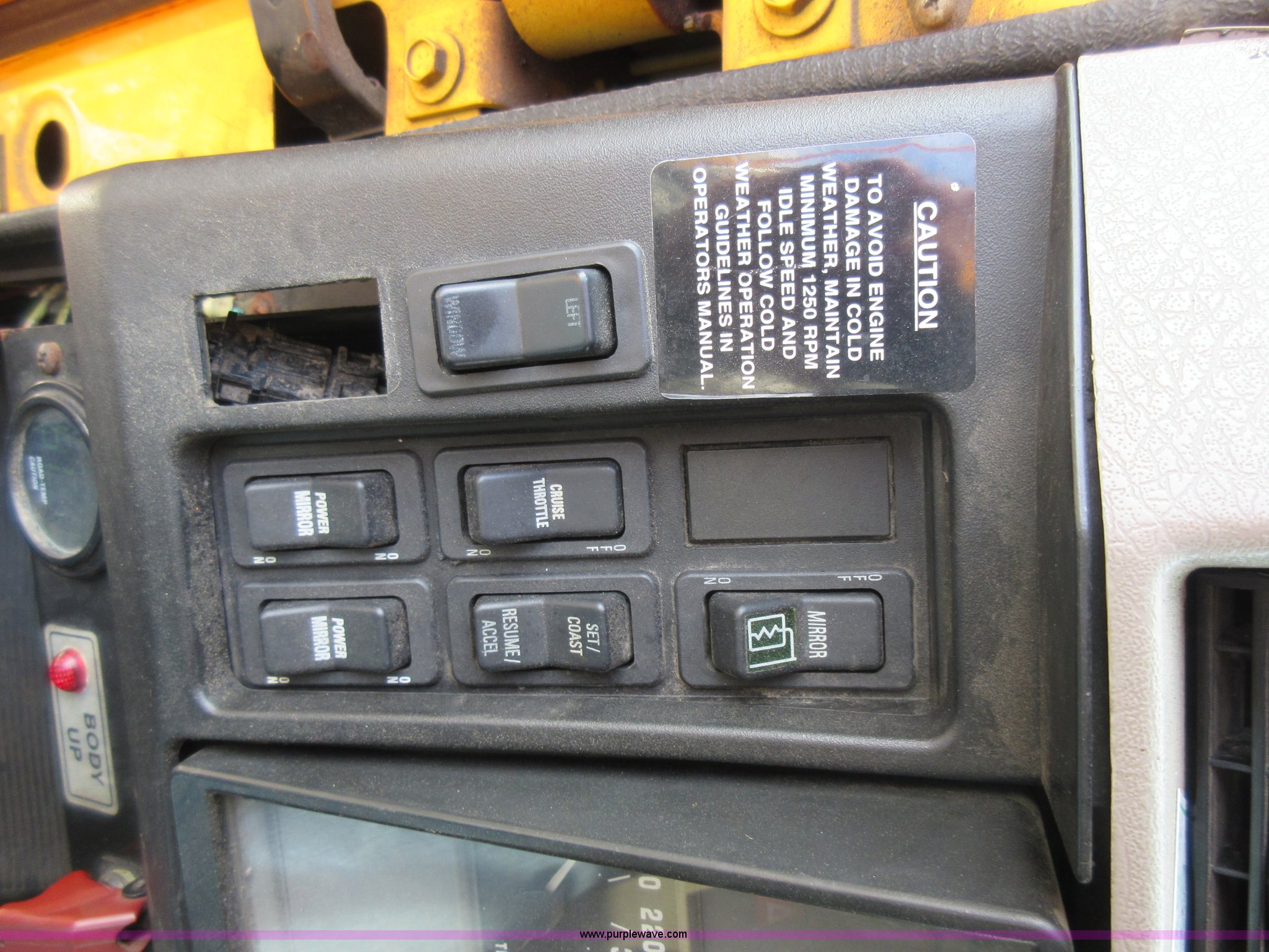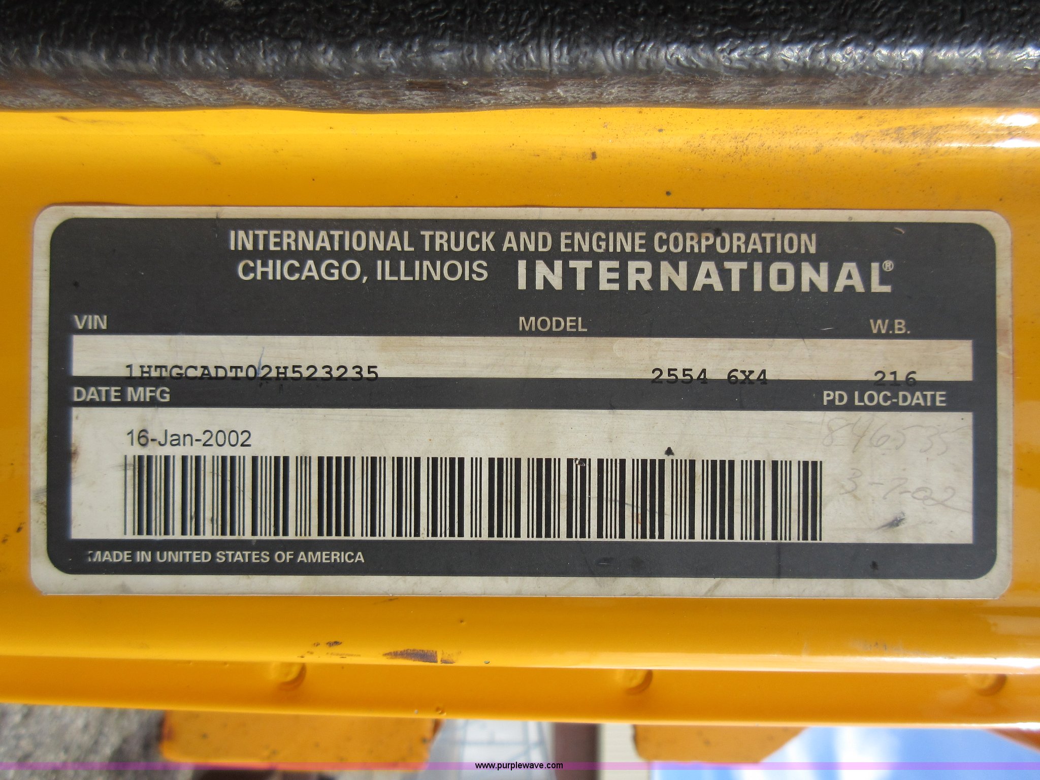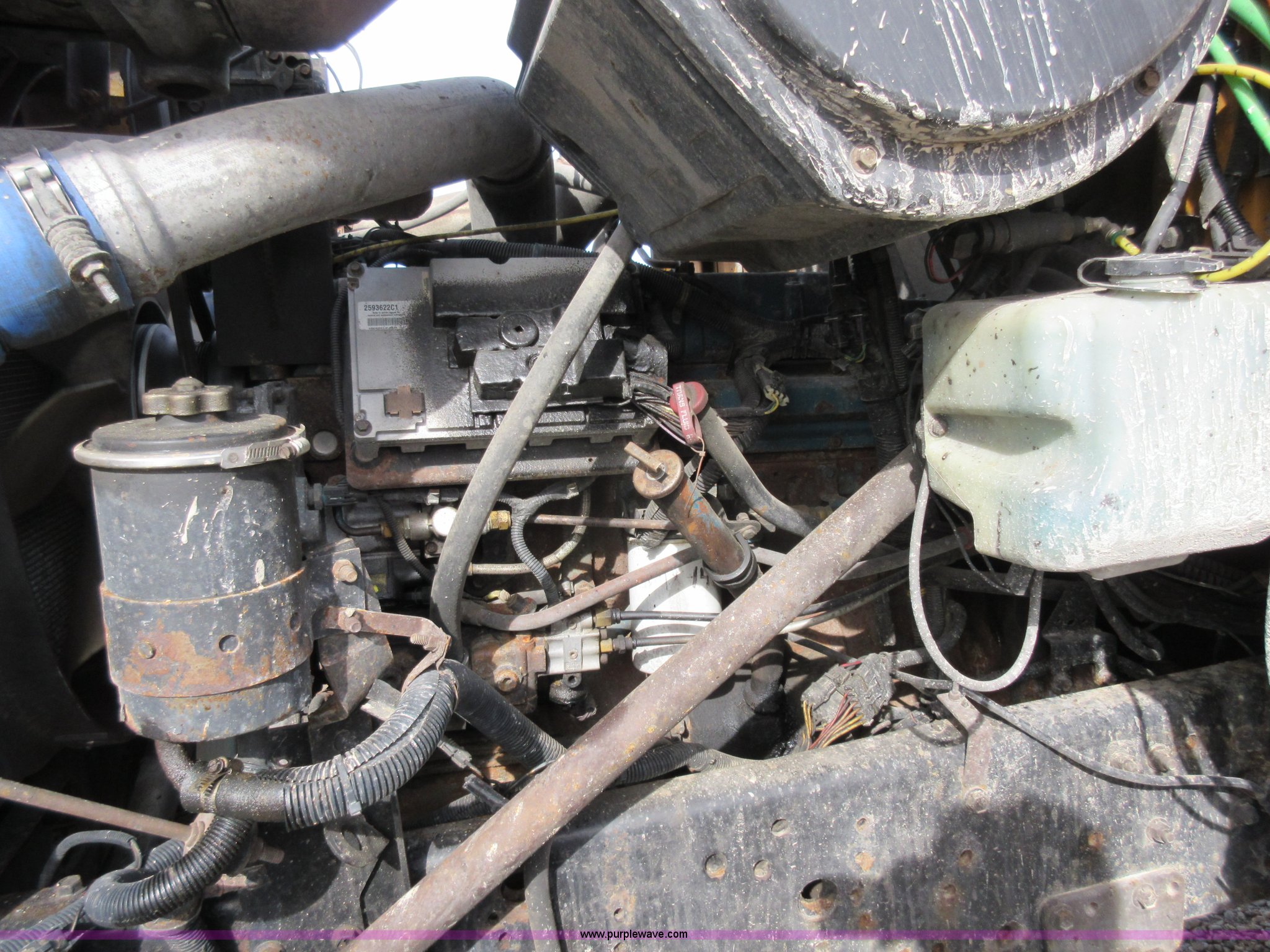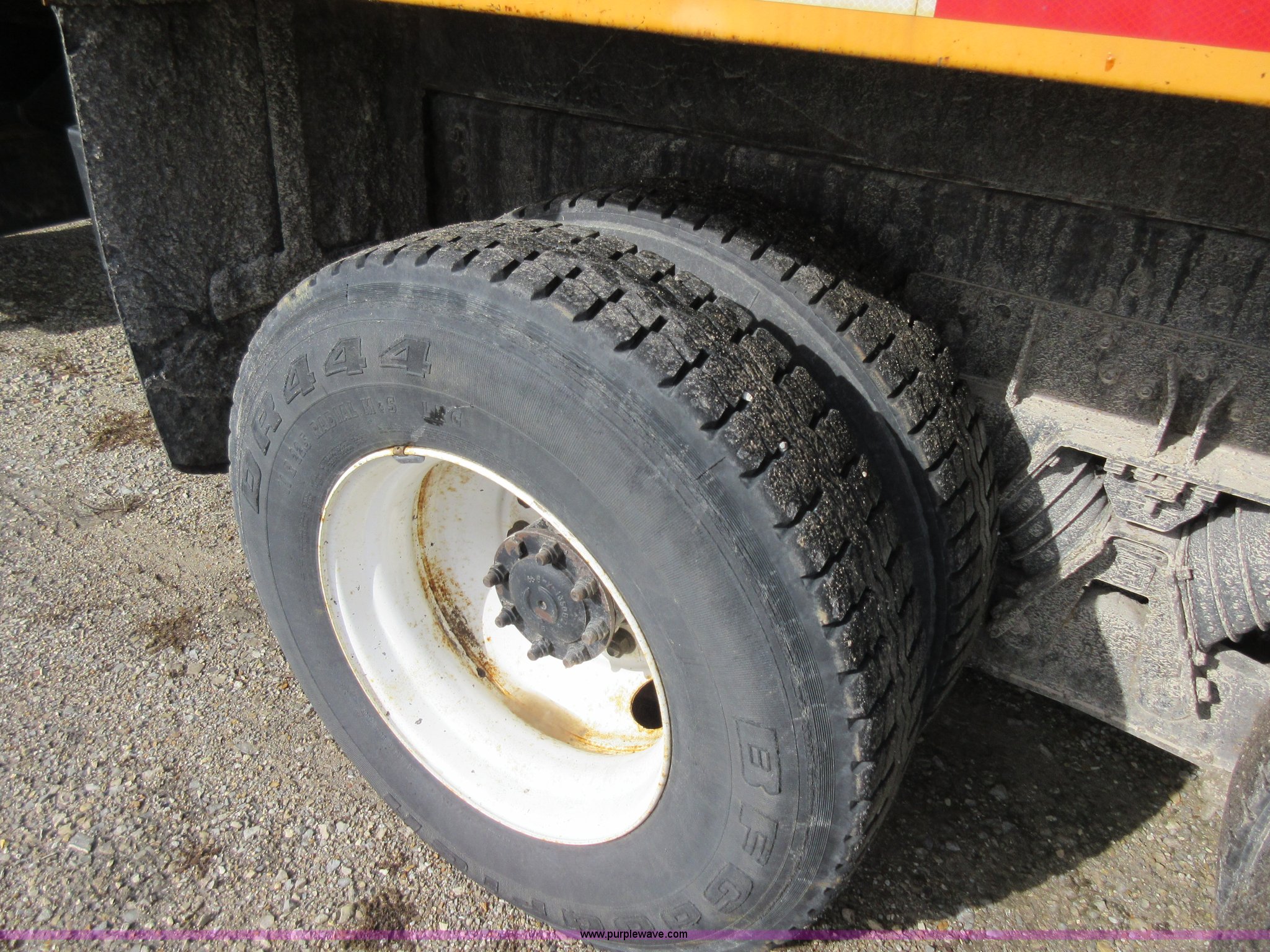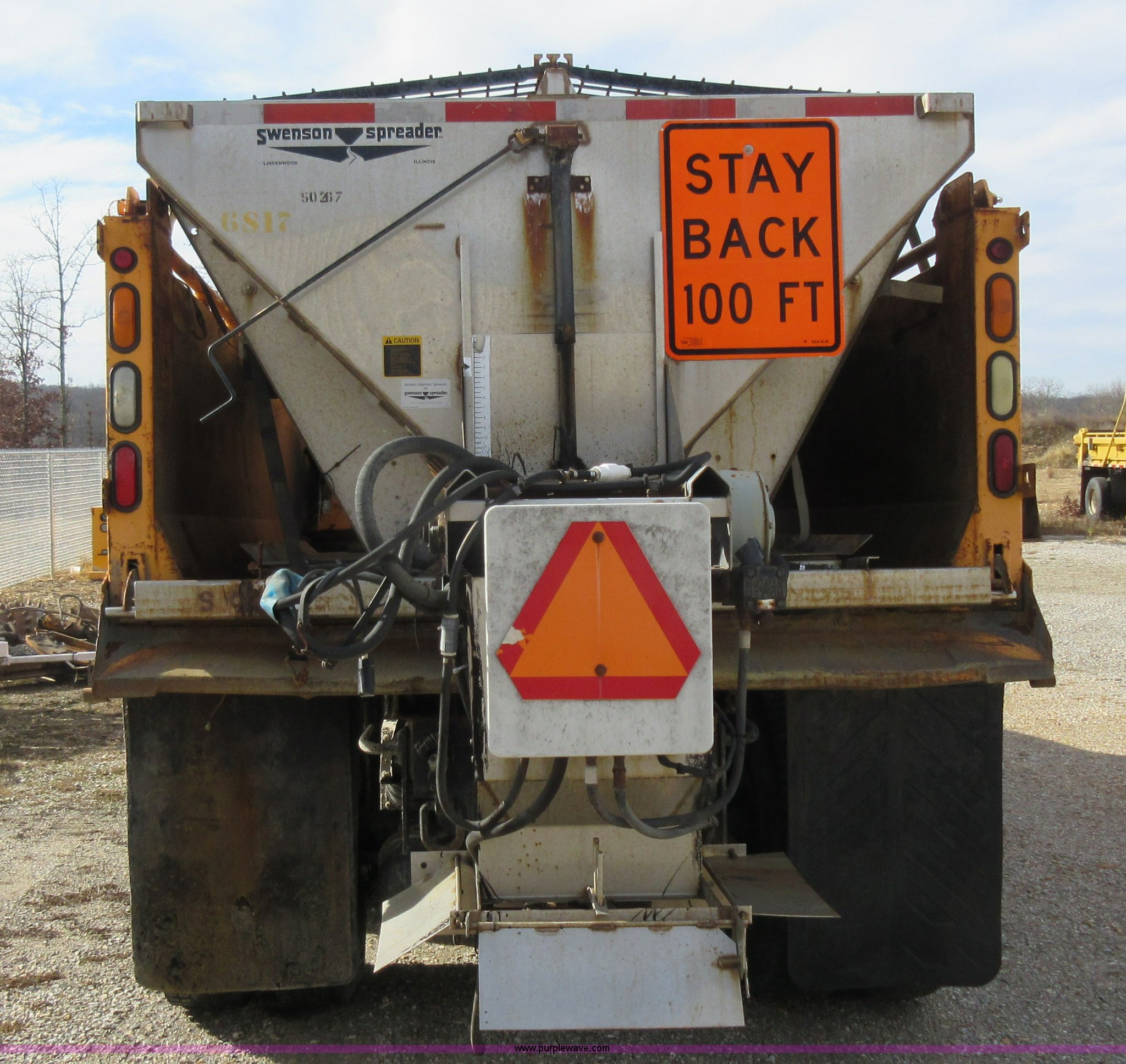 Purple Wave is selling a used Construction Dump Truck in Missouri. This item is a 2002 International F2554 dump truck with the following: 138,847 miles on odometer, 7,597 hours on meter, International DT530 8.7L L6 diesel engine, Automatic transmission, Heat, Cruise, AM/FM, Power windows, Heated mirrors, Air suspension seat, PTO, 16'L x 8'W dump bed, 36"H side boards, Western snow plow, Swensen stainless steel spreader, Hydraulic driven, Pintle hitch, Spring suspension, Air brakes, 216" wheelbase, 11R22.5 front tires, 315/80R22.5 rear tires, Hole in cab floor, CB is not included, Unit# 6827