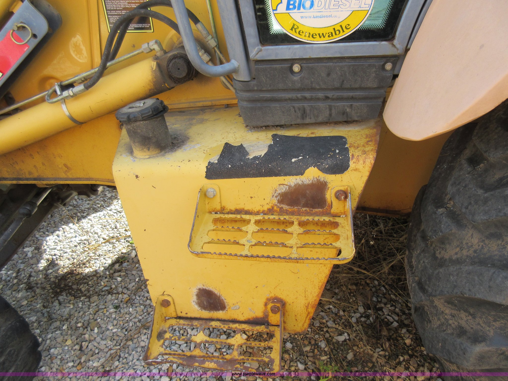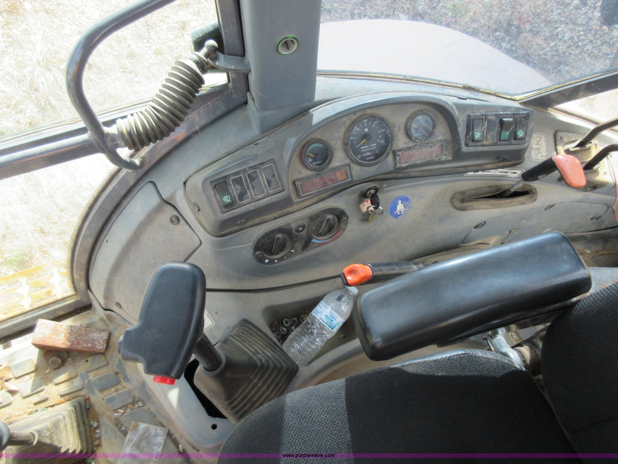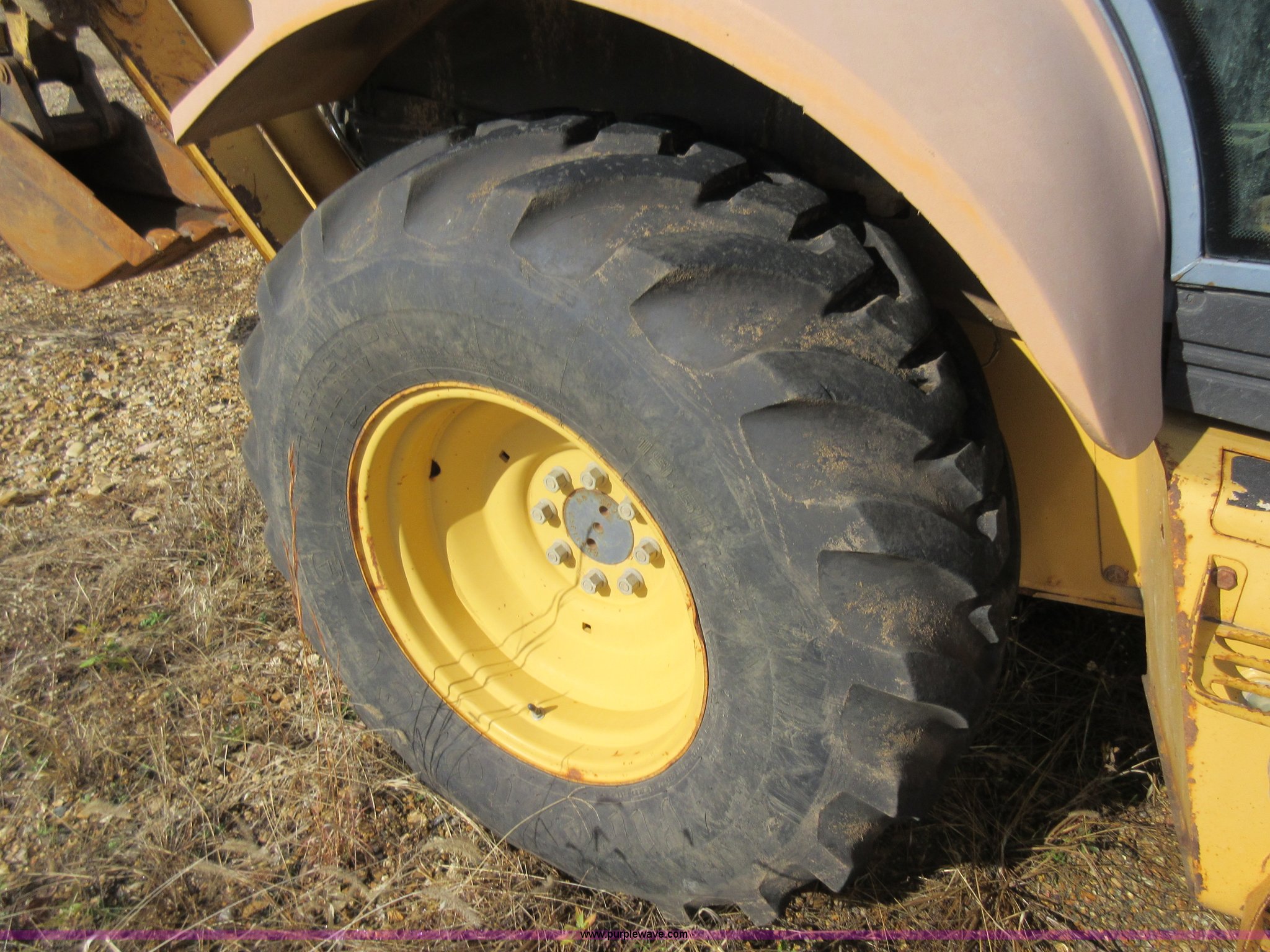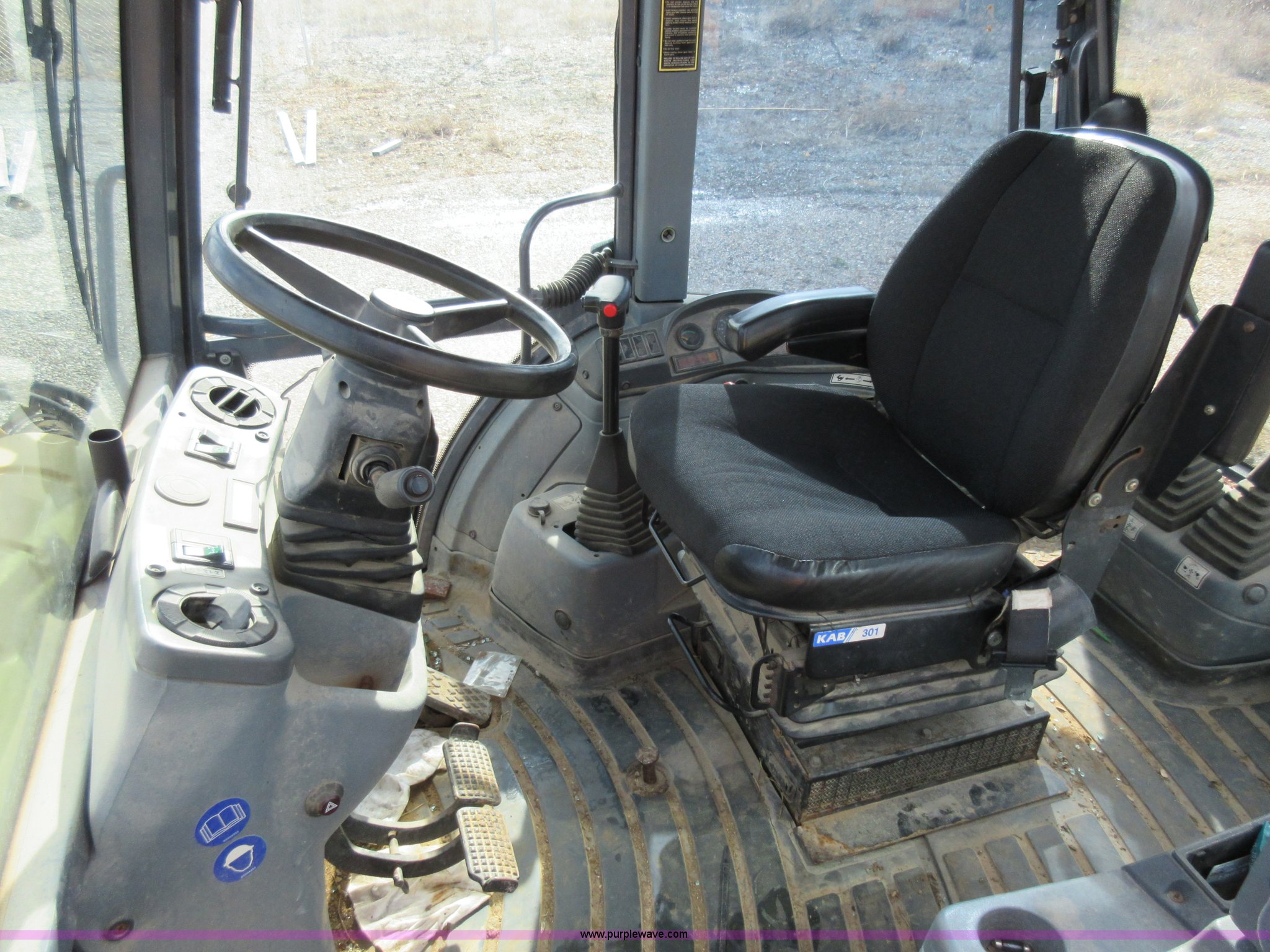 Purple Wave is selling a used Tractor Loader Backhoe in Missouri. This item is a 1999 New Holland 675E backhoe with the following: 3,904 hours on meter, Four cylinder diesel engine, Four speed transmission, Four wheel drive, EROPS, Heat, Joystick loader controls, Front and rear work lights, 88"W loader bucket, 17"W backhoe bucket, (4) teeth, 44"L x 3"W x 1.5"thick pallet forks, 12-16.5 front tires, 19.5-24 rear tires, 14,341 lbs. base operating weight, Flat tires, Serial 031021051, Unit# 05756