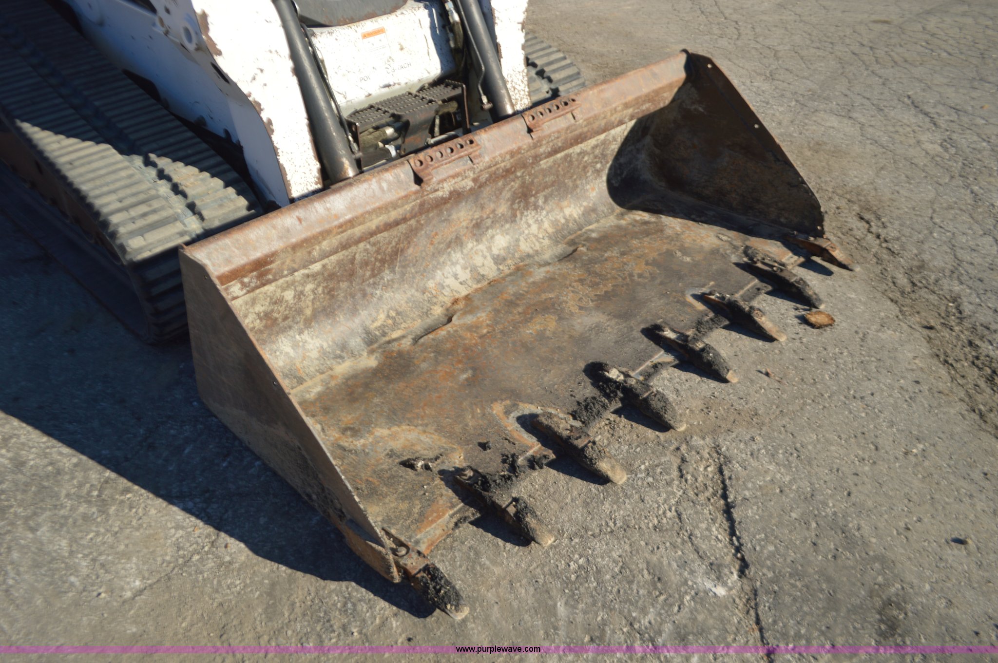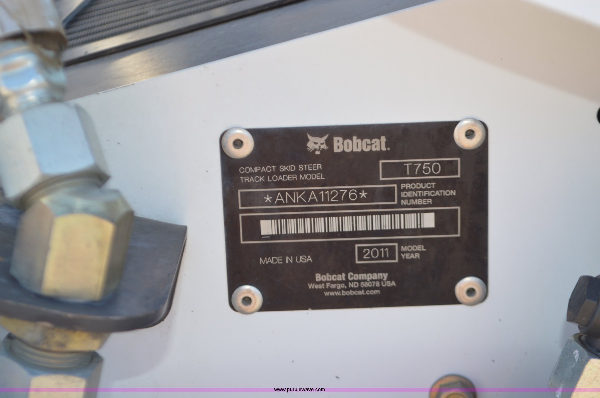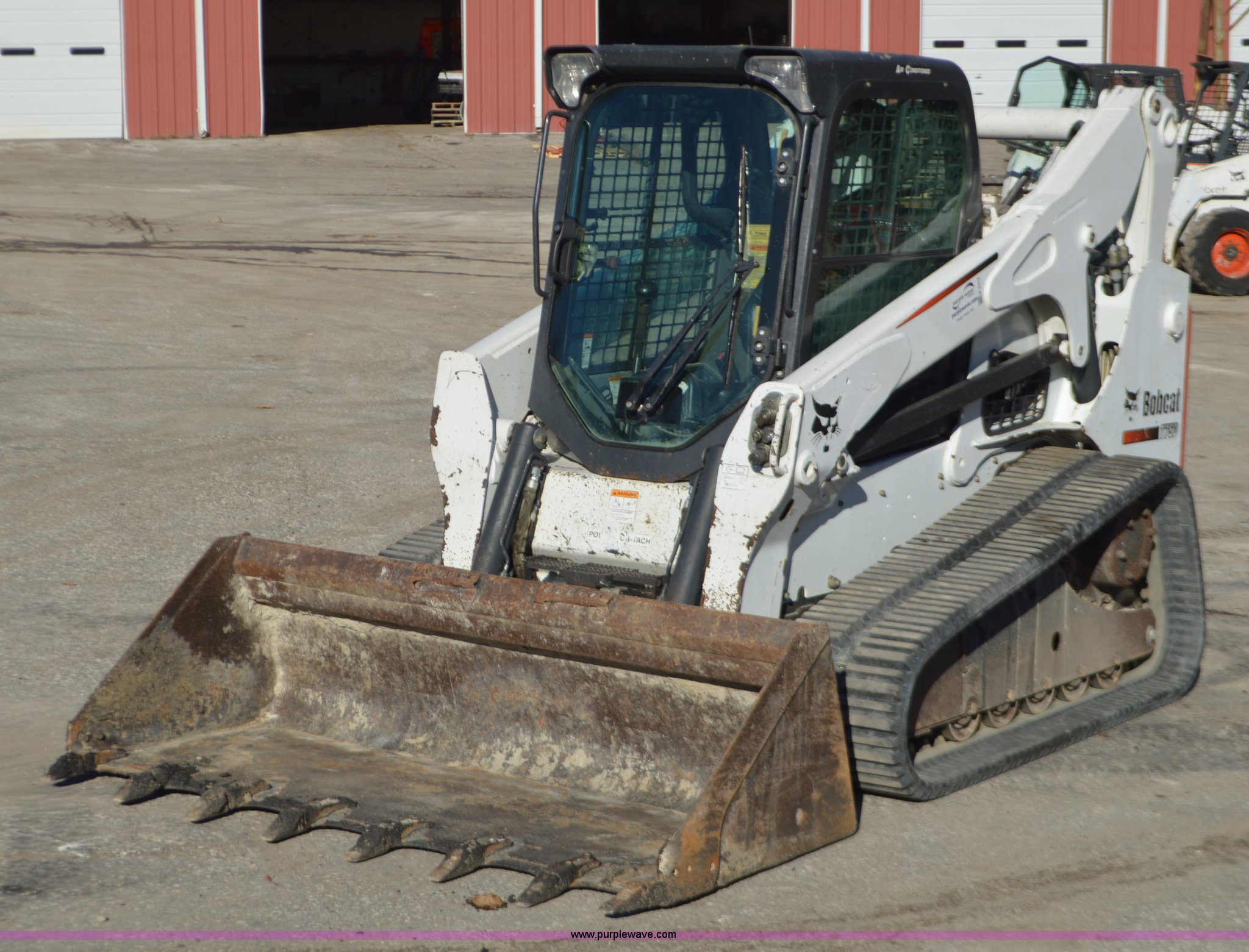 Purple Wave is selling a used Tracked Skid Steer Loader in Missouri. This item is a 2011 Bobcat T750 skid steer with the following: 3,946 hours on meter, Four cylinder diesel engine, Hydrostatic transmission, Enclosed cab, AC and heat, AM/FM, Wipers, Hand and foot controls, Front and rear work lights, 80"W bucket, Bolt-on teeth, Hydraulic quick coupler, Auxiliary hydraulics, Auxiliary electrical outlet, 17"W tracks, Updated cooling fan, 10,327 lbs. base operating weight, Parts manual, Serial ANKA11276