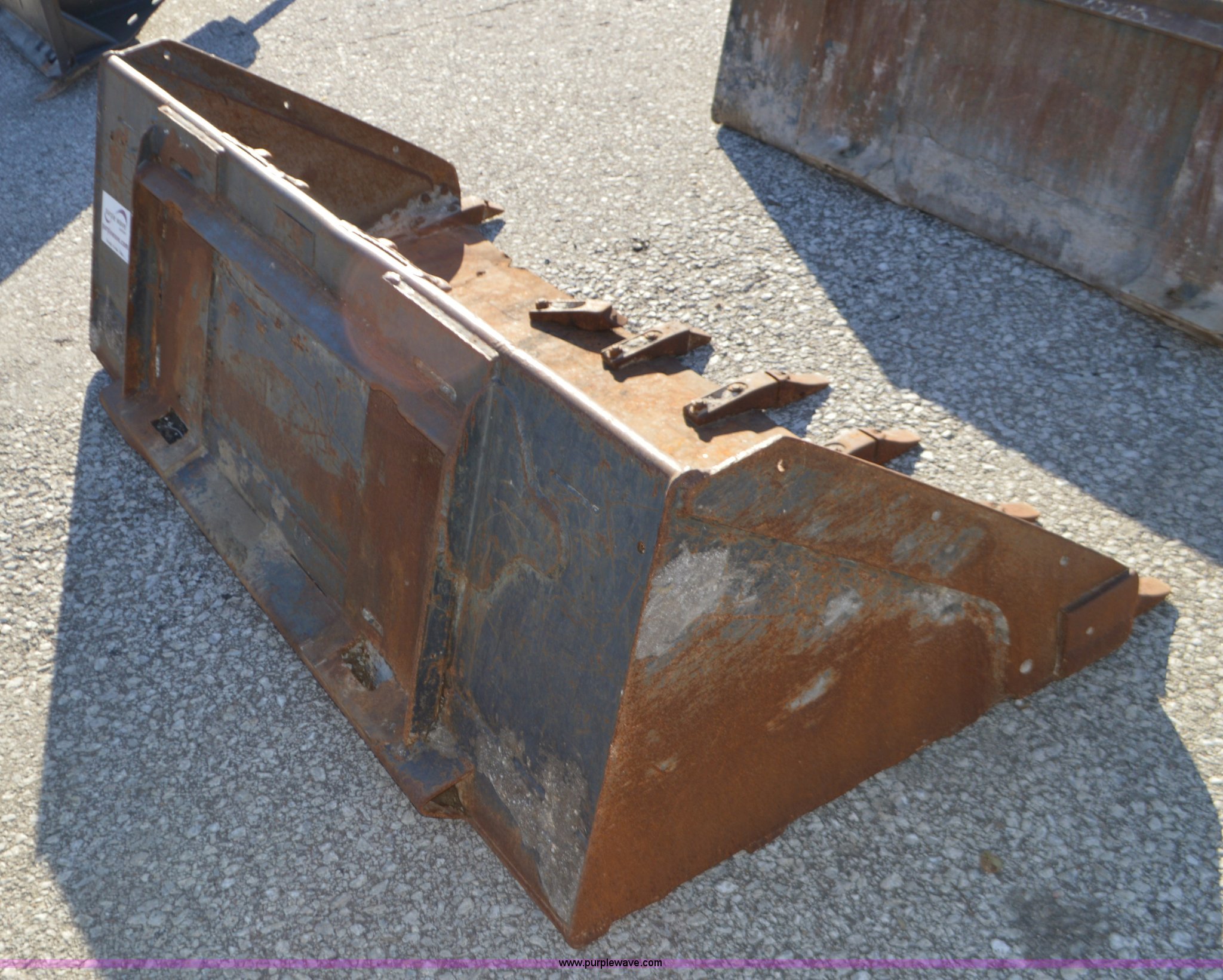 Purple Wave is selling a used Skid Steer Attach. in Missouri. This item is a Skid steer bucket with the following: 74"W, Teeth, Some missing
