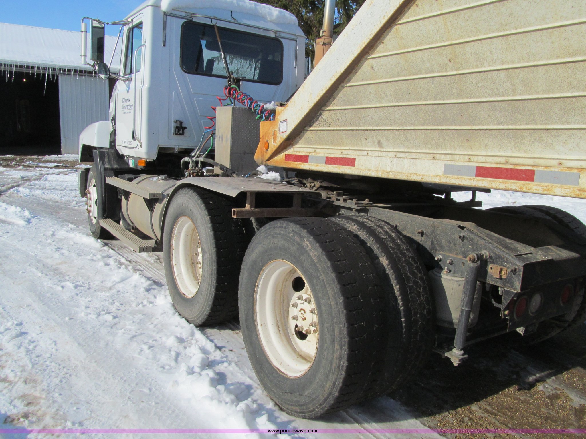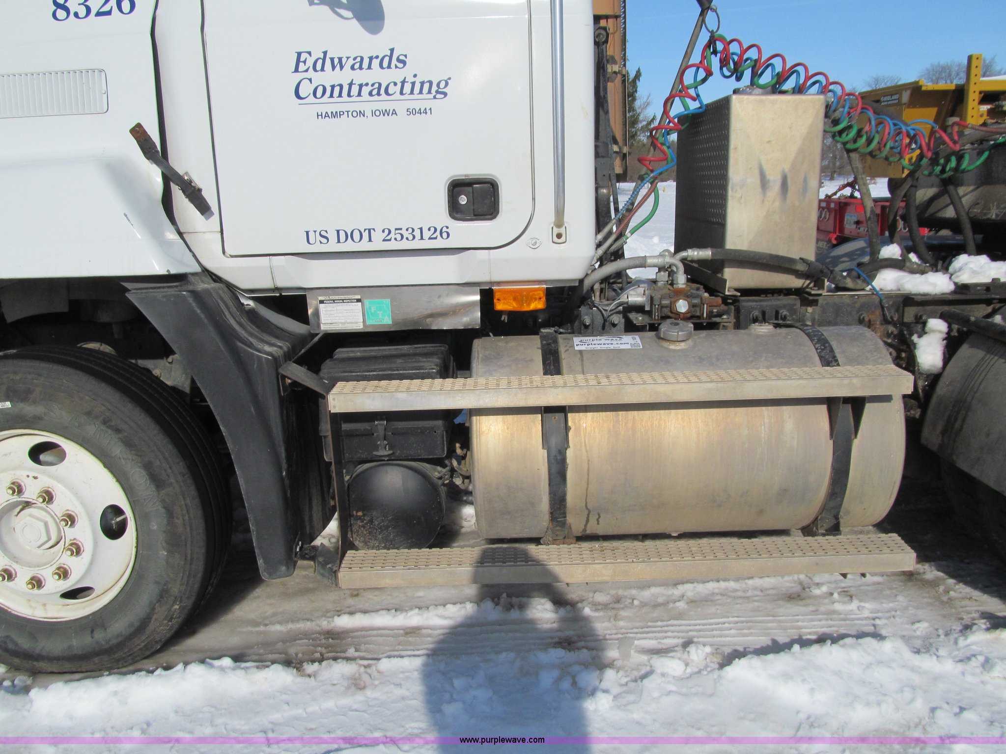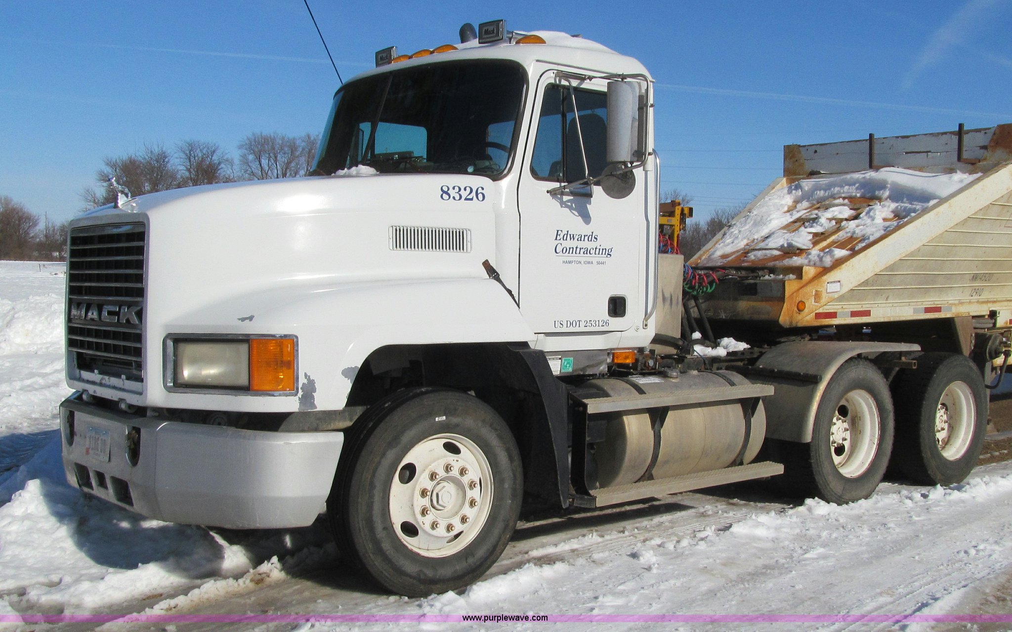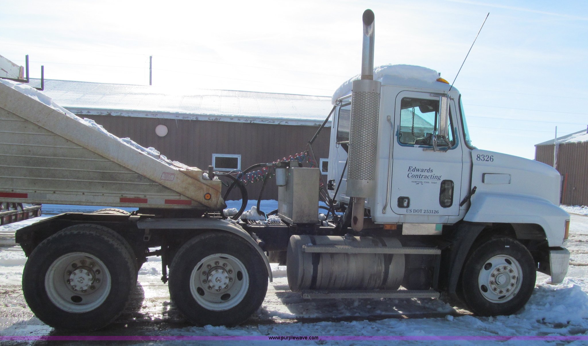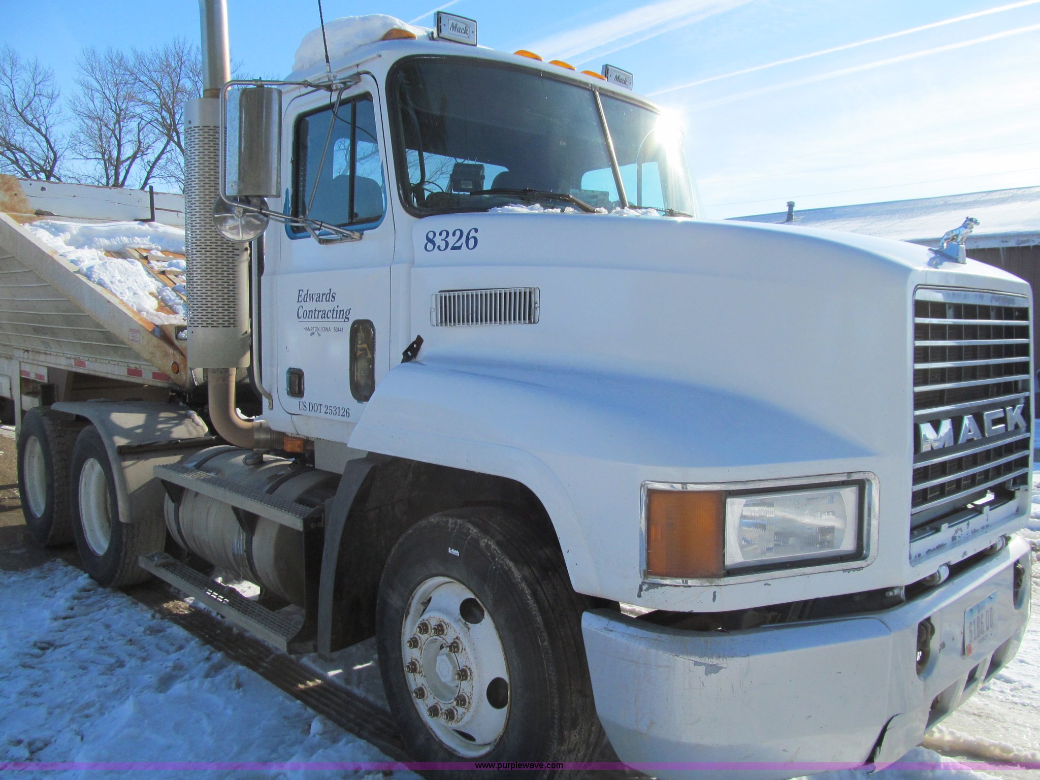 Purple Wave is selling a used Truck Tractor in Iowa. This item is a 1998 Mack CH613 semi truck with the following: 955,348 miles on odometer, Miles may vary, still in use, Mack E7 12.0L L6 turbo diesel engine, 300 HP, Rockwell 10 speed manual transmission, Tandem axle, Inter-axle differential lock, Heat, Tilt, Telescoping steering wheel, Cruise, AM/FM/cassette, Passenger power window, Passenger power mirror, Air suspension seat, Spotlight, Dump valves, PTO, Wet kit, Front tow hooks, Single rear exhaust stack, Aluminum deck plate, Air operated sliding fifth wheel plate, Dual fuel tanks, Aluminum half fenders, Air suspension, Air brakes, 160" wheelbase, 295/75R22.5 front tires, 295/75R22.5 rear tires, CB not included, Contents not included, Engine replaced with 500,000 miles engine approx. 2,000 miles ago, Unit# 8326