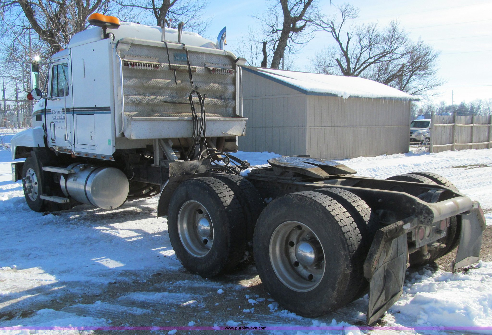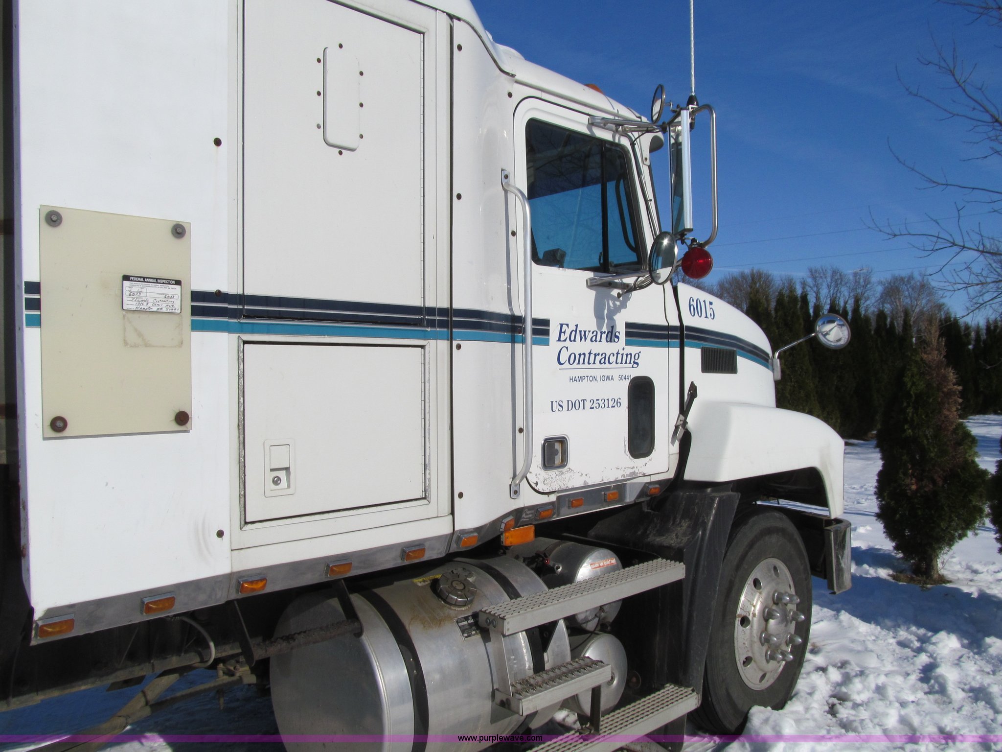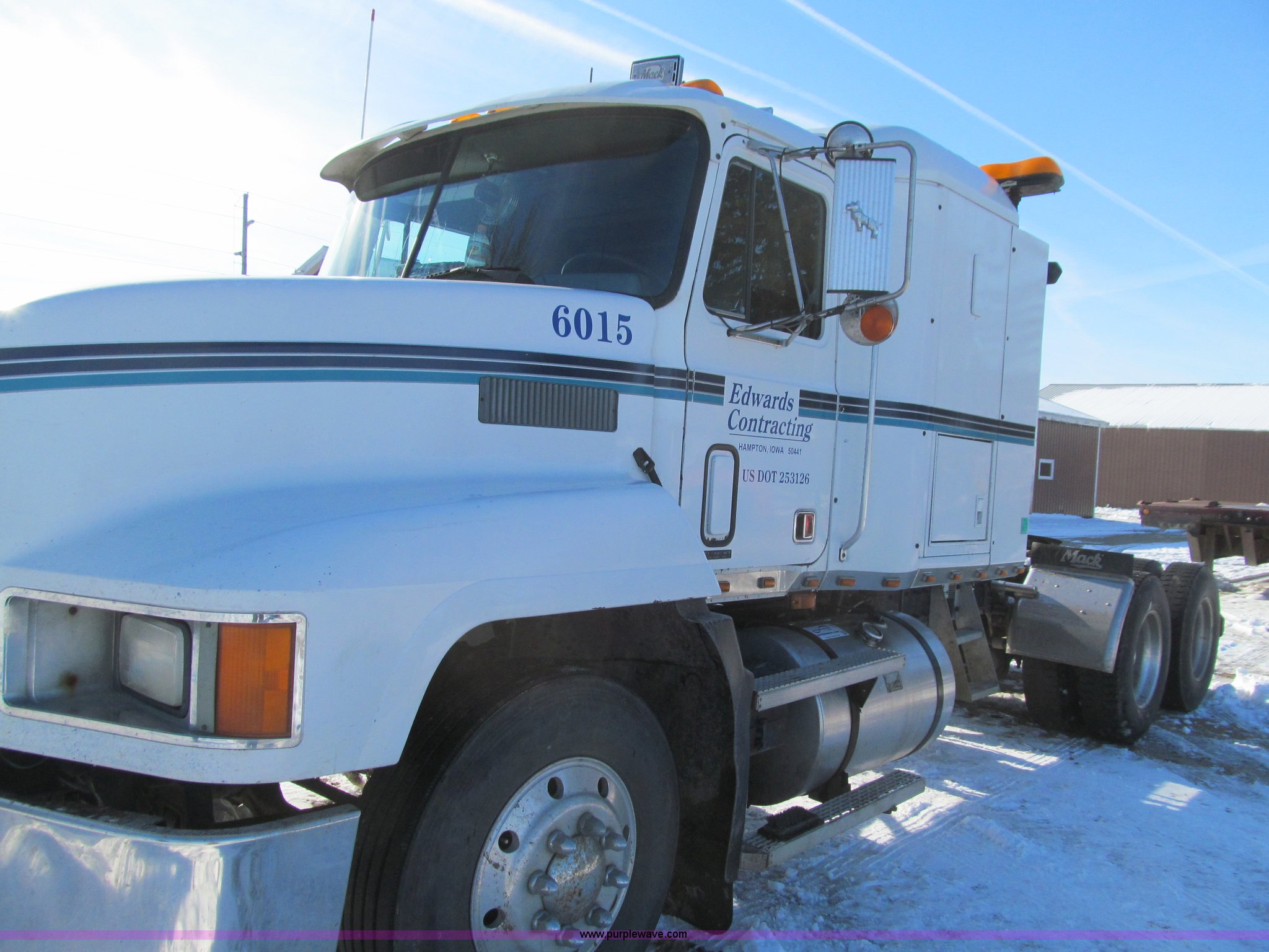 Purple Wave is selling a used Truck Tractor in Iowa. This item is a 1992 Mack CH613 semi truck with the following: 121,687 miles on odometer, 36,801 hours on meter, Miles and hours may vary, still in use, Mack E7 12.0L L6 turbo diesel engine, 400 HP, Nine speed manual transmission, Tandem axle, Inter-axle differential lock, AC and heat, Tilt, Telescoping steering wheel, Cruise, AM/FM/CD, Passenger power window, Passenger daylight door, Air suspension seat, Spotlight, Amber beacon, Amber strobe light, 42" sleeper, Singe bed, Dump valves, Block heater, PTO, Wet kit, Visor, Front tow hooks, Single rear exhaust stack, Aluminum headache rack, Chain hanger, Storage, Steel deck plate, Air operated sliding fifth wheel plate, Dual fuel tanks, Stainless steel quarter fenders, Mud flaps, Air suspension, Air brakes, Engine brake, 214" wheelbase, Aluminum 10 hole budd wheels, 11R22.5 tires, CB not included, Contents not included, Unit# 6015
