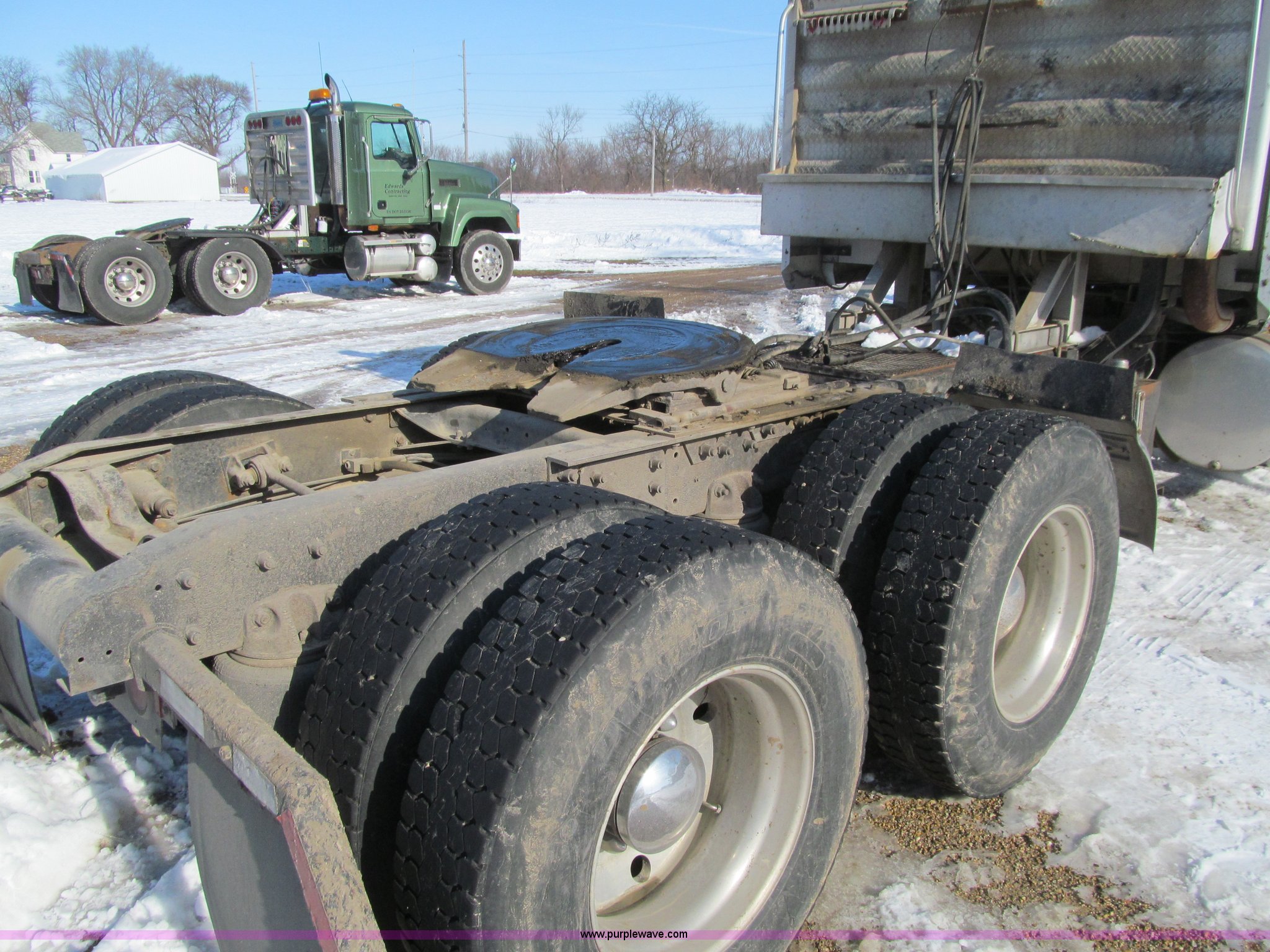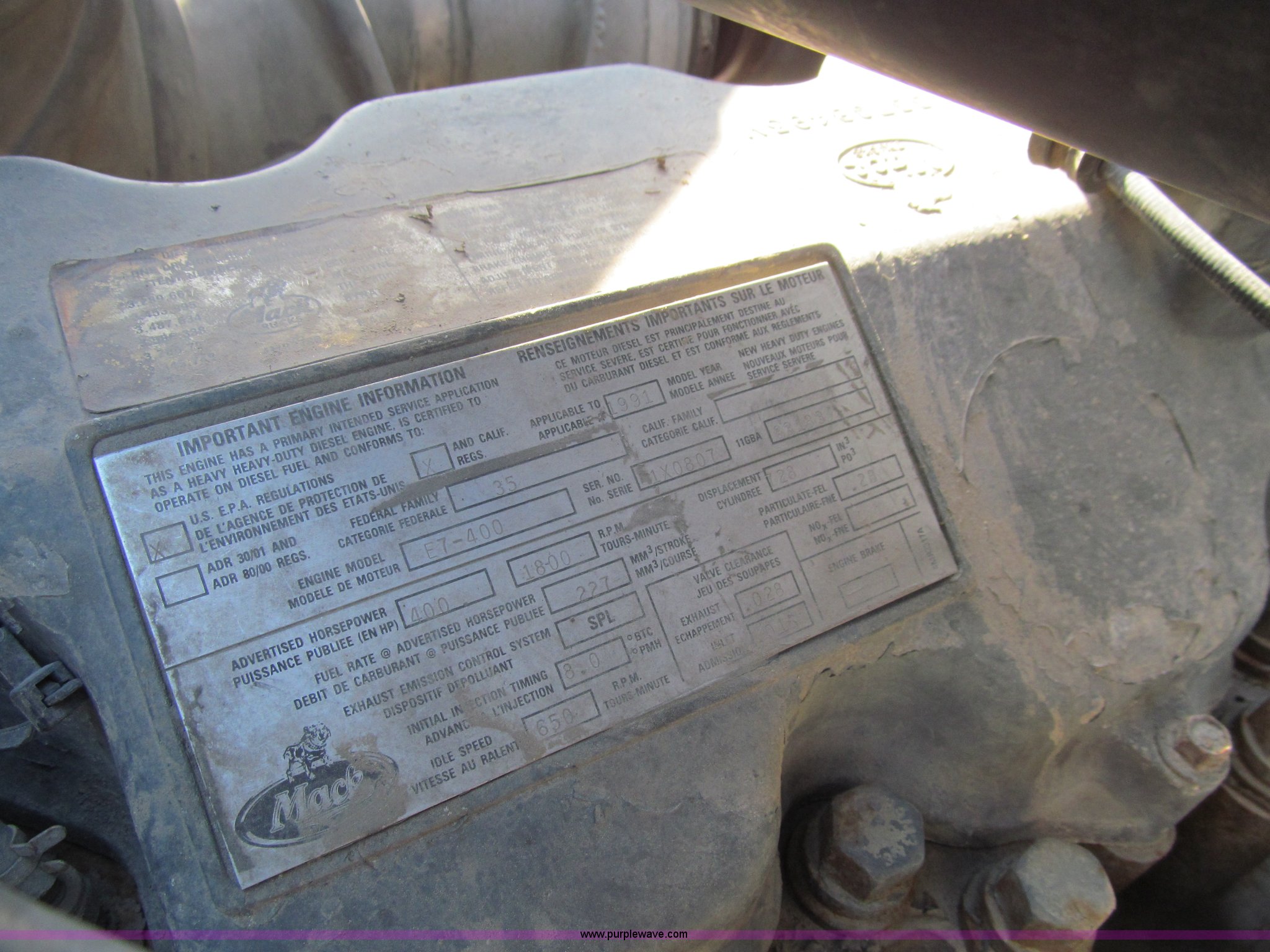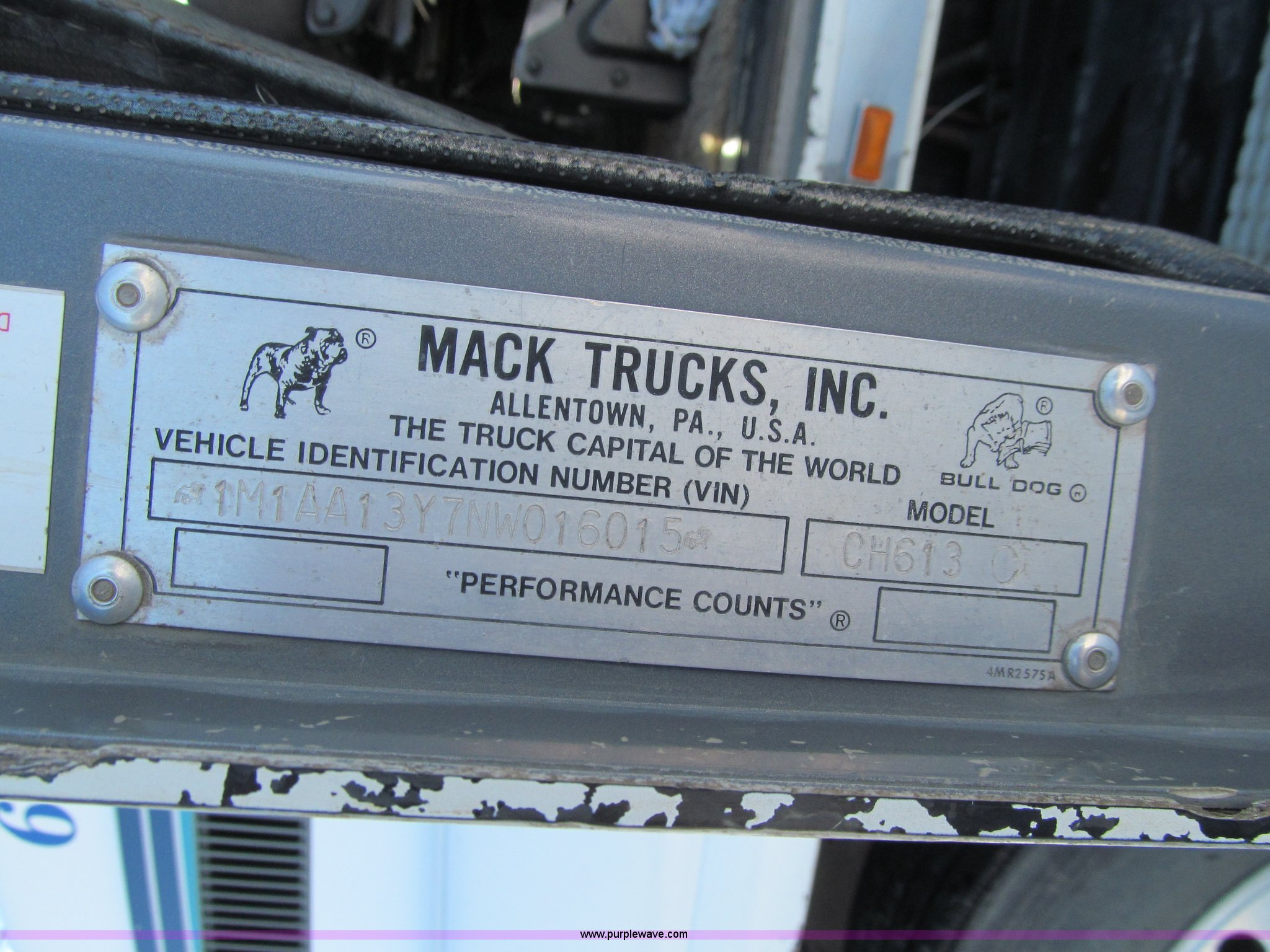 Purple Wave is selling a used Truck Tractor in Iowa. This item is a 1992 Mack CH613 semi truck with the following: 121,687 miles on odometer, 36,801 hours on meter, Miles and hours may vary, still in use, Mack E7 12.0L L6 turbo diesel engine, 400 HP, Nine speed manual transmission, Tandem axle, Inter-axle differential lock, AC and heat, Tilt, Telescoping steering wheel, Cruise, AM/FM/CD, Passenger power window, Passenger daylight door, Air suspension seat, Spotlight, Amber beacon, Amber strobe light, 42" sleeper, Singe bed, Dump valves, Block heater, PTO, Wet kit, Visor, Front tow hooks, Single rear exhaust stack, Aluminum headache rack, Chain hanger, Storage, Steel deck plate, Air operated sliding fifth wheel plate, Dual fuel tanks, Stainless steel quarter fenders, Mud flaps, Air suspension, Air brakes, Engine brake, 214" wheelbase, Aluminum 10 hole budd wheels, 11R22.5 tires, CB not included, Contents not included, Unit# 6015