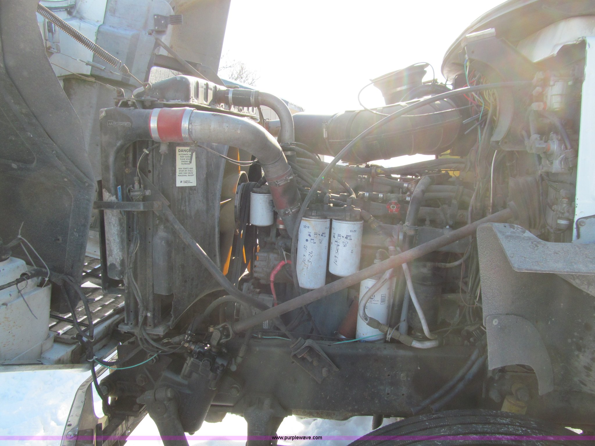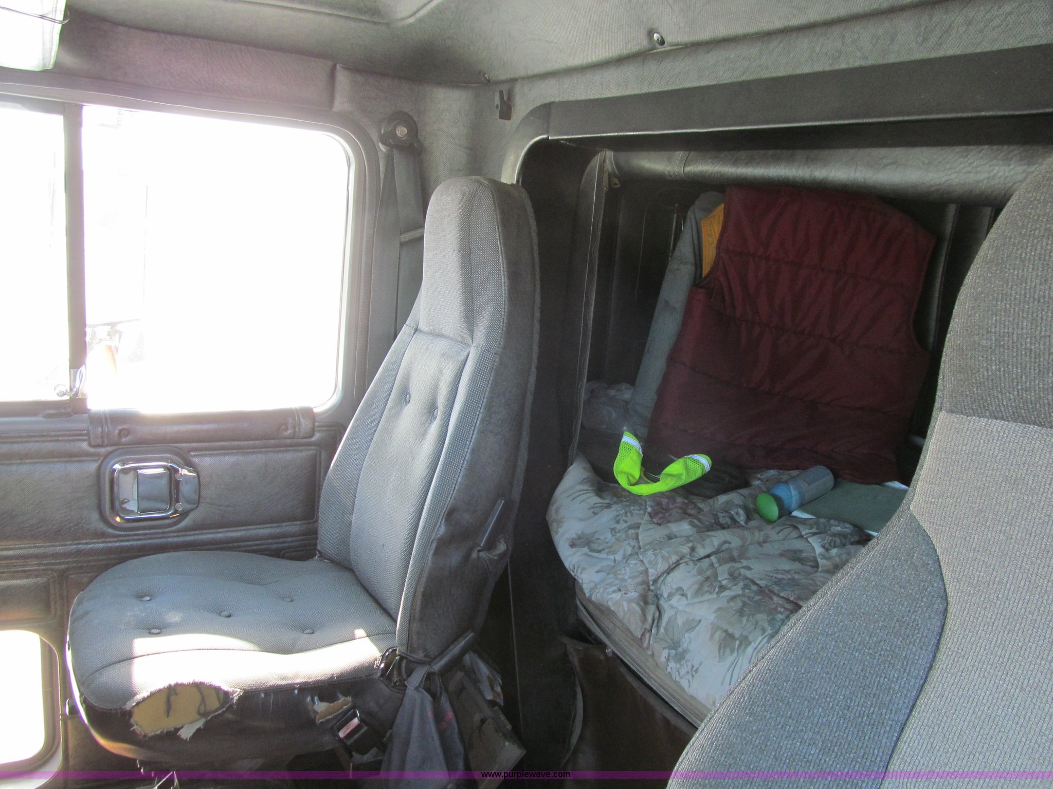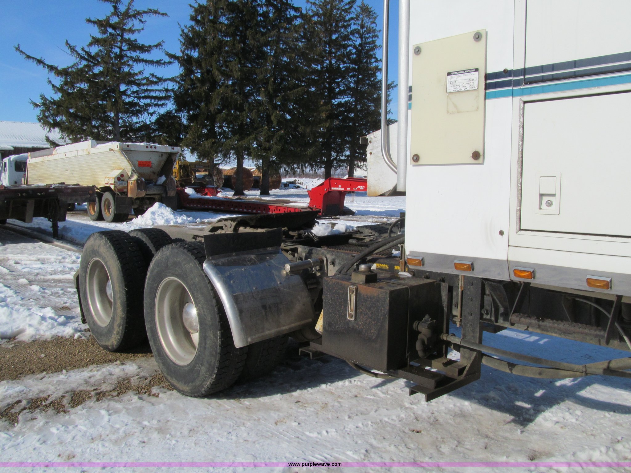 1992 Mack CH613 semi truck. 121,687 miles on odometer, 36,801 hours on meter Miles and hours may vary, still in use, Mack E7 12.0L L6 turbo diesel engine 400 HP, Nine speed manual transmission, Tandem axle, Inter-axle differential lock, AC and heat, Tilt, Telescoping steering wheel, Cruise, AM/FM/CD, Passenger power window, Passenger daylight door, Air suspension seat, Spotlight, Amber beacon, Amber strobe light, 42" sleeper Singe bed, Dump valves, Block heater, PTO, Wet kit, Visor, Front tow hooks, Single rear exhaust stack, Aluminum headache rack Chain hanger, Storage, Steel deck plate, Air operated sliding fifth wheel plate, Dual fuel tanks, Stainless steel quarter fenders, Mud flaps, Air suspension, Air brakes, Engine brake, 214" wheelbase, Aluminum 10 hole budd wheels, 11R22.5 tires, CB not included, Contents not included, Unit# 6015. 1M1AA13Y7NW016015. 1386B Olive Ave. Hampton, IA 50441