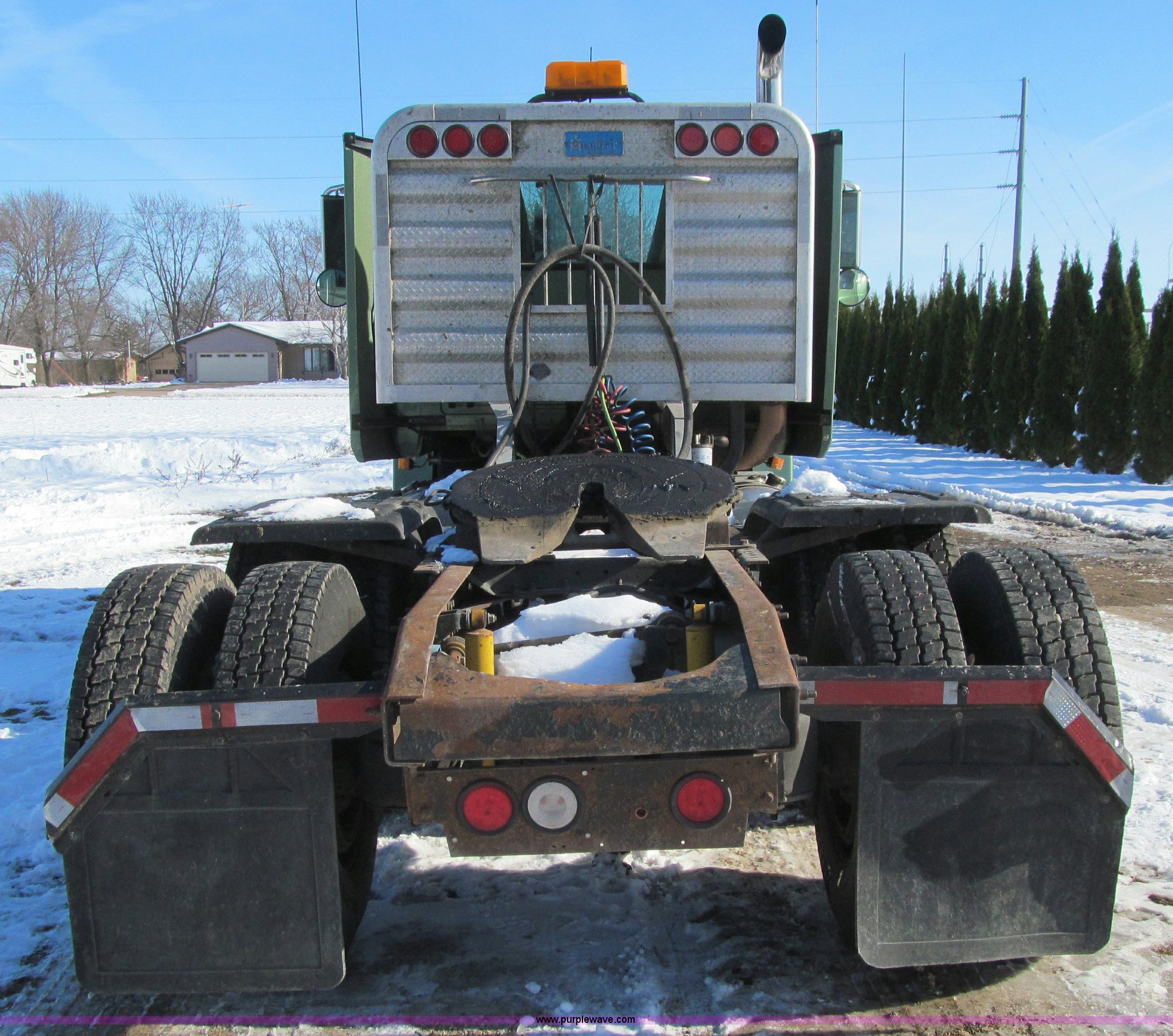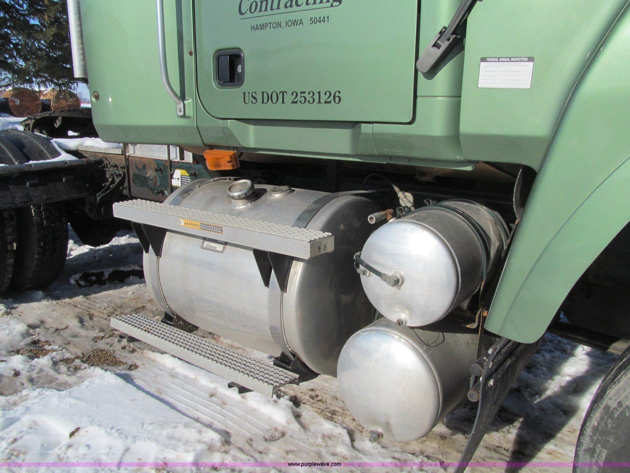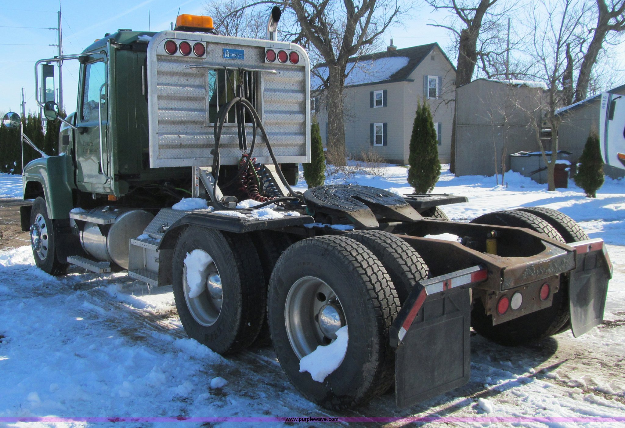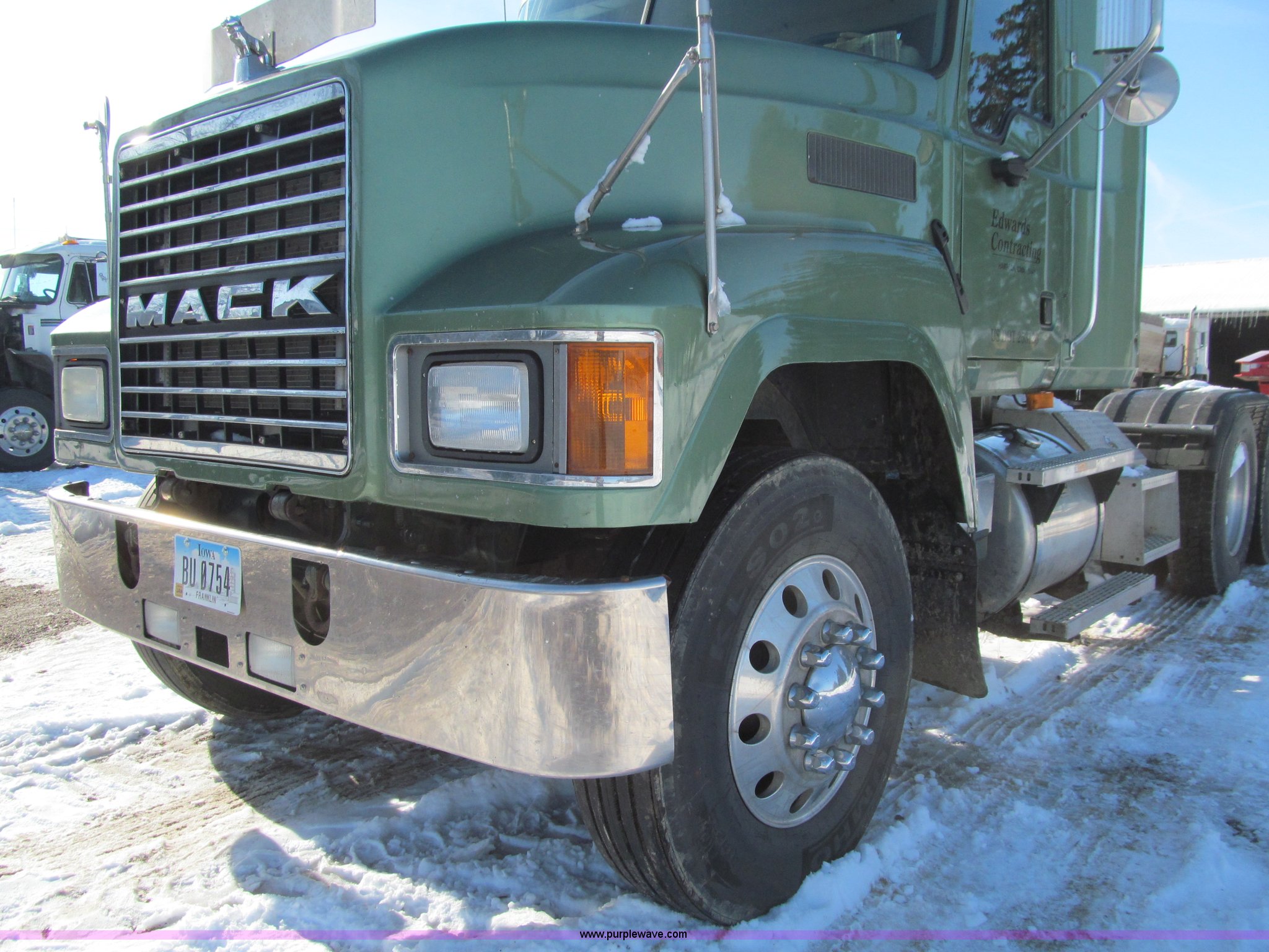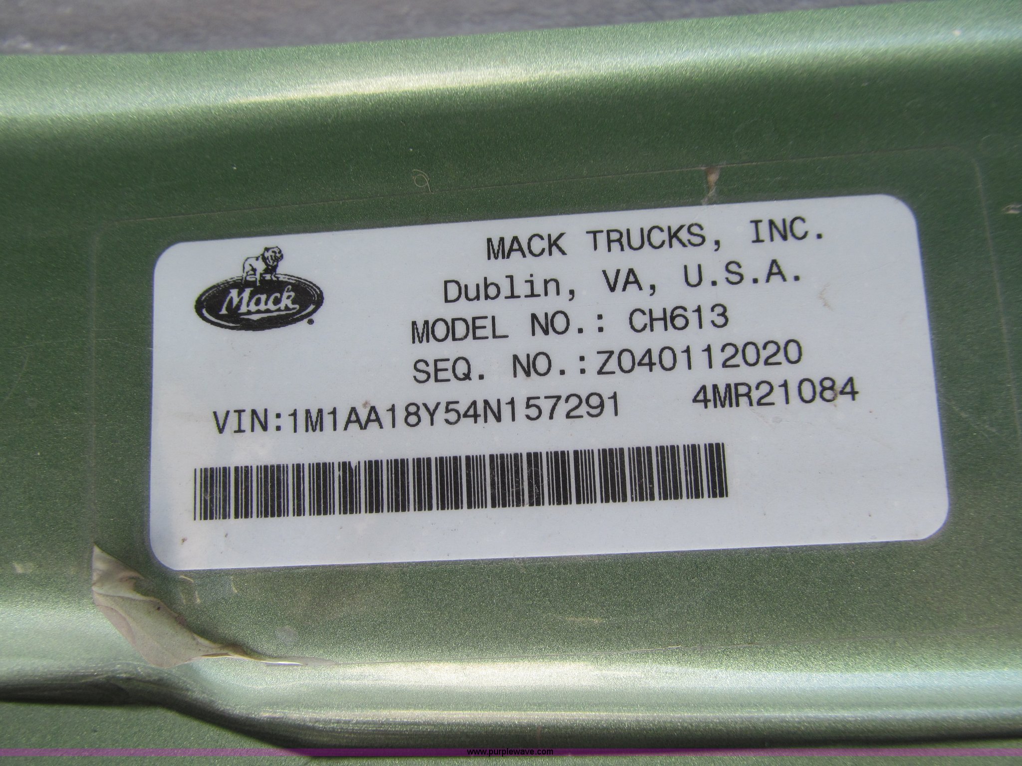 Purple Wave is selling a used Truck Tractor in Iowa. This item is a 2004 Mack CH613 semi truck with the following: 399,665 miles on odometer, 13,393 hours on meter, Miles and hours may vary, still in use, Mack AC-427 six cylinder turbo diesel engine, 427 HP, Eaton Fuller Lightning 10 speed manual transmission, Tandem axle, AC and heat, Tilt, Telescoping steering wheel, Cruise, AM/FM/CD, Power windows and locks, Air suspension seat, Air ride cab, Spotlight, Back up alarm, Beacon light, Cab extenders, Block heater, Dump valves, Front tow hooks, Single rear exhaust stack, Aluminum headache rack, Aluminum deck plate, Fixed fifth wheel plate, Frame mounted toolbox, Dual fuel tanks, Wet kit, PTO, Plastic half fenders, Mud flaps, Air suspension, Air brakes, 192" wheelbase, Aluminum 10 hole budd wheels, 11R22.5 tires, Contents not included
