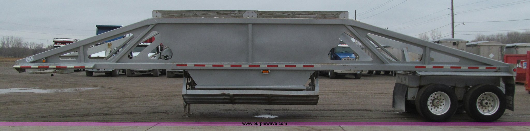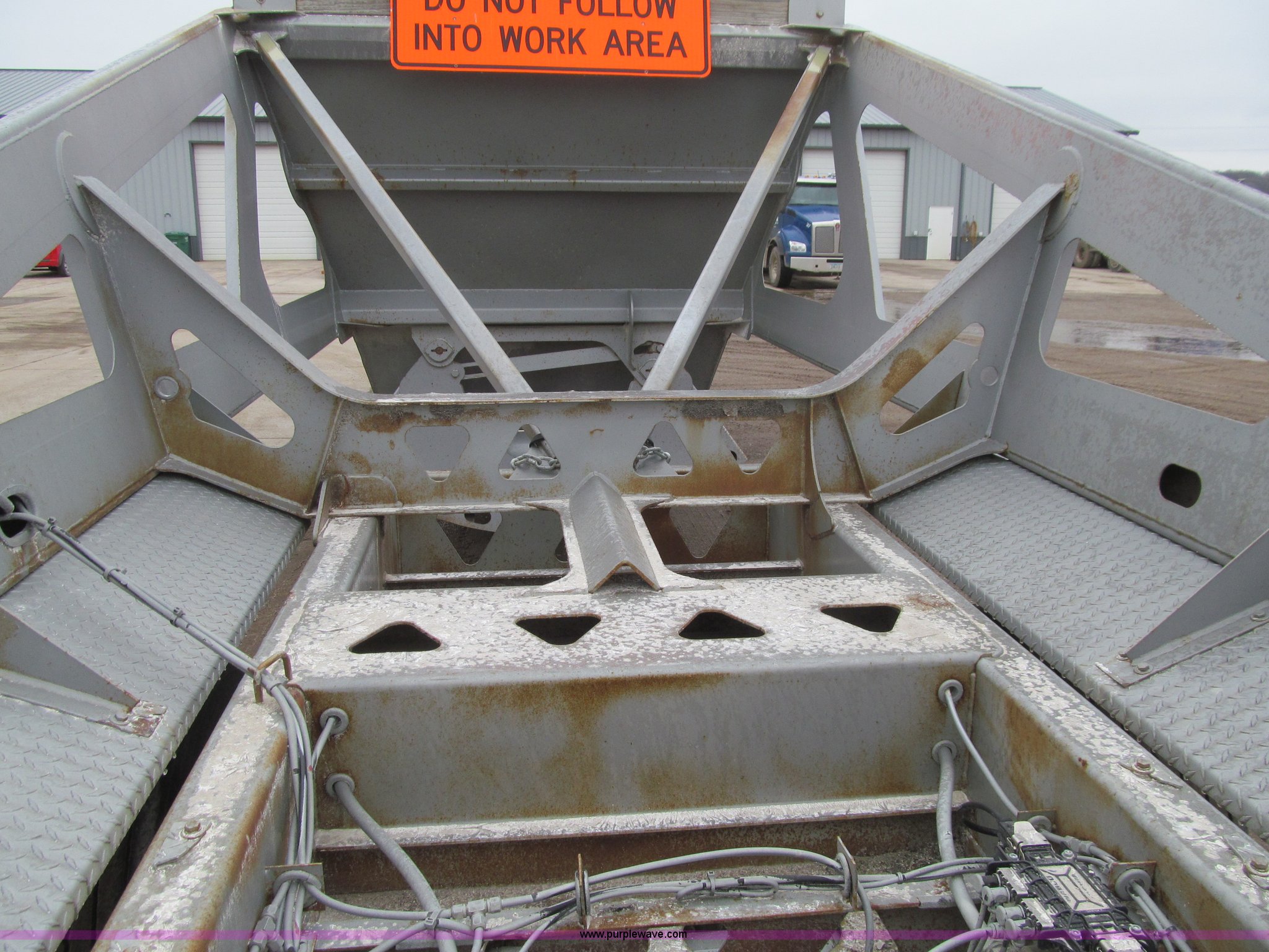 Purple Wave is selling a used Bottom Dump Trailer in Iowa. This item is a 1999 Trail King bottom dump trailer with the following: Approximately 42'L x 102"W, Rear stinger, Rear mudflaps, Six and seven pin trailer wiring, Air suspension, Air brakes, Aluminum Budd wheels, 445/50R2.5 super single tires