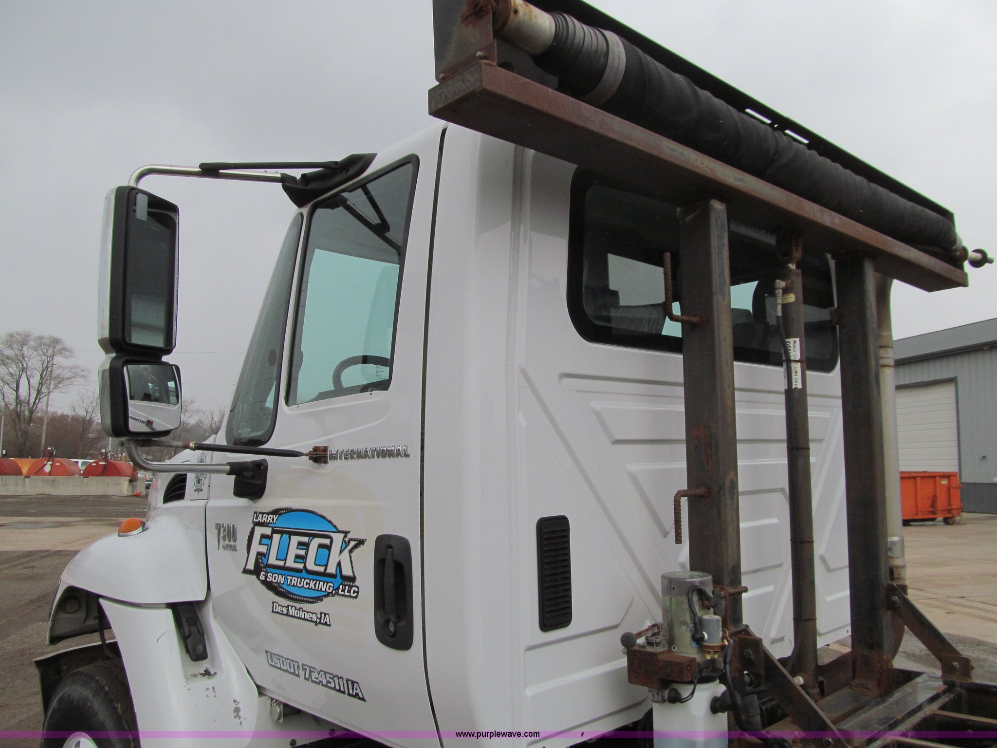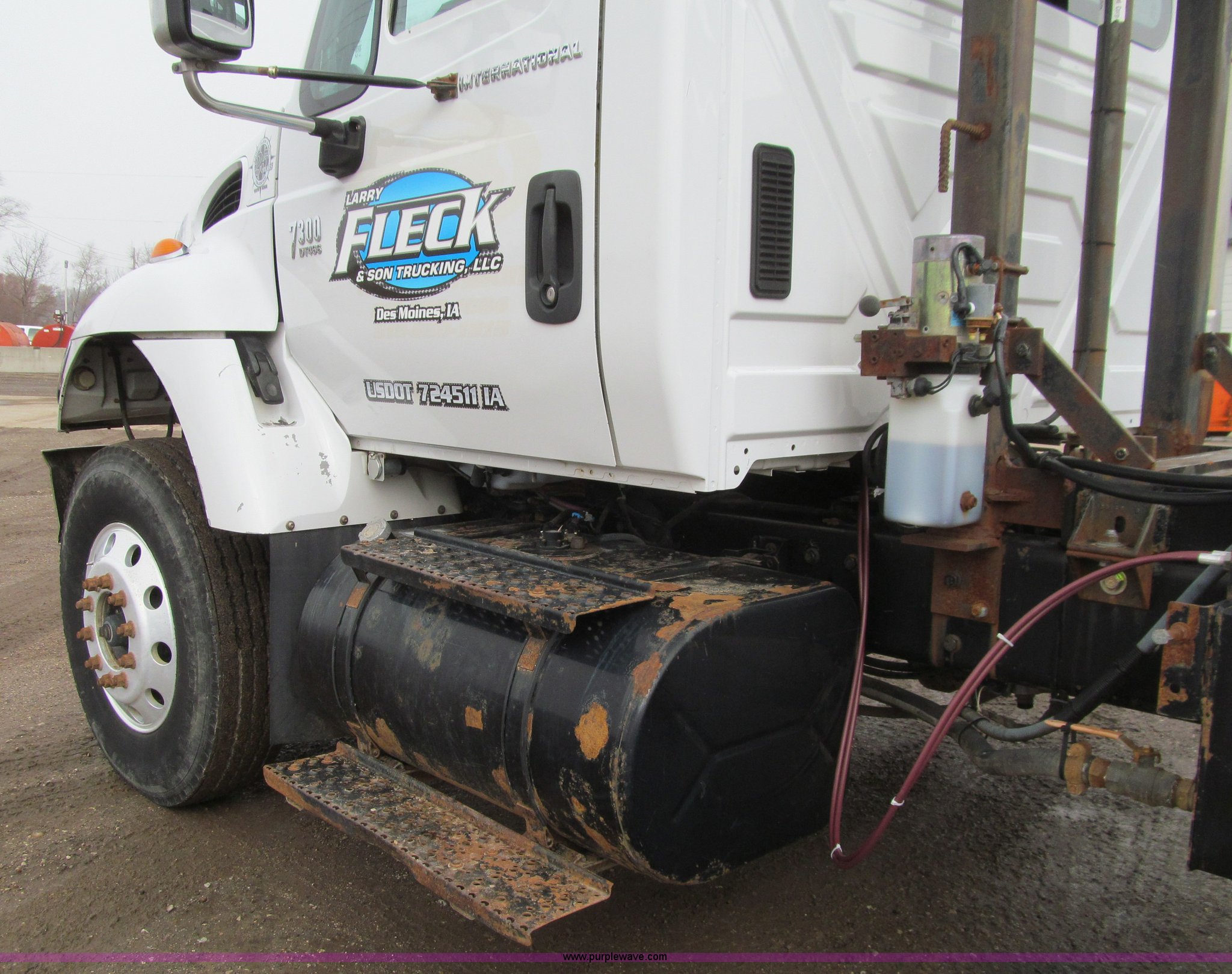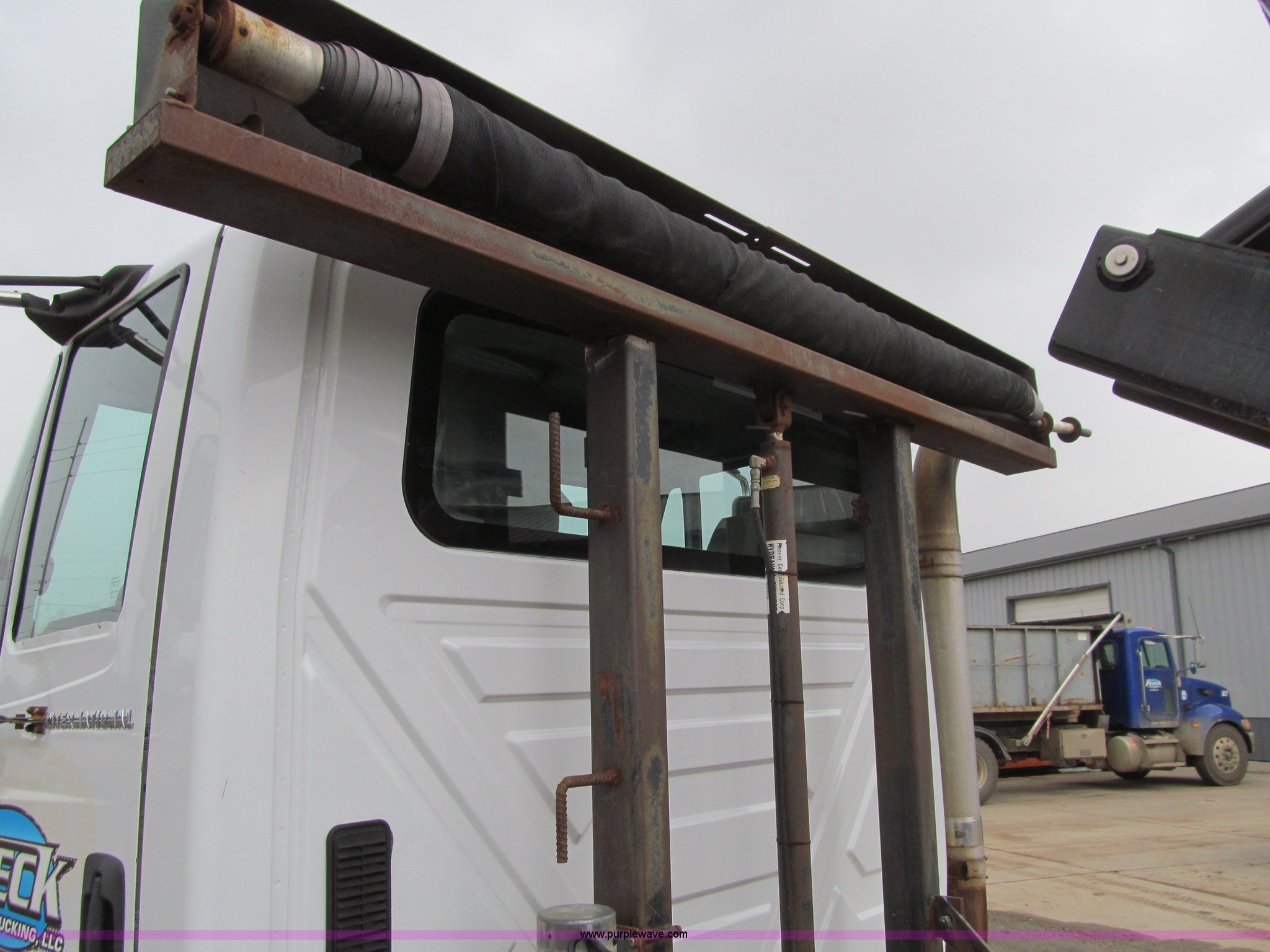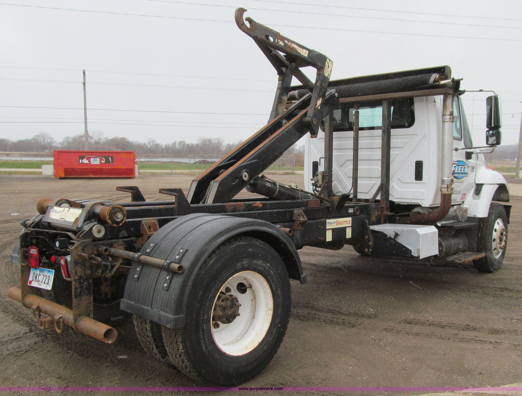 Purple Wave is selling a used Truck Tractor in Iowa. This item is a 2002 International 7300 hook truck with the following: 195,320 miles on odometer, International DT466 7.6L L6 turbo diesel engine, Eaton Fuller six speed manual transmission, Single axle, AC and heat, Tilt, AM/FM, Power windows and locks, Power and heated mirrors, Air suspension seat, Stellar 120-15-16 shuttle loader, 36" hook height, Serial JBC-027H785, Adjustable height roll-over tarp, Frame mounted toolbox, Backup alarm, Block heater, Front tow hooks, PTO, Single rear exhaust stack, Single fuel tank, Receiver hitch, Trailer wiring, Spring suspension, Air brakes, 206" wheelbase, 11R22.5 tires, GVWR 33,000 lbs, Unit# 14
