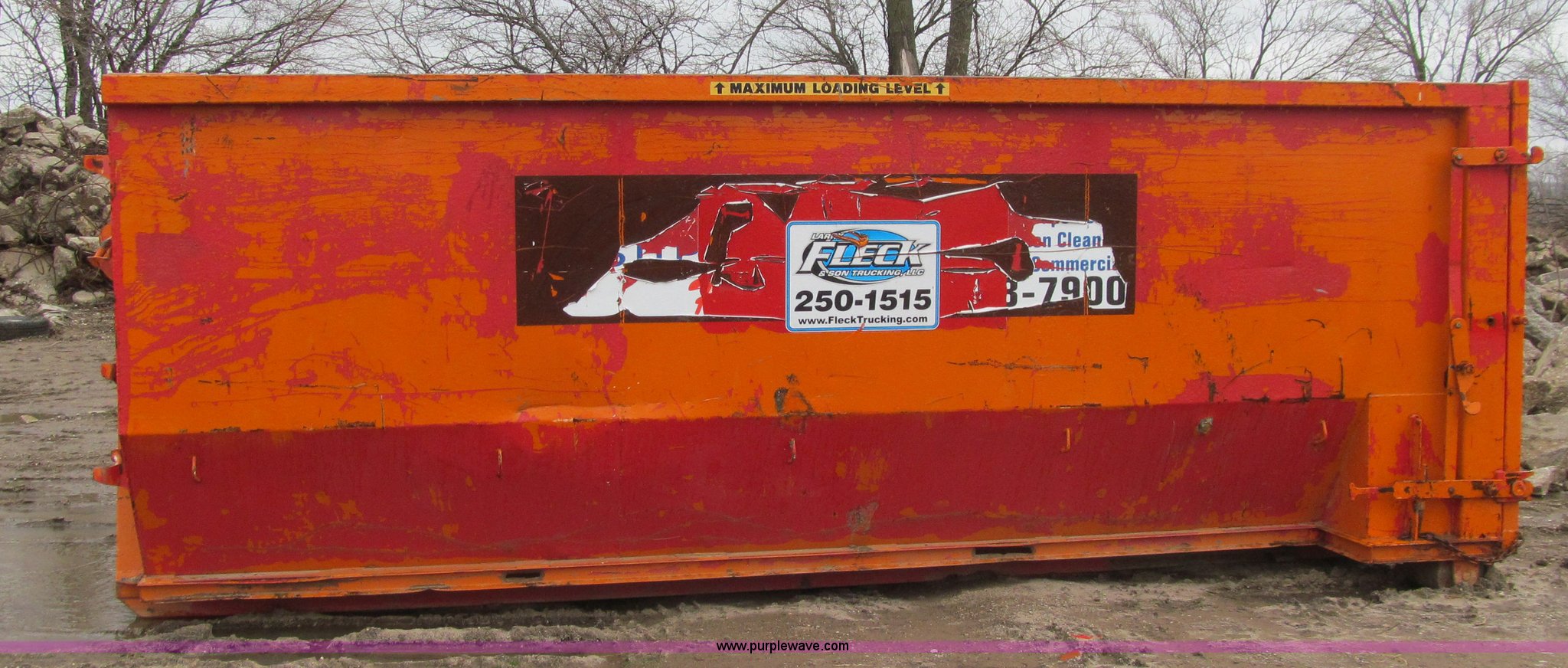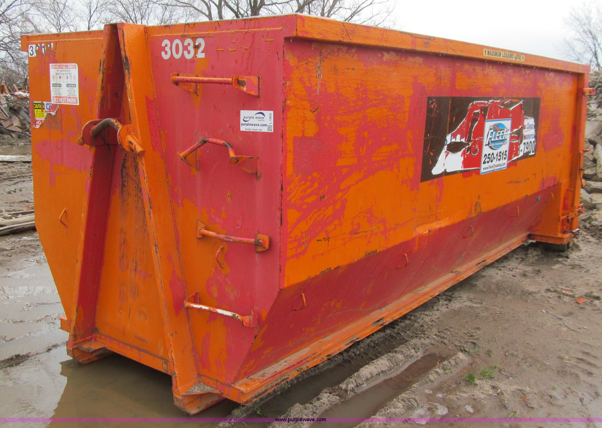 Purple Wave is selling a used Refuse or Compaction Equip. in Iowa. This item is a Roll off container with the following: Approximately 19'L x 96"W, Approximately 8.5' side height, 30 cubic yard capacity, Steel construction, Front hook, Access steps, Rear hinged door, Rear casters, Unit# 3032