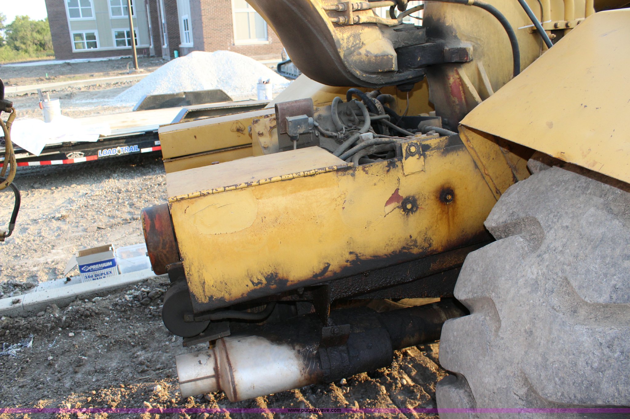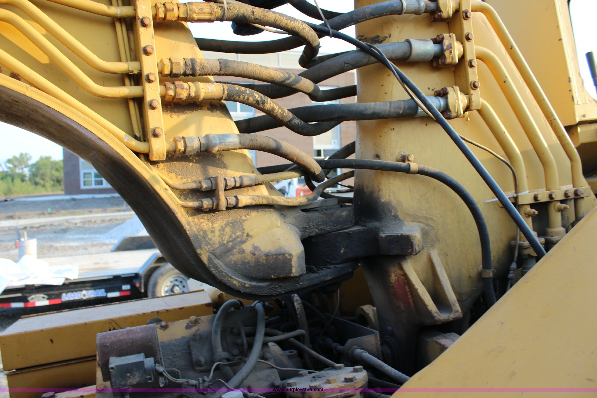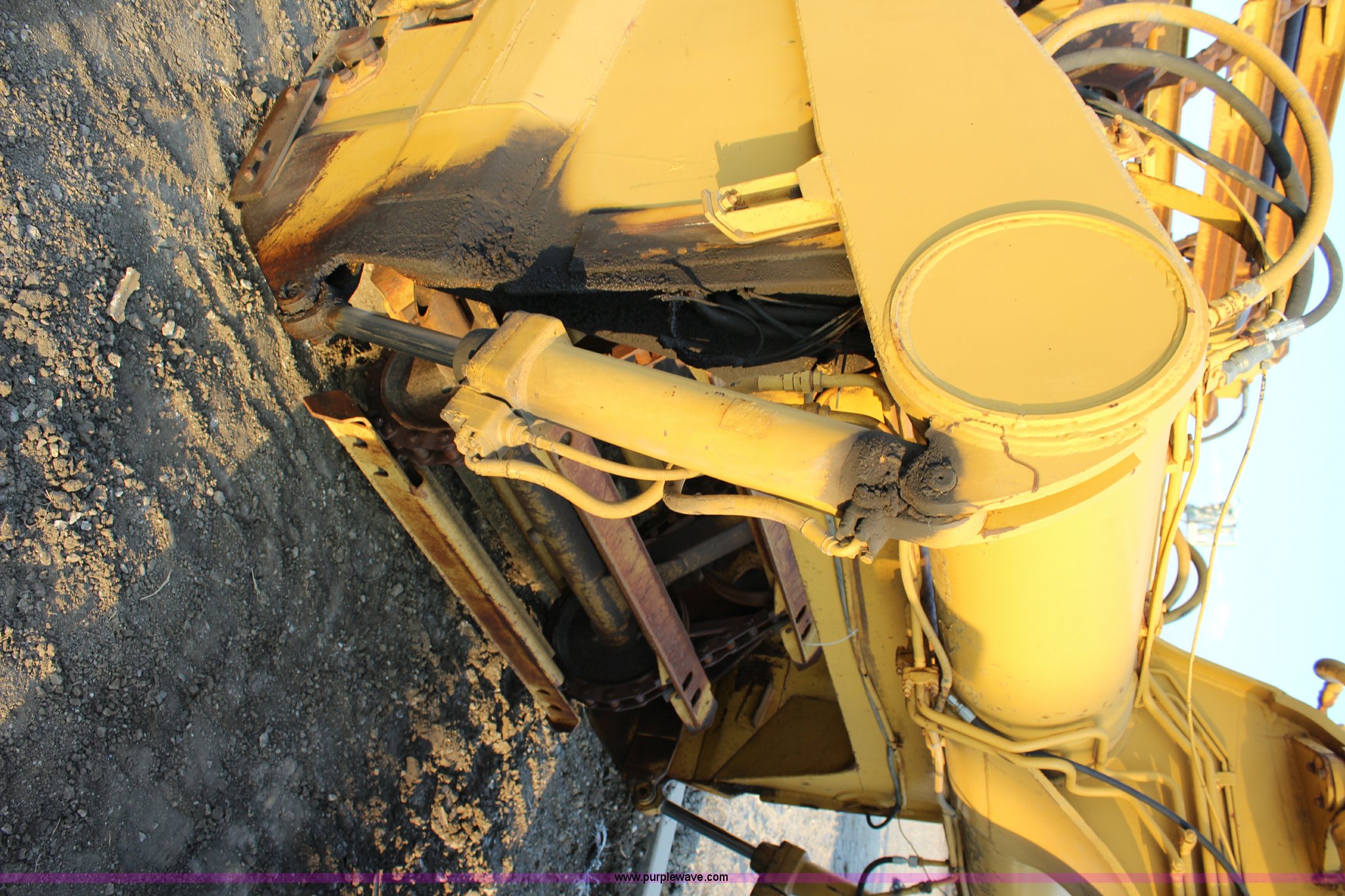 Purple Wave is selling a used Elevating Scraper in Kansas. This item is a 1981 Caterpillar 613B elevating scraper with the following: 139 hours on meter, Caterpillar 3208 eight cylinder diesel engine, Powershift transmission, 4F-2R gears, OROPS, Suspension seat, Three lever controls, 13 cu. yd. bowl capacity, Hydraulic lift, Rear push block, 23.5-25 tires, Serial 38W07154