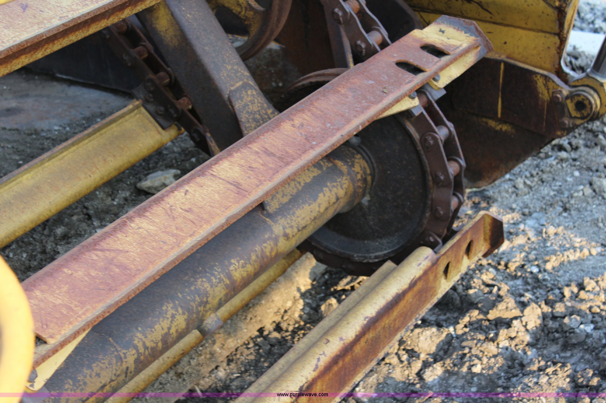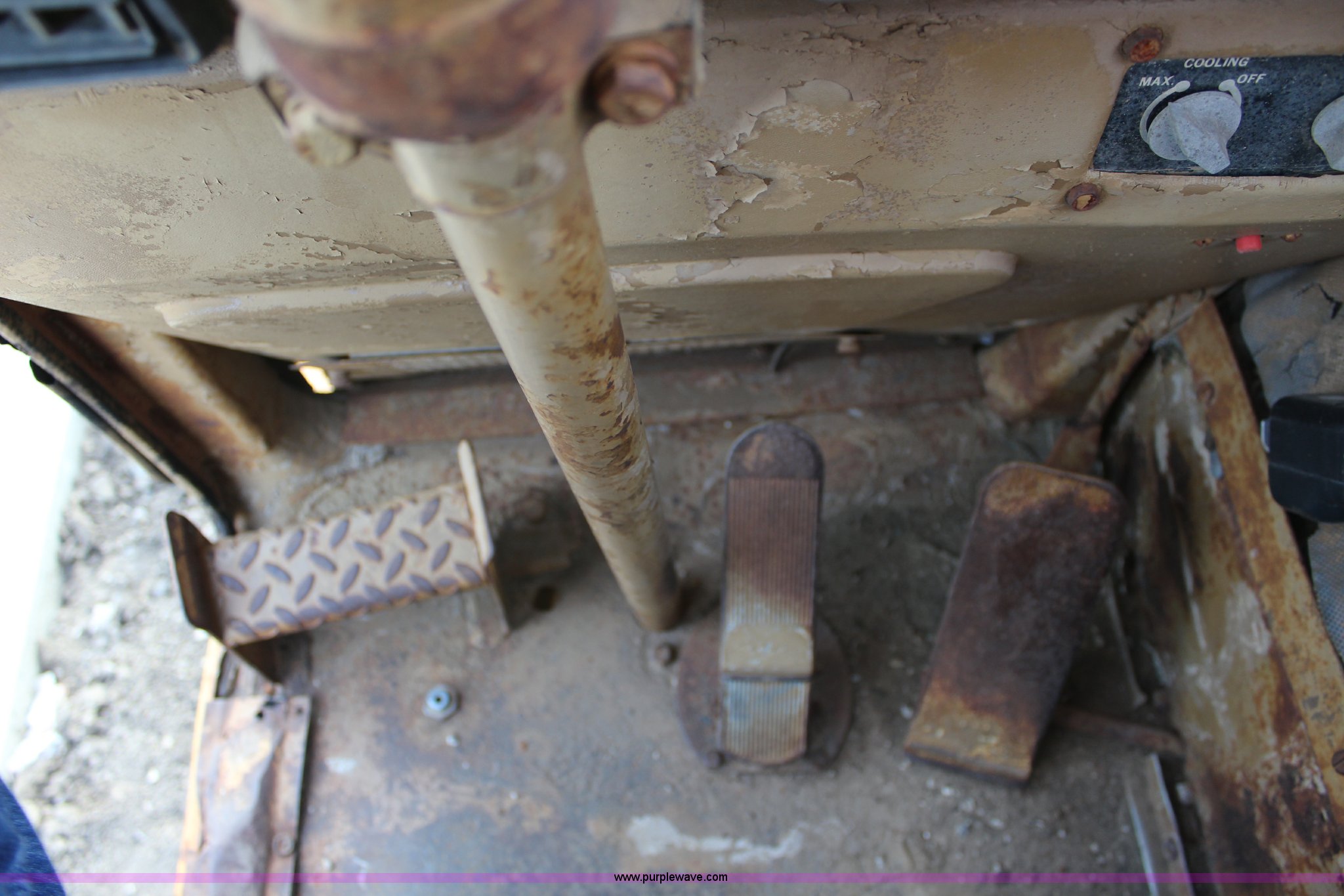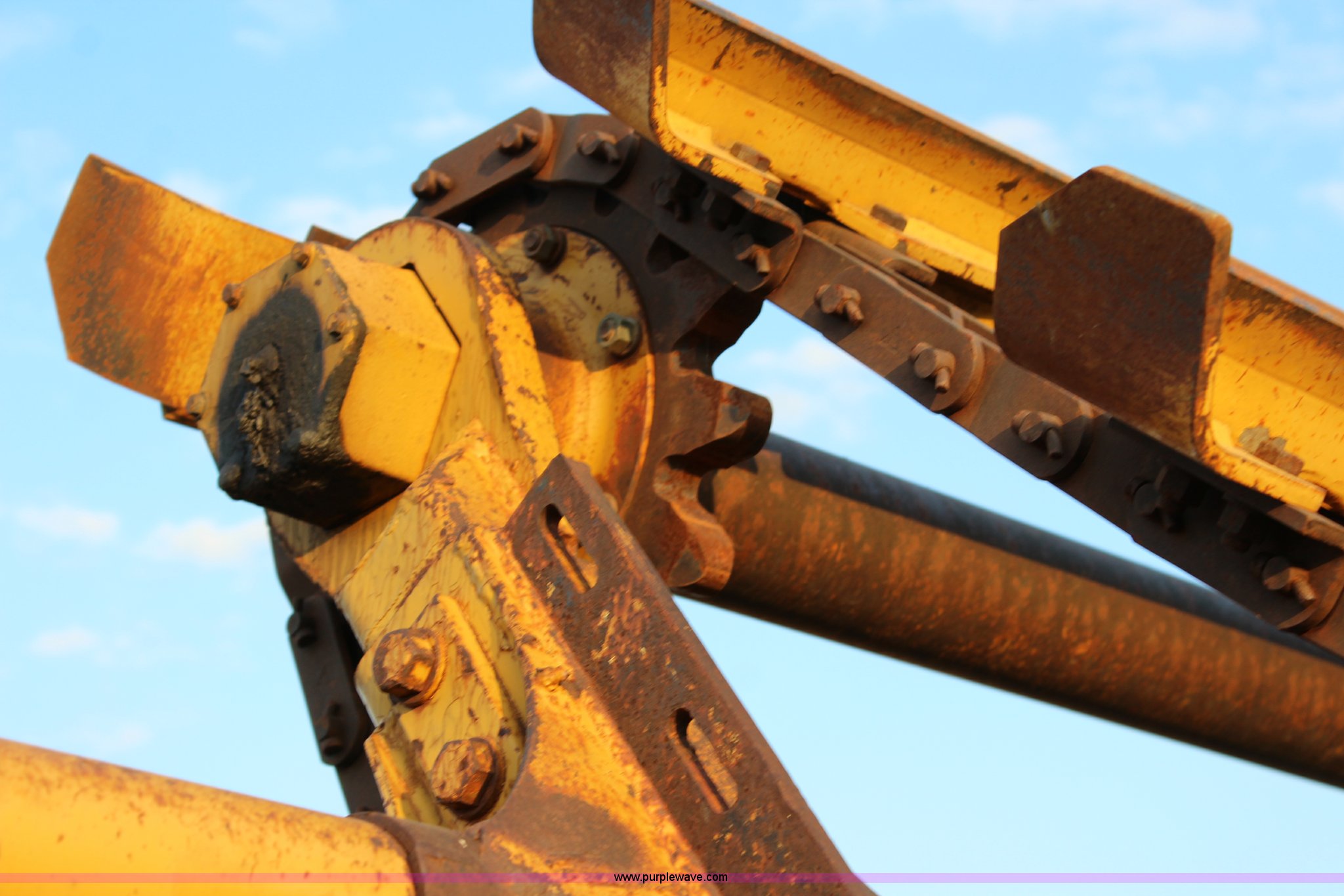 Purple Wave is selling a used Elevating Scraper in Kansas. This item is a 1981 Caterpillar 613B elevating scraper with the following: 139 hours on meter, Caterpillar 3208 eight cylinder diesel engine, Powershift transmission, 4F-2R gears, OROPS, Suspension seat, Three lever controls, 13 cu. yd. bowl capacity, Hydraulic lift, Rear push block, 23.5-25 tires, Serial 38W07154