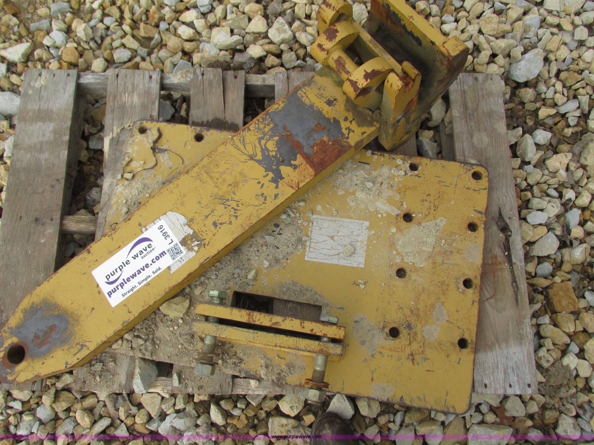 Purple Wave is selling a used Ag Tractor Loader or Attach. in Minnesota. This item is a Scraper hitch with the following: Tractor mount plate, Hitch link, Connects Caterpillar tractor to John Deere scraper
