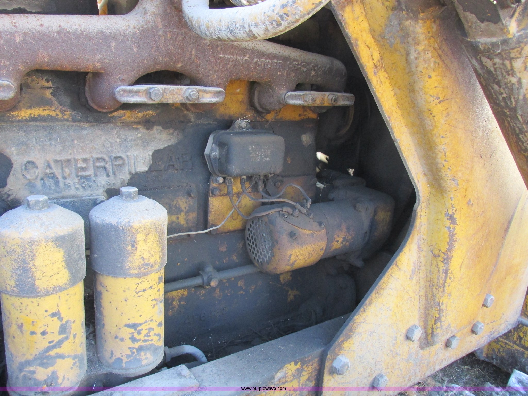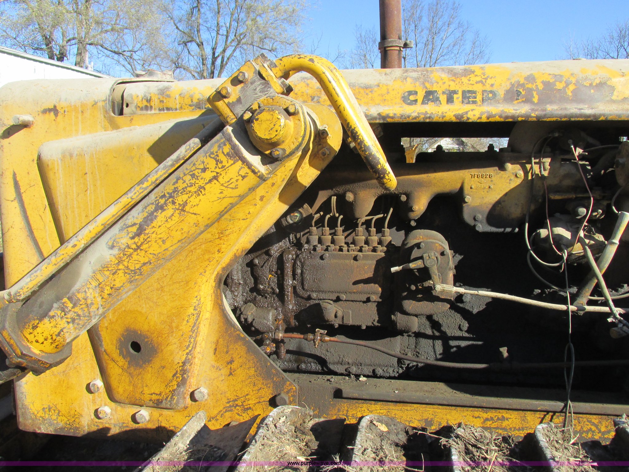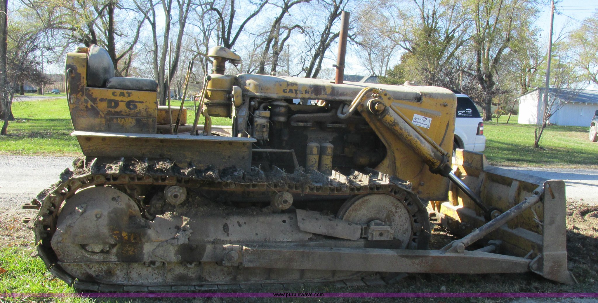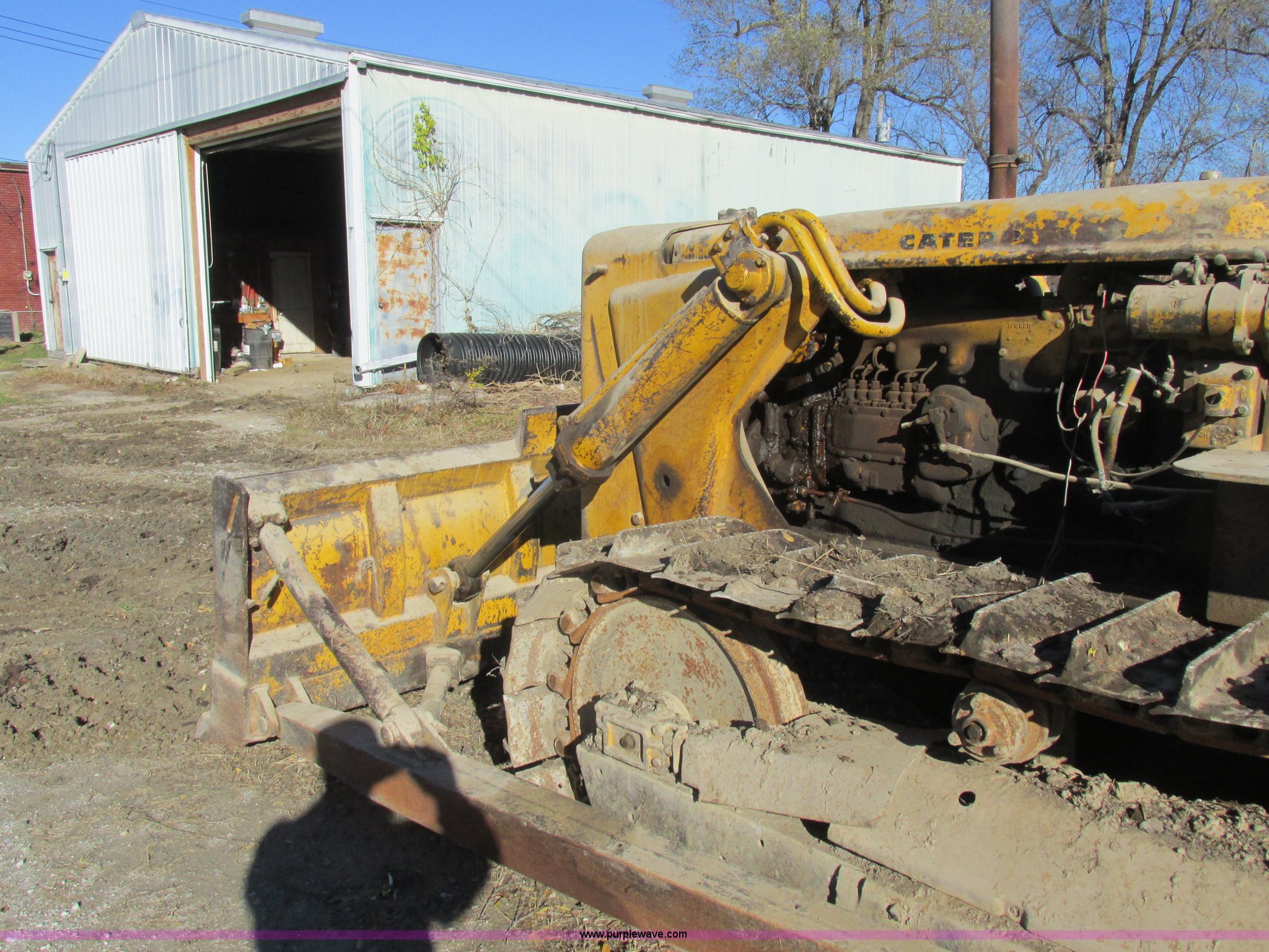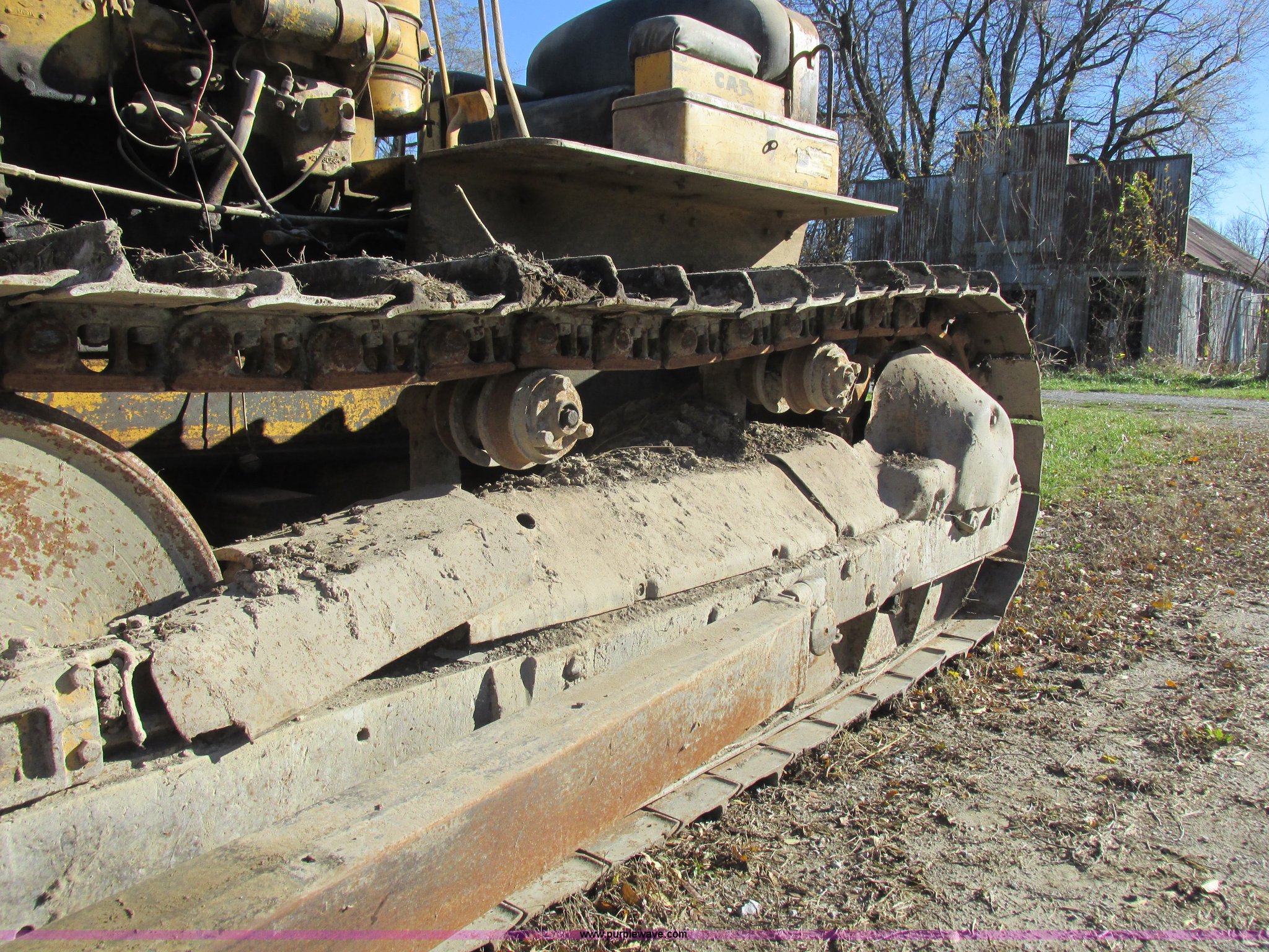 Purple Wave is selling a used Crawler Dozer in Missouri. This item is a 1952 Caterpillar D6 dozer with the following: Caterpillar six cylinder diesel engine, Serial 16C355, Direct-drive transmission, Suspension seat, Clutch brake steering, 9' straight dozer blade, Rear draw bar, Two bottom rollers, 18" single grouser track pads, Serial 9U22101