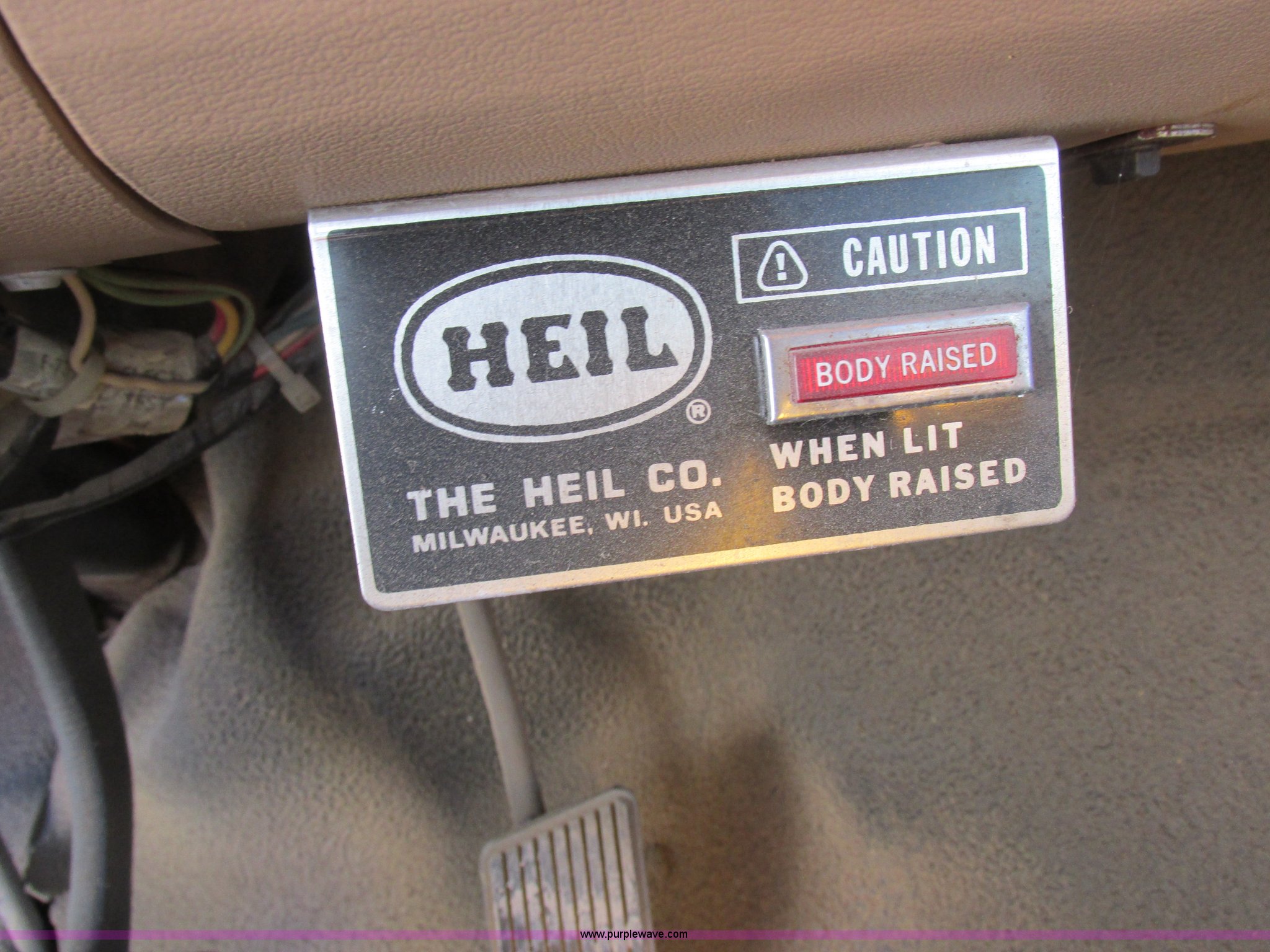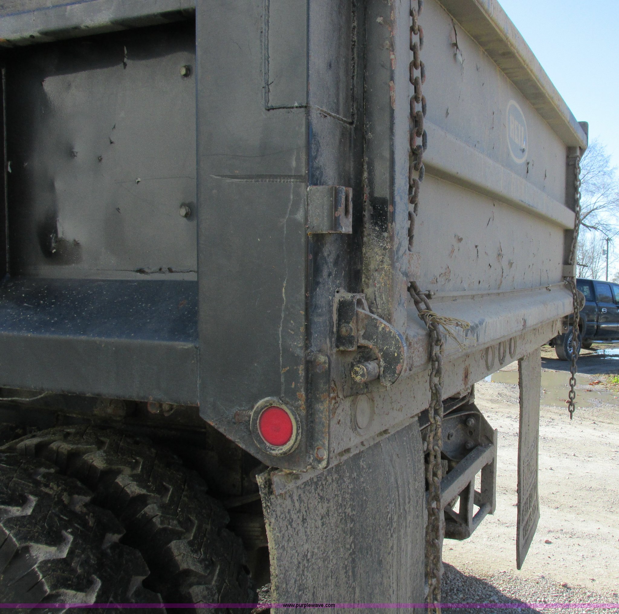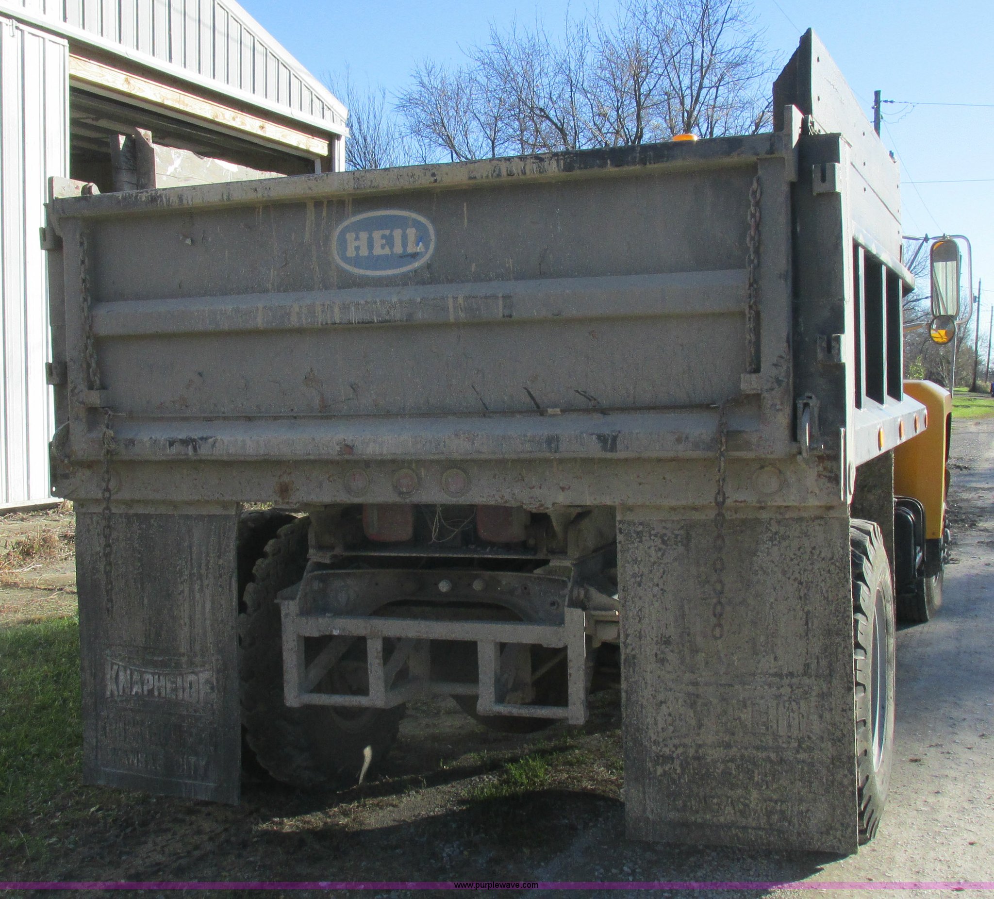Purple Wave is selling a used Construction Dump Truck in Missouri. This item is a 1985 Ford F700 dump truck with the following: 26,583 miles on odometer, Ford 6.1L V8 gas engine, 10 speed manual transmission, Single axle, Heat, Spring suspension seat, PTO, Heil SL5YD10FL steel dump bed, 10'L x 8'W, Five cubic yard capacity, Single ram hoist, Manual operated end gate, Serial 134594, Single fuel tank, Spring suspension, Hydraulic brakes, 9.00-20 tires
