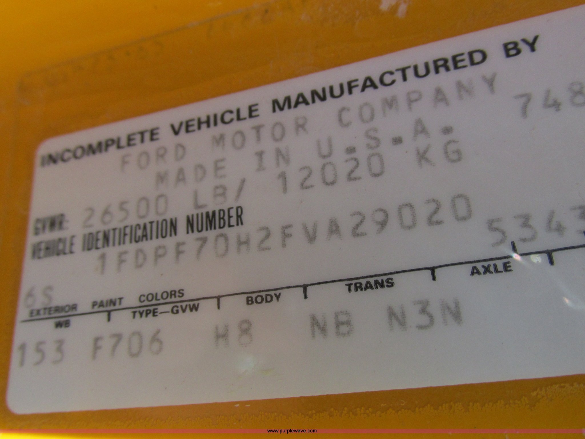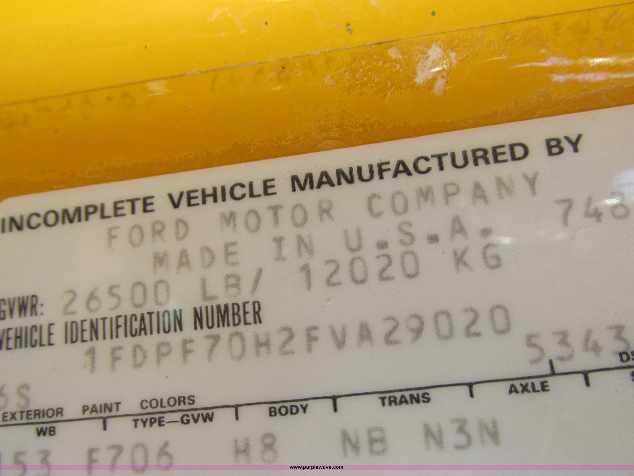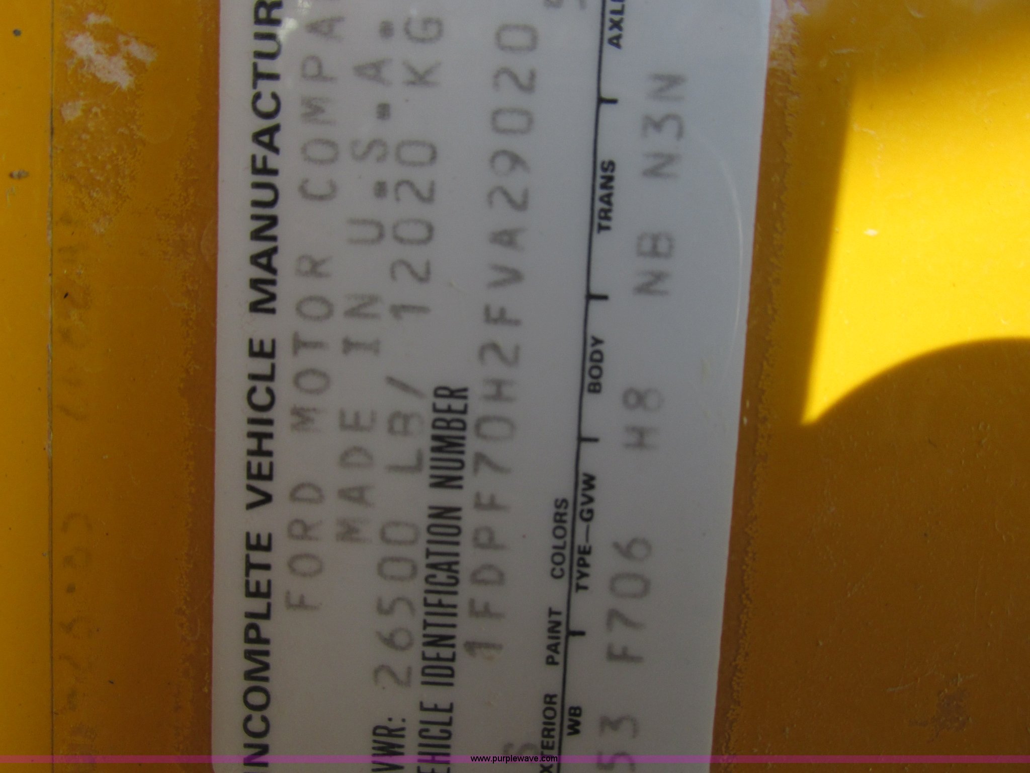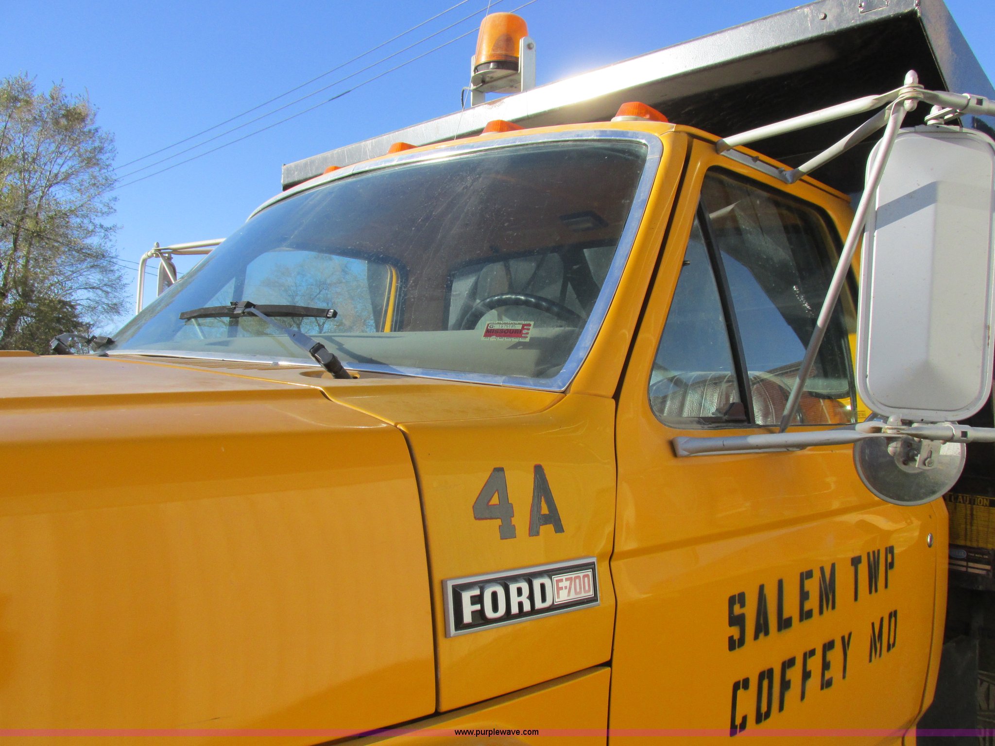 1985 Ford F700 dump truck. 26,583 miles on odometer, Ford 6.1L V8 gas engine, 10 speed manual transmission, Single axle, Heat, Spring suspension seat, PTO, Heil SL5YD10FL steel dump bed 10'L x 8'W, Five cubic yard capacity, Single ram hoist, Manual operated end gate, Serial 134594, Single fuel tank, Spring suspension, Hydraulic brakes, 9.00-20 tires. Seller is a government entity who will be assigning and distributing the title. Please contact the seller for distribution questions. 1FDPF70H2FVA29020. View equipment video. Salem Township. 100 Center Street. Coffey, MO 64636