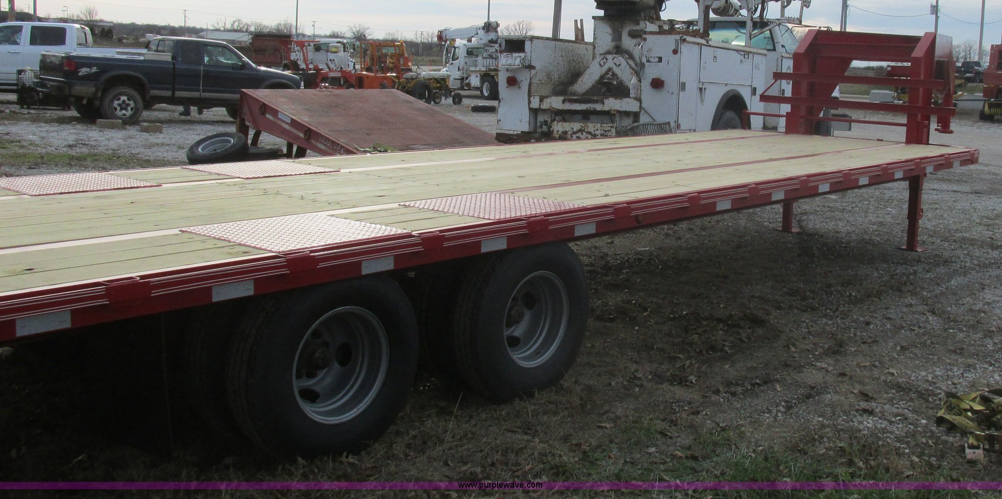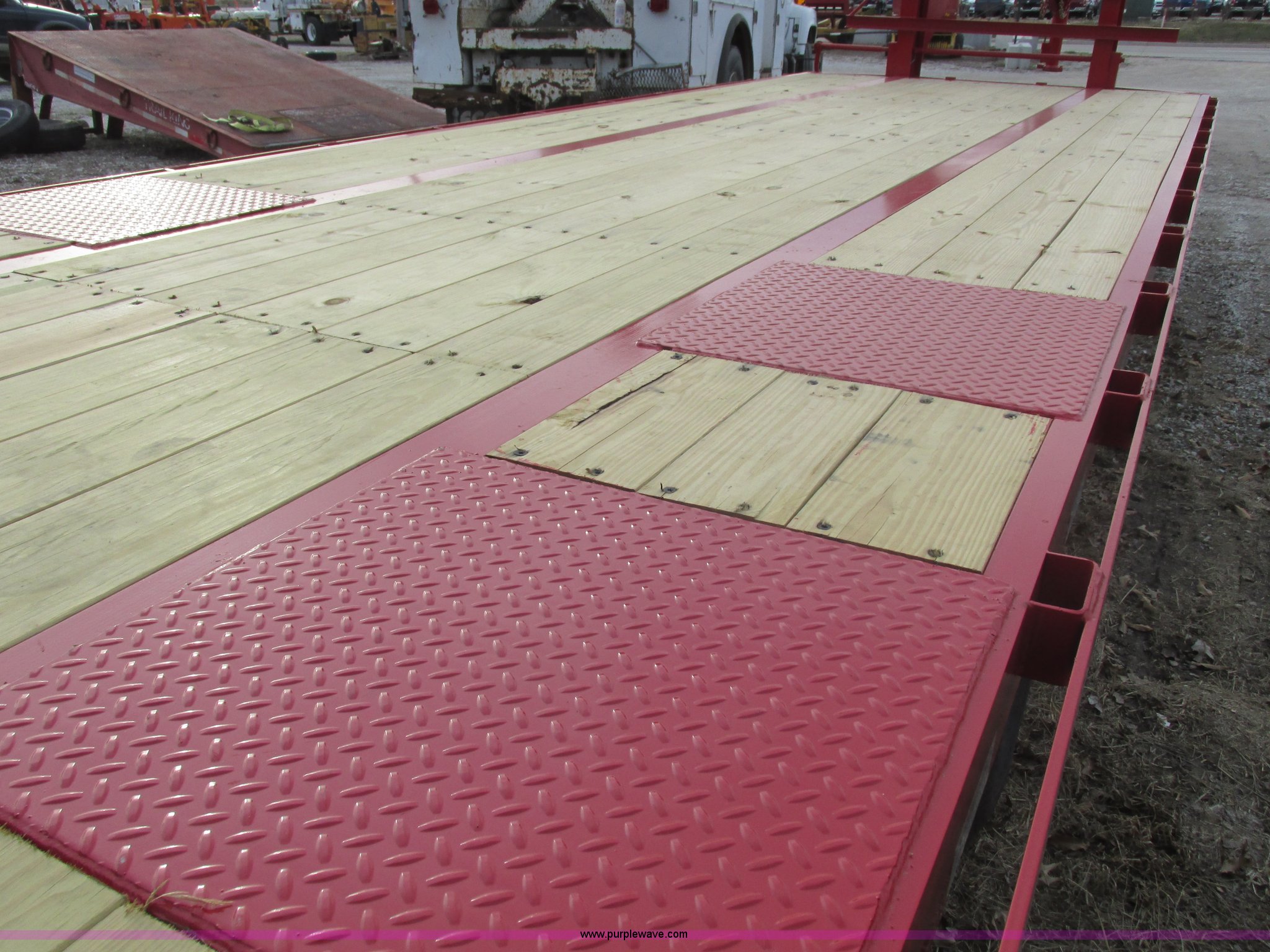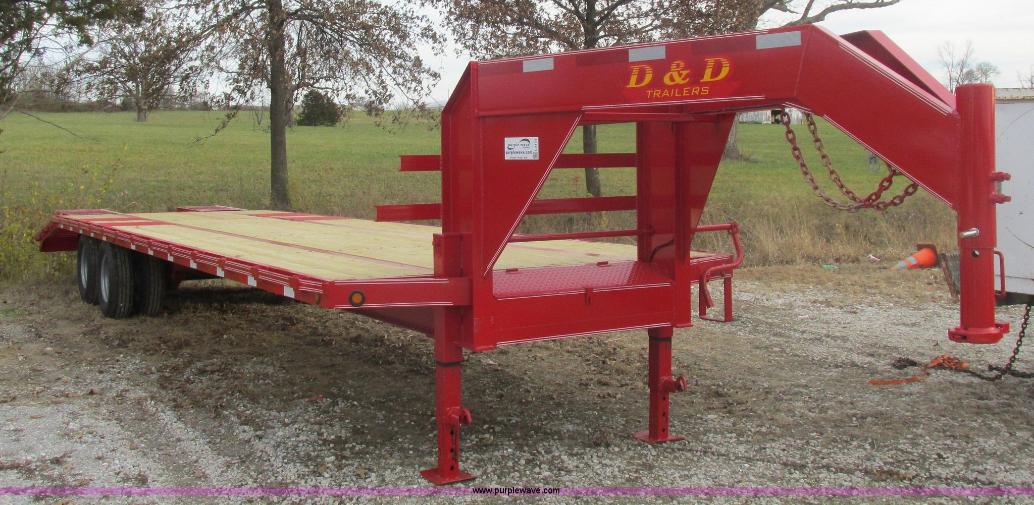 Purple Wave is selling a used Equip. Trailer in Missouri. This item is a 2015 D&D equipment trailer with the following: 32' overall length, 27'L x 8'W wood deck, 5'L beaver tail, Ramps, Stake side pockets, Dual leg landing gear, Spring suspension, Electric brakes, Tandem axle, 235/80R16 tires, GVWR 22,500 lbs, Unused