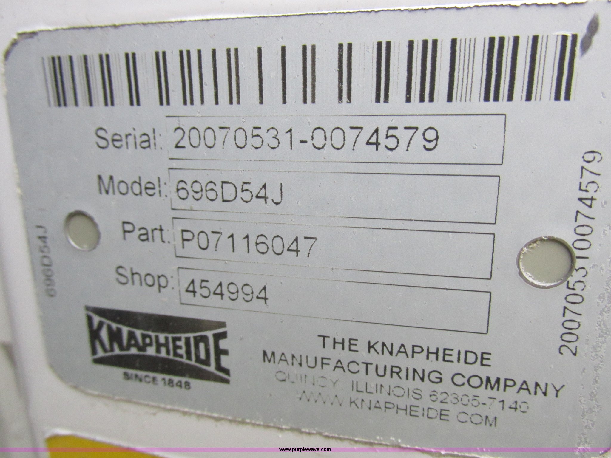 Purple Wave is selling a used Automotive Parts or Acces. in Missouri. This item is a Knapheide 696D54J service bed with the following: Serial 20070531-0074579