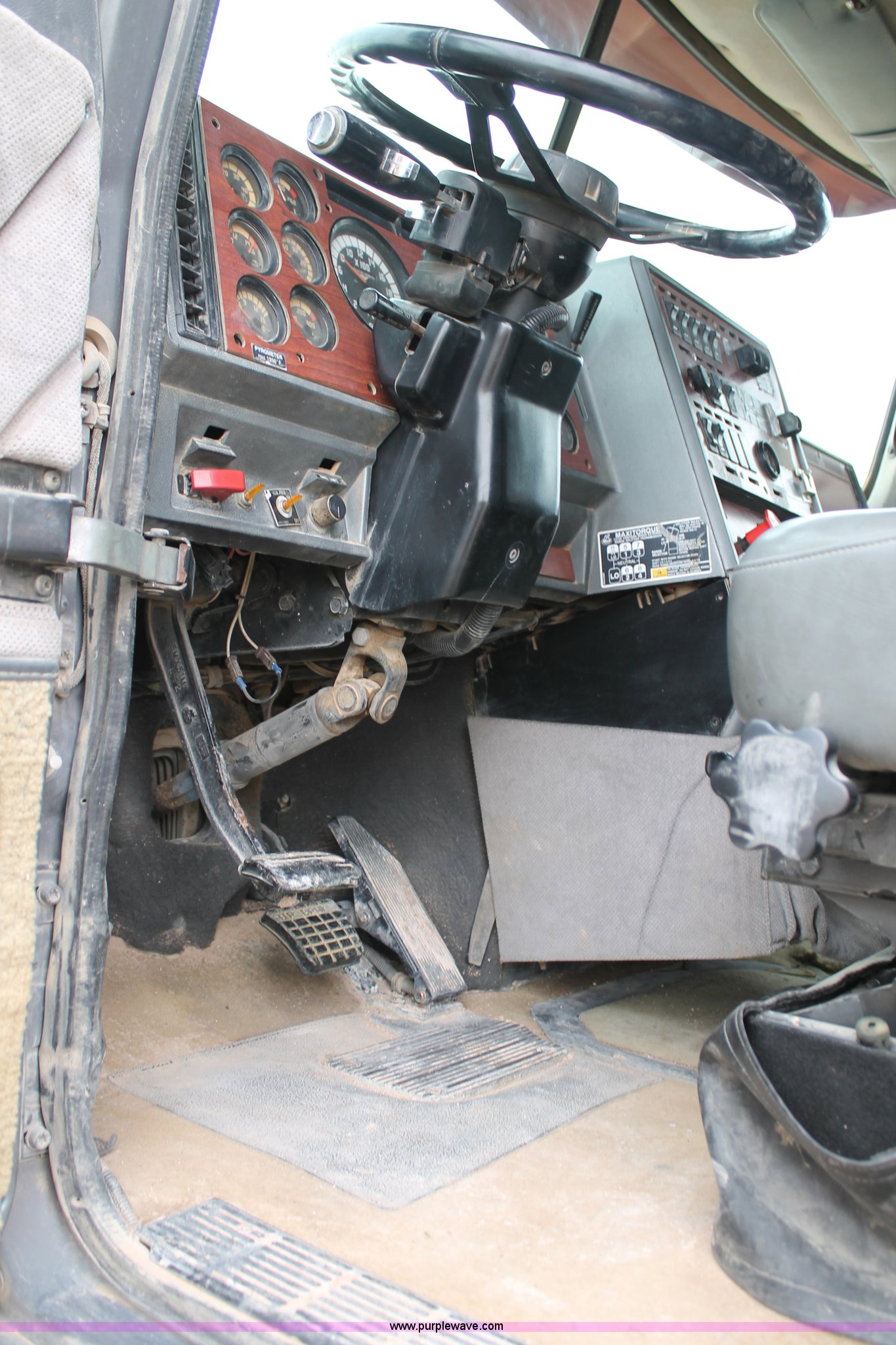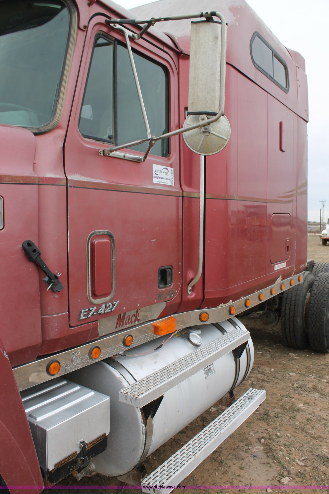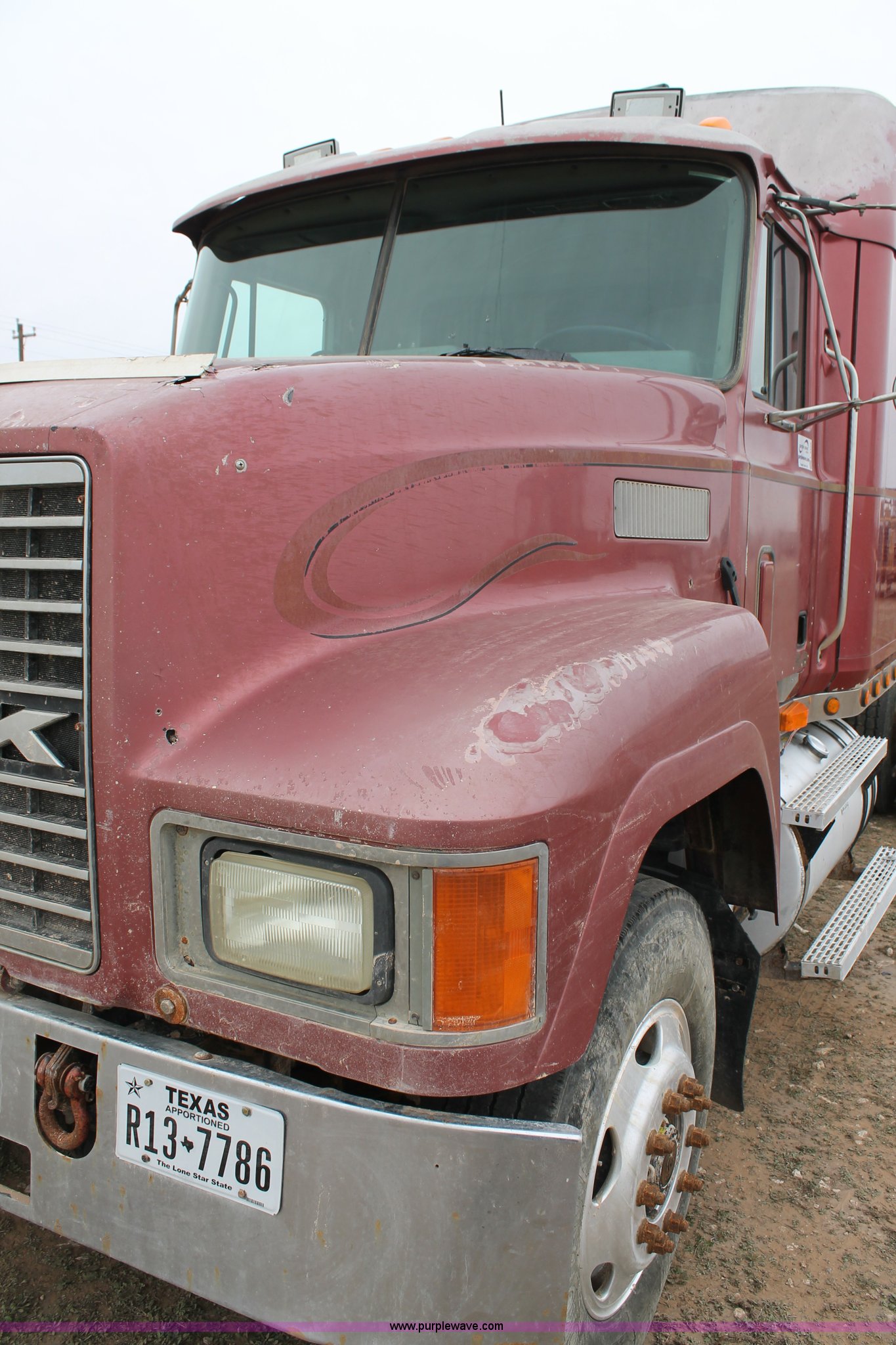Purple Wave is selling a used Truck Tractor in Texas. This item is a 1997 Mack CH613 semi truck with the following: 1,008,604 miles on odometer, 33,062 hours on meter, Mack E7 12.0L L6 turbo diesel engine, 427 HP, Mack Maxitorque 13 speed manual transmission, AC and heat, AM/FM/CD, Air suspension seat, Sleeper, 61"W, Single bed, Hanging closet, Front tow hooks, Exterior visor, Sliding fifth wheel plate, Dual rear exhaust stacks, Dual fuel tanks, Quarter fenders, Mud flaps, Air suspension, Air brakes, 11R22.5 tires