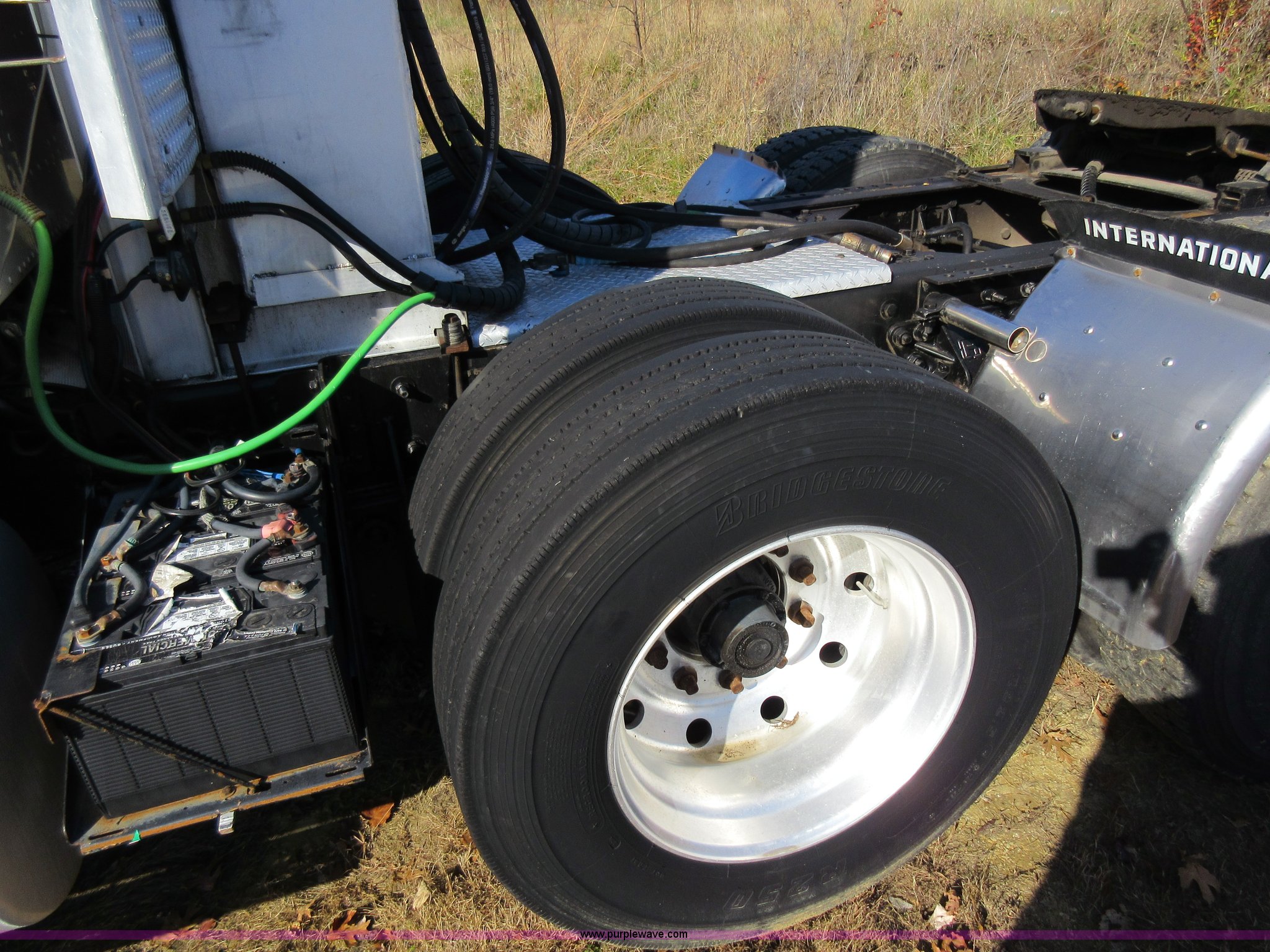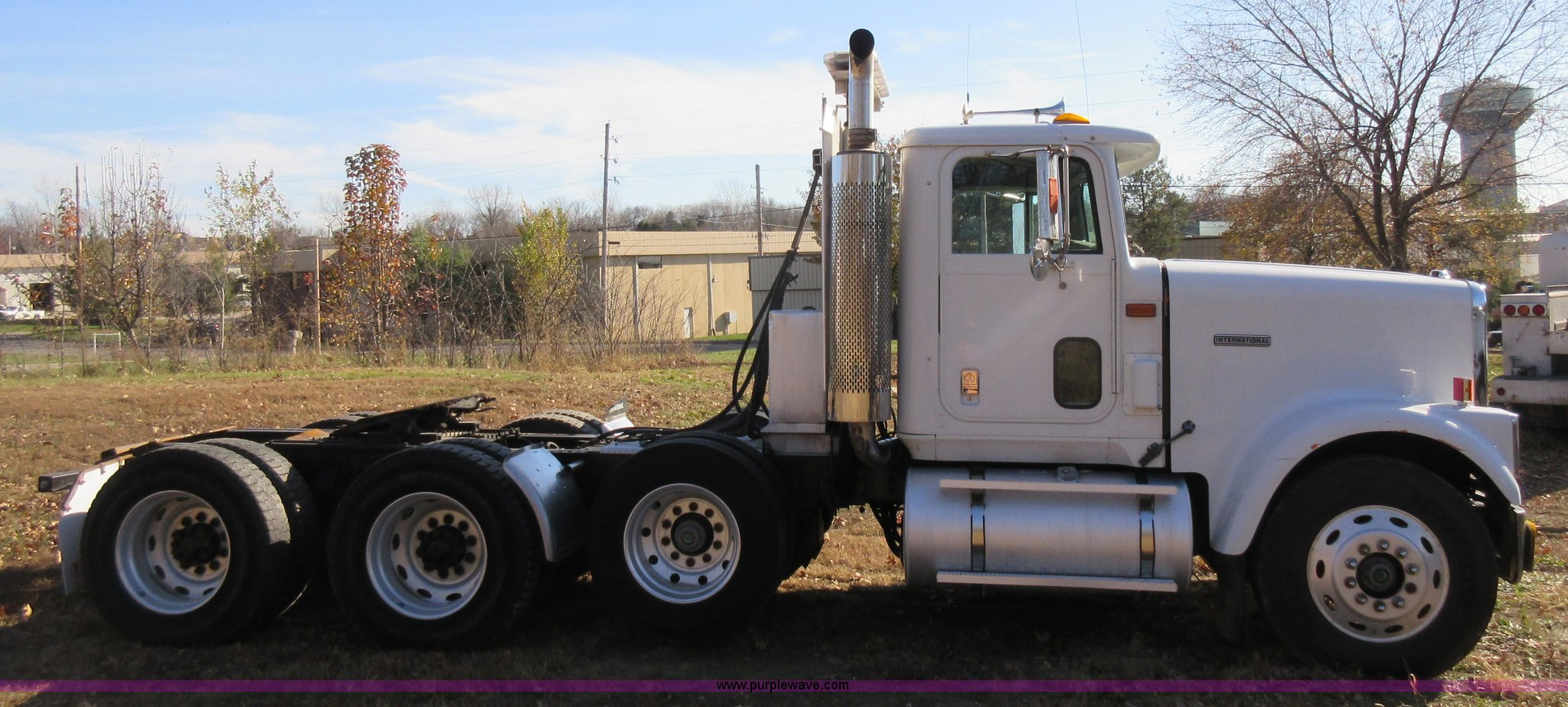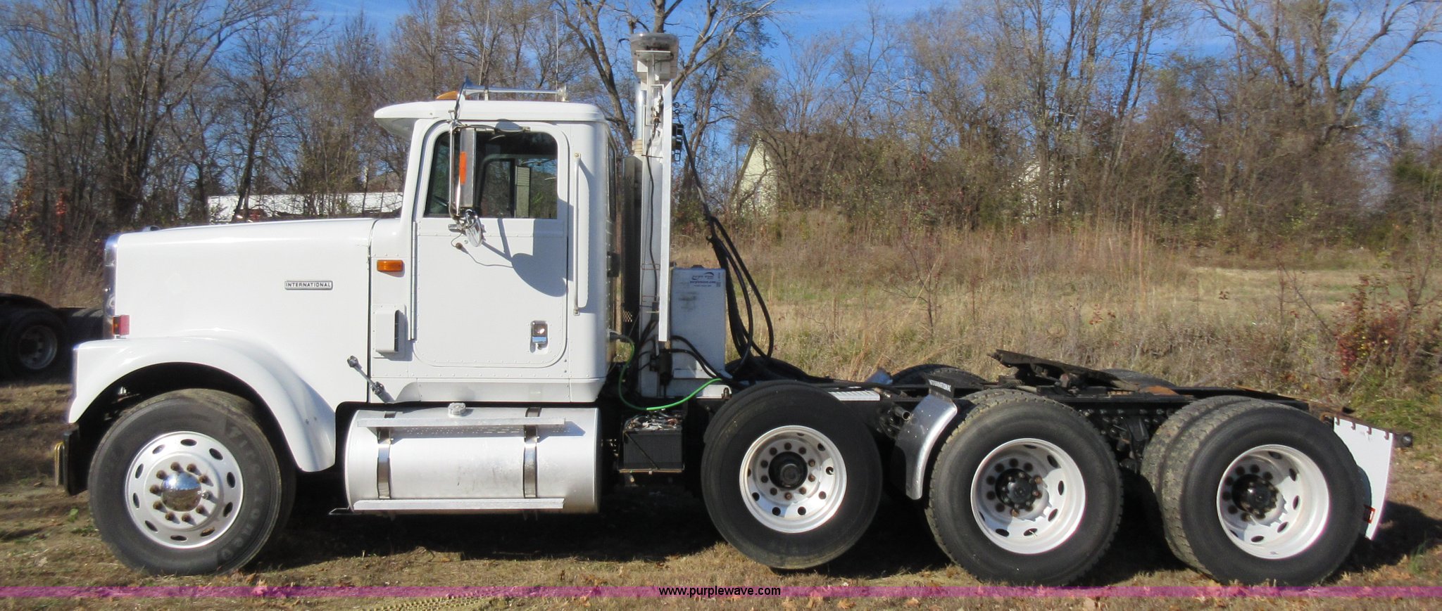 Purple Wave is selling a used Truck Tractor in Missouri. This item is a 1999 International F9370 semi truck with the following: 398,637 miles on odometer, Cummins N14 14.0L L6 diesel engine, Eaton Fuller 18 speed manual transmission, AC and heat, Cruise, Heated mirrors, Air suspension seat, Wet kit, Air operated sliding fifth wheel plate, Single rear exhaust stack, Air suspension, Air brakes, Engine brake, 211" wheelbase, Aluminum wheels, 11R24.5 tires, 295/75R22.5 tag axle tires