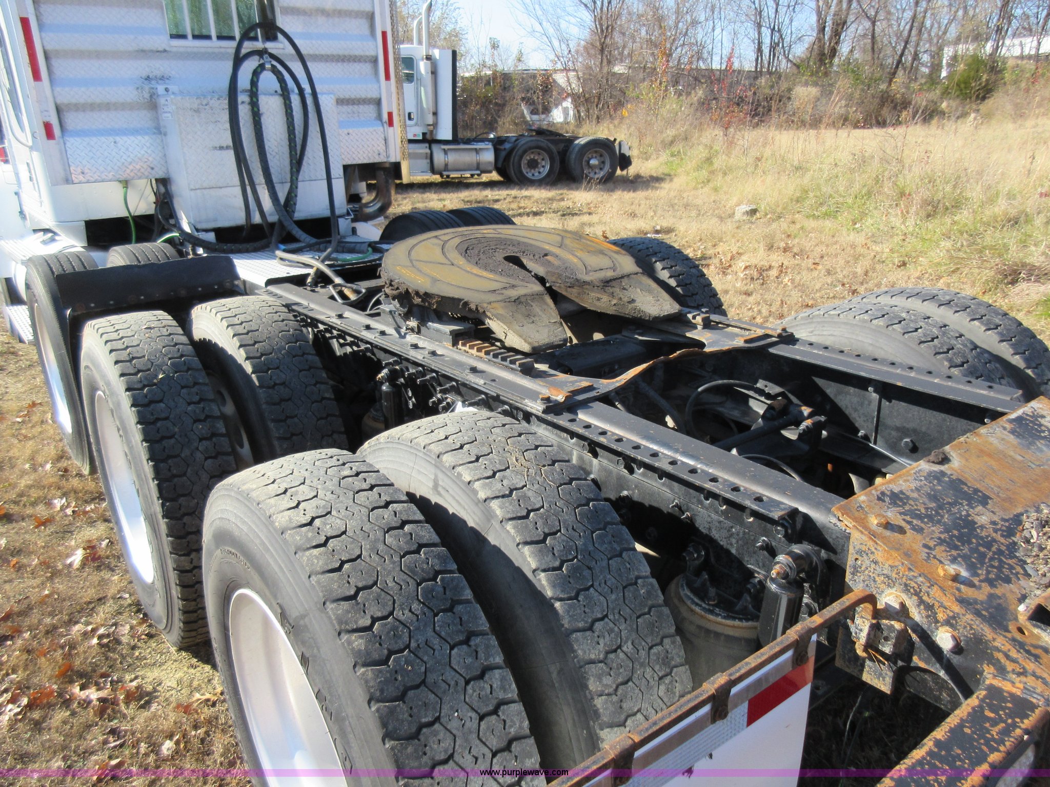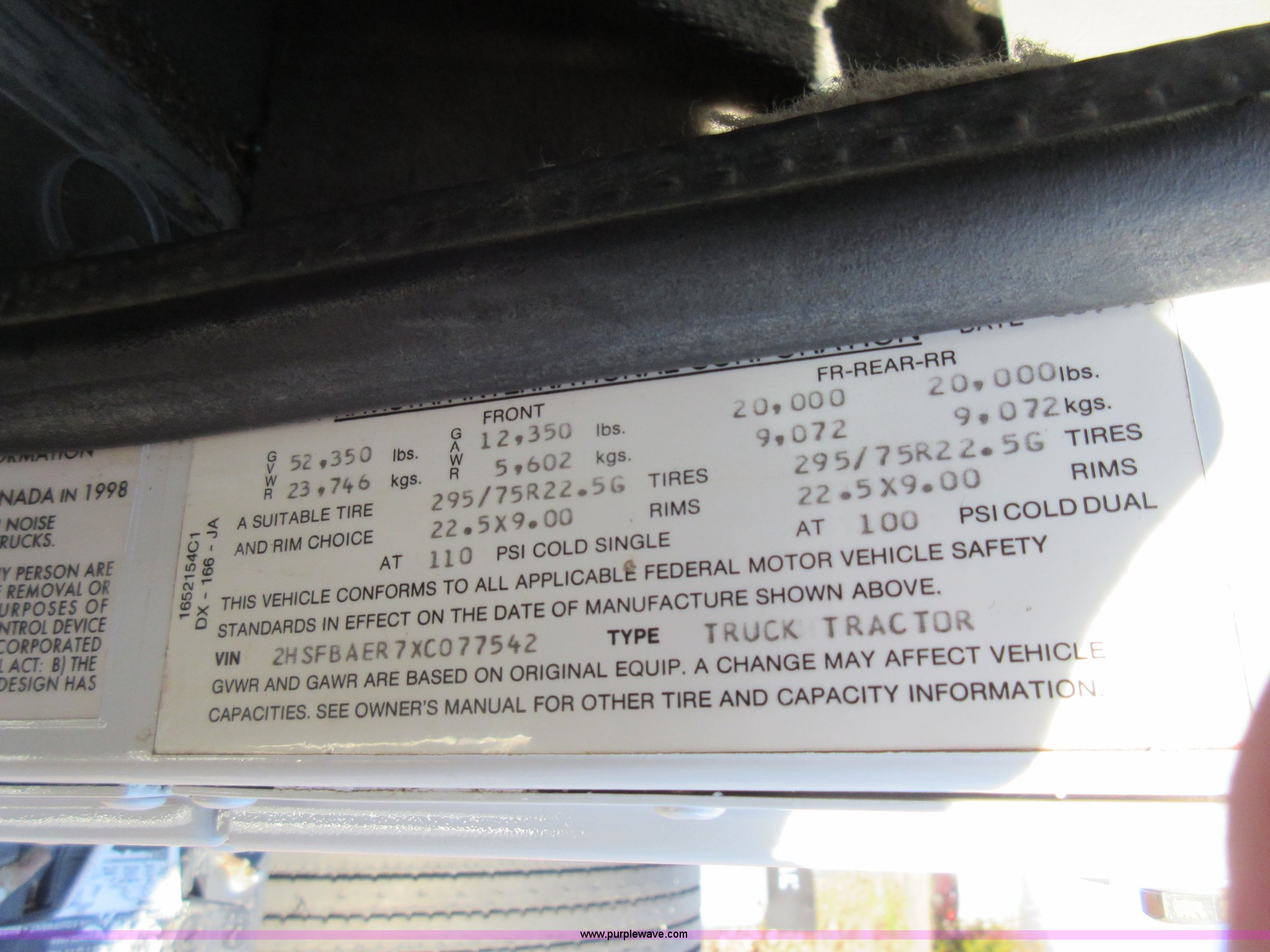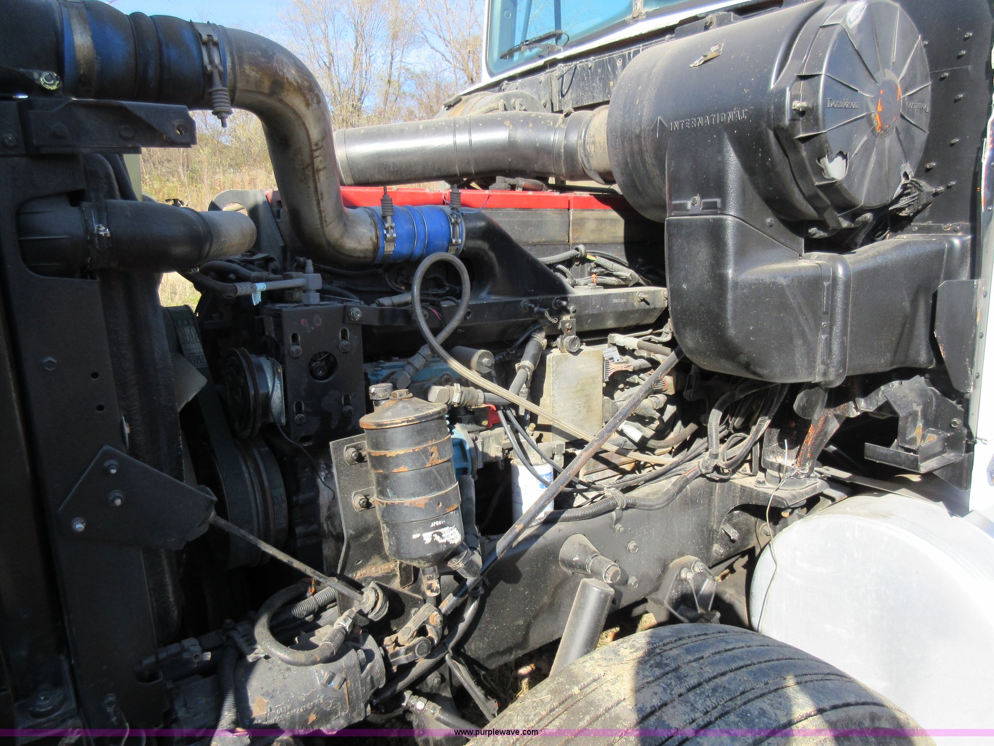Purple Wave is selling a used Truck Tractor in Missouri. This item is a 1999 International F9370 semi truck with the following: 398,637 miles on odometer, Cummins N14 14.0L L6 diesel engine, Eaton Fuller 18 speed manual transmission, AC and heat, Cruise, Heated mirrors, Air suspension seat, Wet kit, Air operated sliding fifth wheel plate, Single rear exhaust stack, Air suspension, Air brakes, Engine brake, 211" wheelbase, Aluminum wheels, 11R24.5 tires, 295/75R22.5 tag axle tires