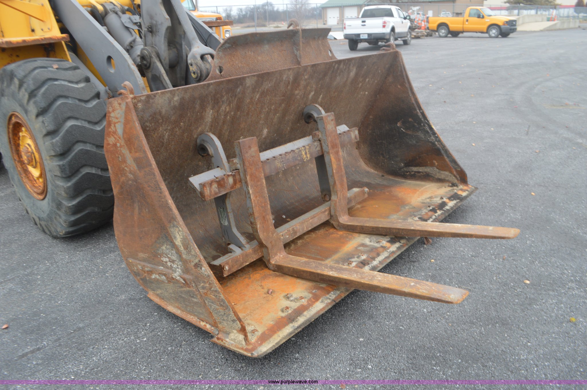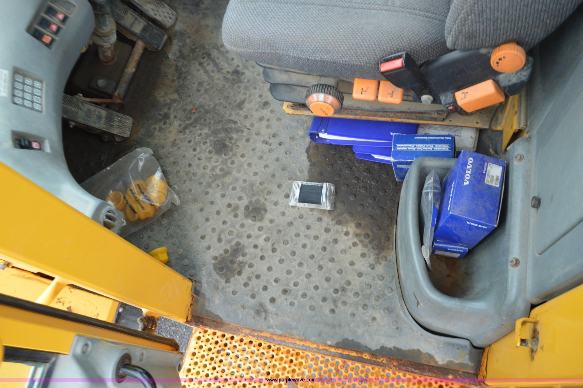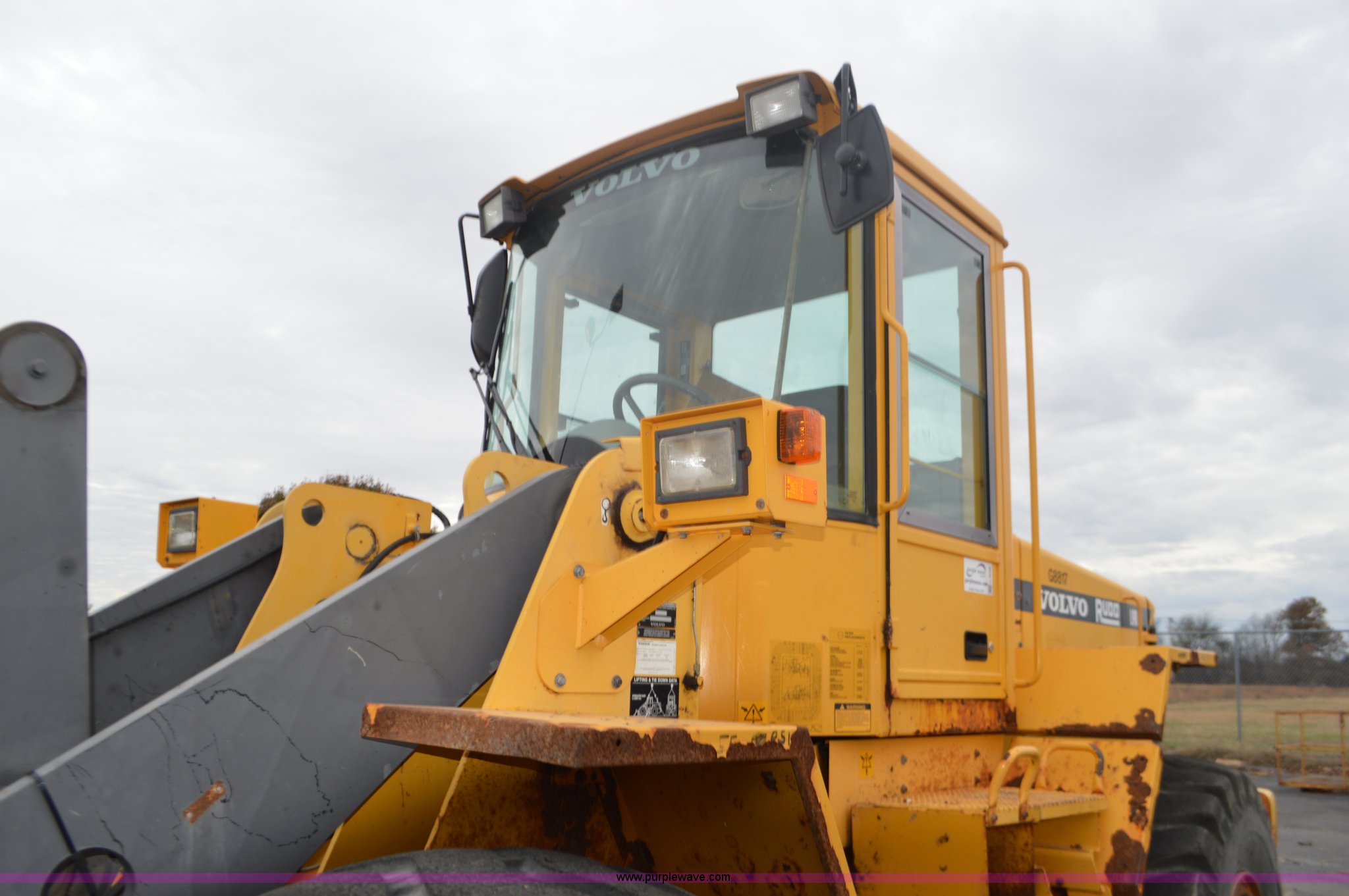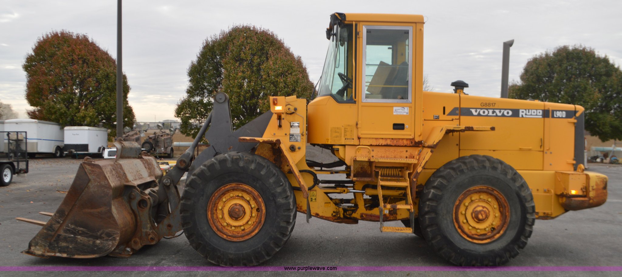 Purple Wave is selling a used Wheel Loader in Missouri. This item is a 2002 Volvo L90D wheel loader with the following: 6,784 hours on meter, Volvo six cylinder diesel engine, 4F-4R gears, Enclosed cab, Heat, Two-lever bucket controls, Front and rear work lights, 102"W general purpose bucket, 47"L x 5"W x 2 1/4" thick pallet forks, Manual quick coupler, Counterweights, Pin hitch, 20.5-25 tires, 33,444 lbs. base operating weight, Serial L90DV64710, Unit# G8817
