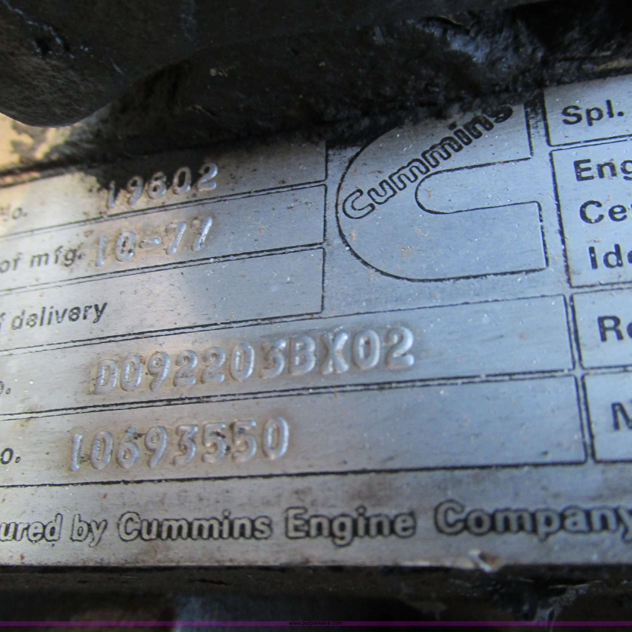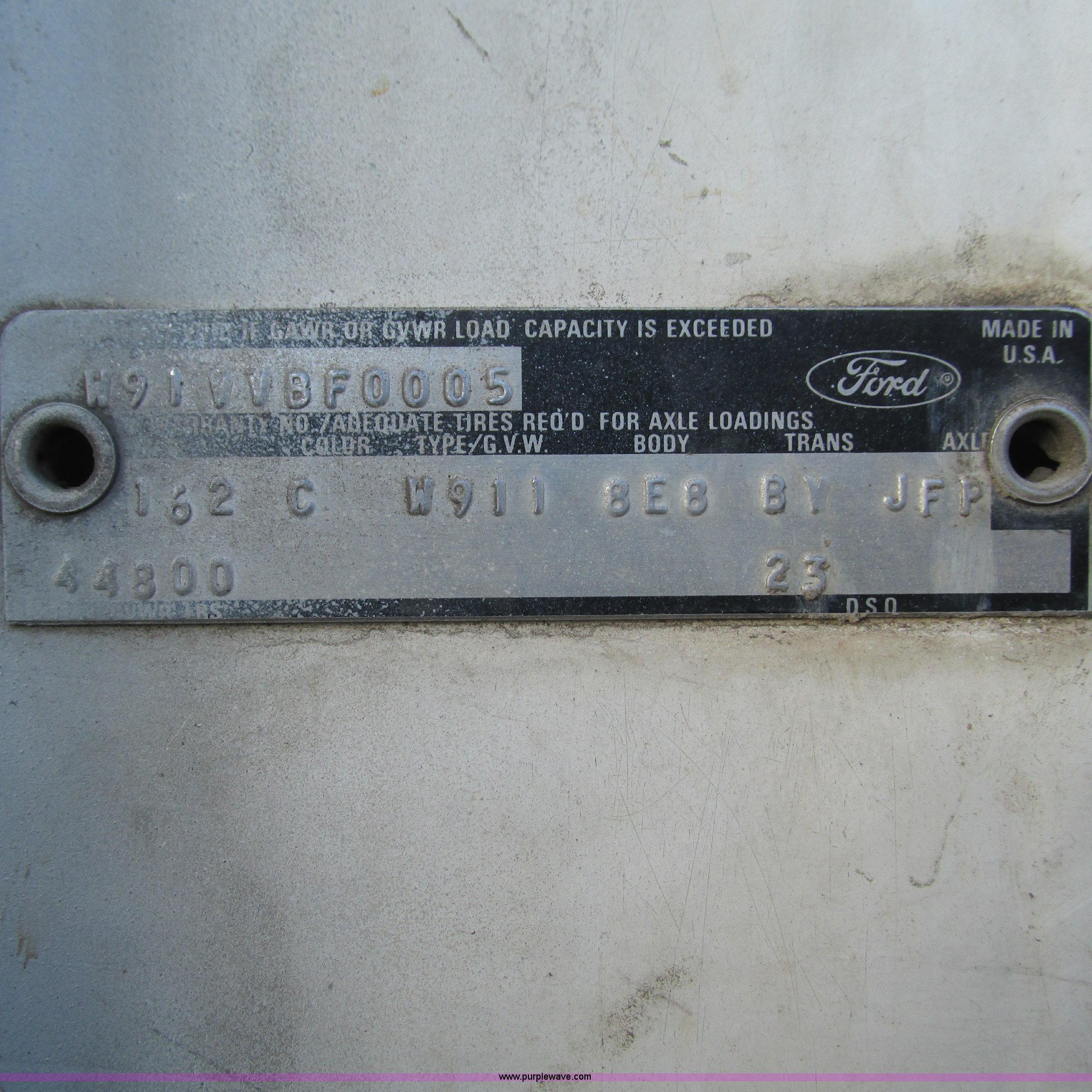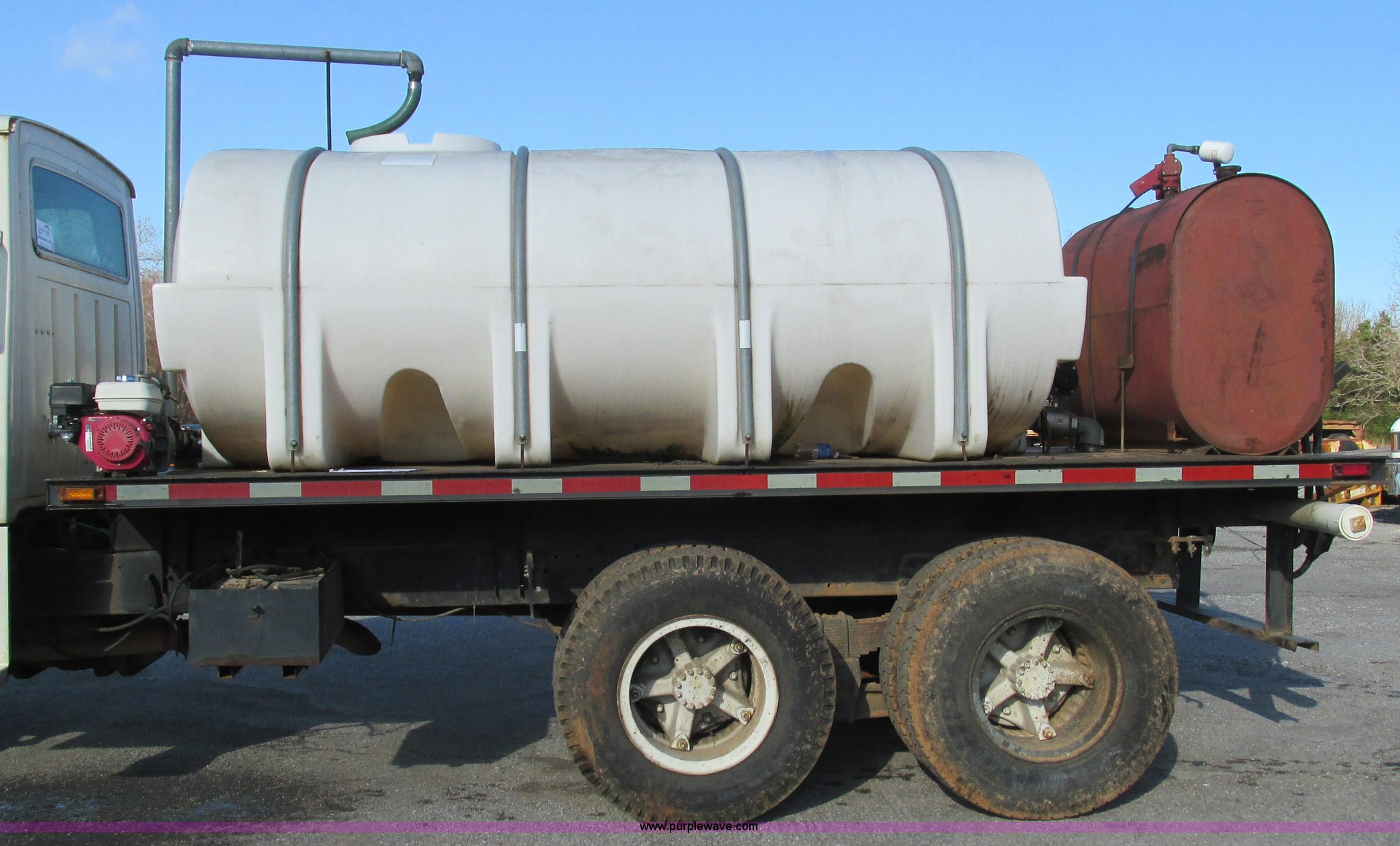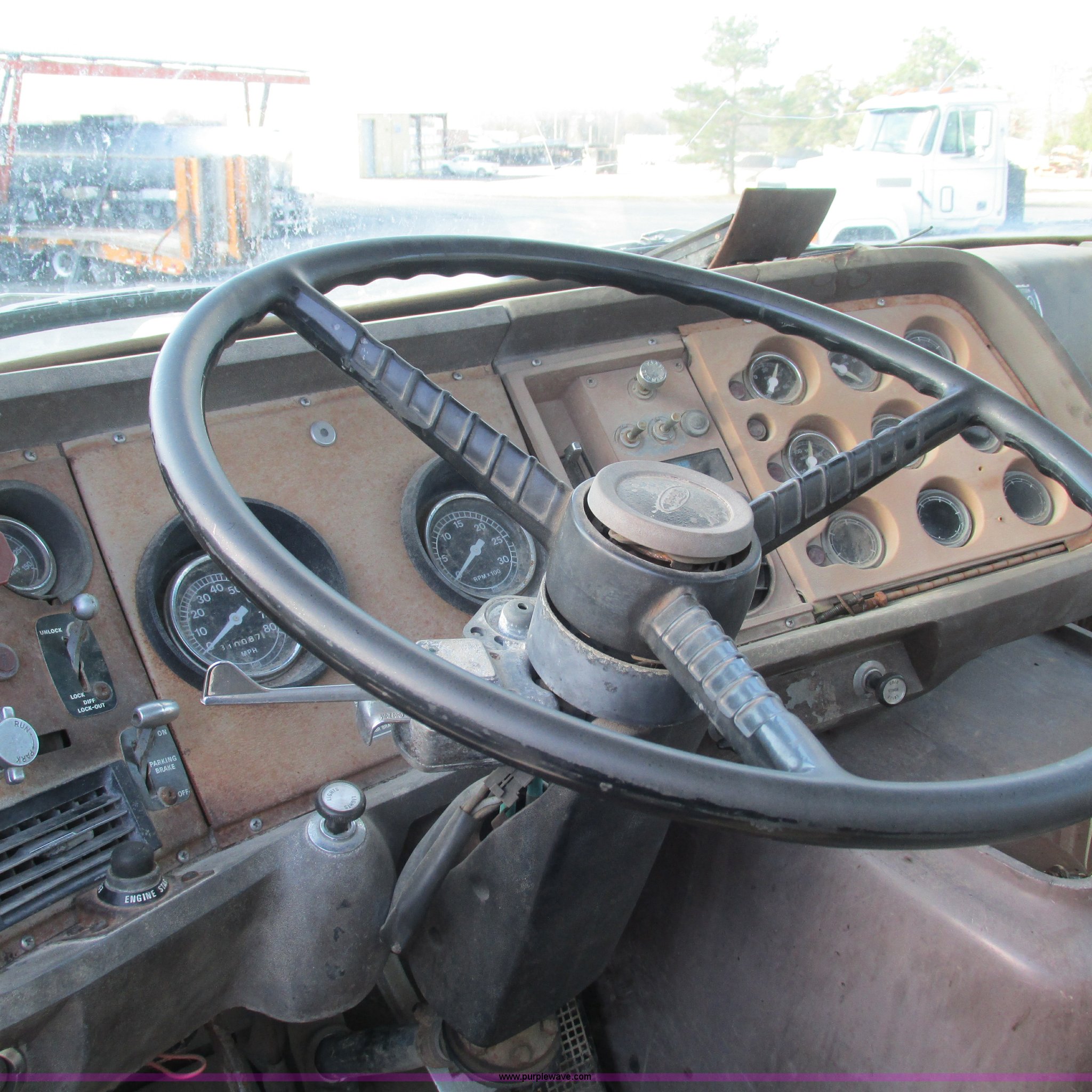 Purple Wave is selling a used Tank Truck or Water Truck in Arkansas. This item is a 1978 Ford 9000 water truck with the following: 310,087 miles on odometer, Cummins NTC-290 six cylinder diesel engine, Eaton Fuller Road Ranger 10 speed manual transmission, Model RT1110, Air suspension seat, 2,000 gallon poly water tank, Top fill, Toolbox, 5'L x 28"W x 44"H fuel tank, Fill Rite 12V pump, Hose, Nozzle, 107" spreader bar, (2) 24" extensions, Spring suspension, Air brakes, 11R22.5 front tires, 10R20 rear tires, Windshield cracked, Seat damaged, Interior/exterior cosmetic damage