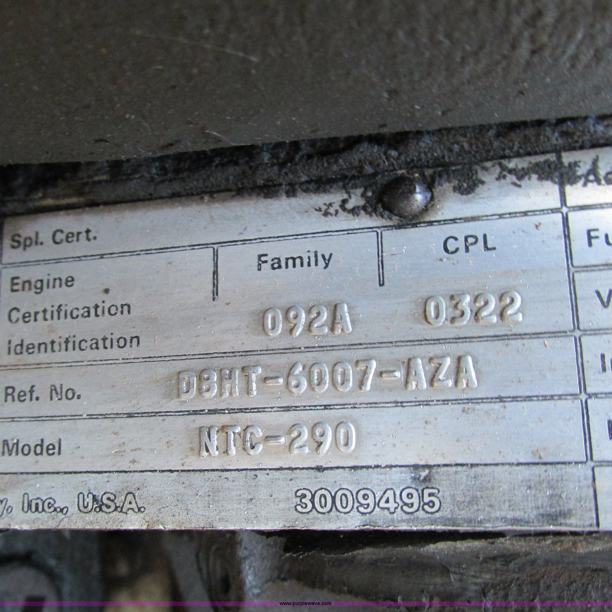 - Cummins NTC-290 six cylinder diesel engine
